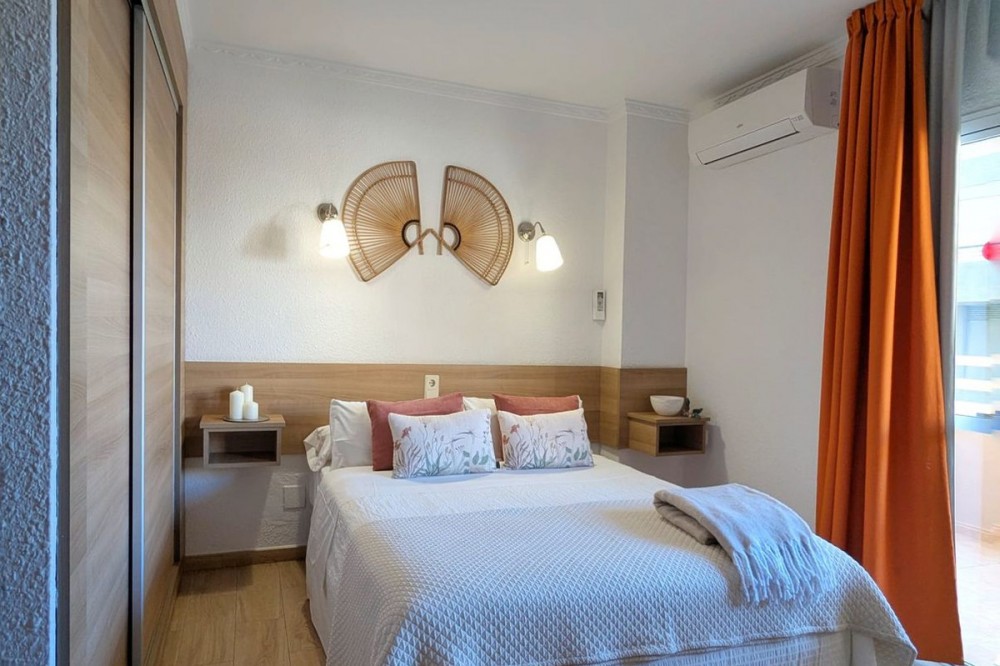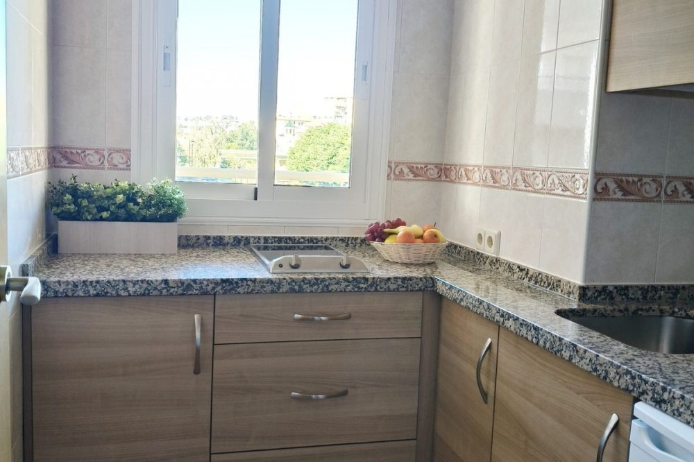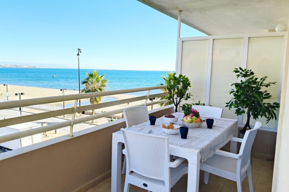 - Middle Floor Apartment, Fuengirola, Costa del Sol. 2 Bedrooms, 1 Bathroom, Built 86 m², Terrace 20 m². Setting : Beachfront, Town, Commercial Area, Beachside, Close To Port, Close To Shops, Close To Sea, Close To Schools, Urbanisation, Front Line Beach Complex. Orientation : North East. Condition : Excellent. Pool : Communal. Climate Control : Air Conditioning, Hot A/C. Views : Sea, Beach, Urban, Street. Features : Covered Terrace, Lift, Fitted Wardrobes, Near Transport, Private Terrace, Satellite TV, WiFi, Access for people with reduced mobility, Bar, Restaurant On Site, Courtesy Bus, Near Church. Furniture : Part Furnished. Kitchen : Fully Fitted. Security : Gated Complex, 24 Hour Security, Safe. Category : Beachfront, Holiday Homes, Investment, Resale.