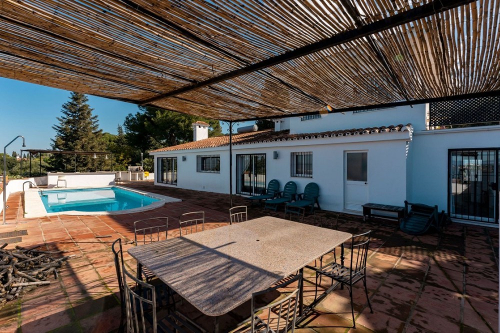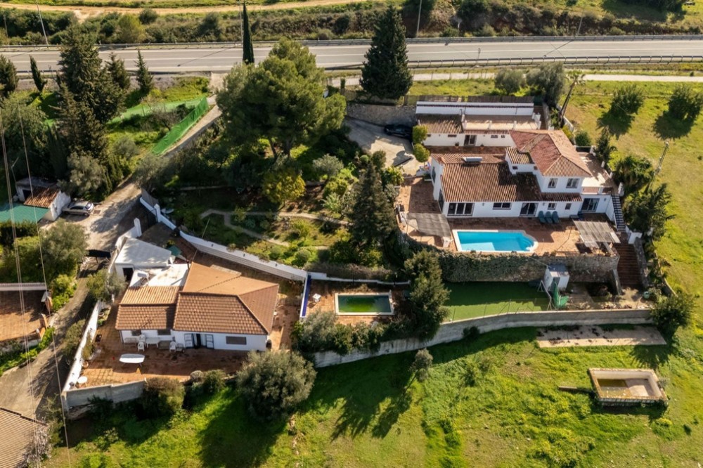 • 5 bedroom main house, plus a 3 bedroom guest house, a studio/apartment, garage and 2 swimming pools! Stunning Country Estate with Breathtaking Views in Alhaurín el Grande Nestled on the sought-after south side of Alhaurín el Grande, this exceptional country estate offers stunning panoramic views, excellent road access, and convenient connections to Fuengirola and Mijas. Set on a generous 4,000m² plot, the property is fully fenced and boasts mature, low-maintenance vegetation. With a total built area over 500m², this versatile estate comprises three independent dwellings, making it ideal for a large family, a rental investment, or a potential B&B opportunity. Main House This impressive two-story home is designed for both comfort and style. The ground floor features: - 4 spacious bedrooms, two of which are en-suite, plus an additional family bathroom. One of the bedrooms currently has an independent storage room that could easily be converted into a walk-in closet. - A grand living and dining area with a feature fireplace, offering direct access through large French patio doors to the private pool and sun-drenched terrace. - A fully equipped, large kitchen, including a breakfast bar plus spacious dining area and a welcoming reception area. The first floor is dedicated solely to the luxurious master suite, complete with: - A private terrace offering breathtaking mountain views. - A spacious en-suite bathroom with bath and shower. Adjacent to the main house, you'll find a private garage and a charming studio apartment consisting of: - A bedroom, bathroom, living area, and kitchen, perfect for guests or additional rental income. Guest House This single-level home offers: - Three comfortable bedrooms, including a master en-suite. - A family bathroom. - A spacious living room with a fireplace and a fully equipped kitchen. - Its own private swimming pool, ensuring complete independence from the main house. Additional Features & Location - Each house benefits from ample parking space for multiple vehicles, including designated shaded areas to keep vehicles cool and protected. - The property also features a dedicated children's outdoor play area, designed for both fun and safety. Set on soft, artificial grass, this space provides a practical and secure environment where children can play freely and enjoy the outdoors. - Near the guest house, you'll find an additional olive grove, adding to the property's charm and natural beauty. There is also ample space to plant more fruit trees and grow a vegetable garden, offering wonderful opportunities for self-sustainability and enjoying fresh, homegrown produce. - Registered property with both town water supply and a private well. The well is located in a small building and also provides additional storage. - Idyllic surroundings with hiking and cycling trails nearby. - Walking distance to top-rated restaurants and approximately a 25-30 minute walk to the village of Alhaurín el Grande. While the property would benefit from some modern updates, it remains a solid and well-built estate in an outstanding location, offering immense potential for future buyers. Whether you're looking for a spacious family retreat, an investment opportunity, or a boutique hospitality venture, this unique property is one not to be missed. Contact us today to arrange a viewing and discover the endless possibilities this beautiful estate has to offer!