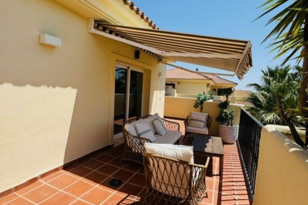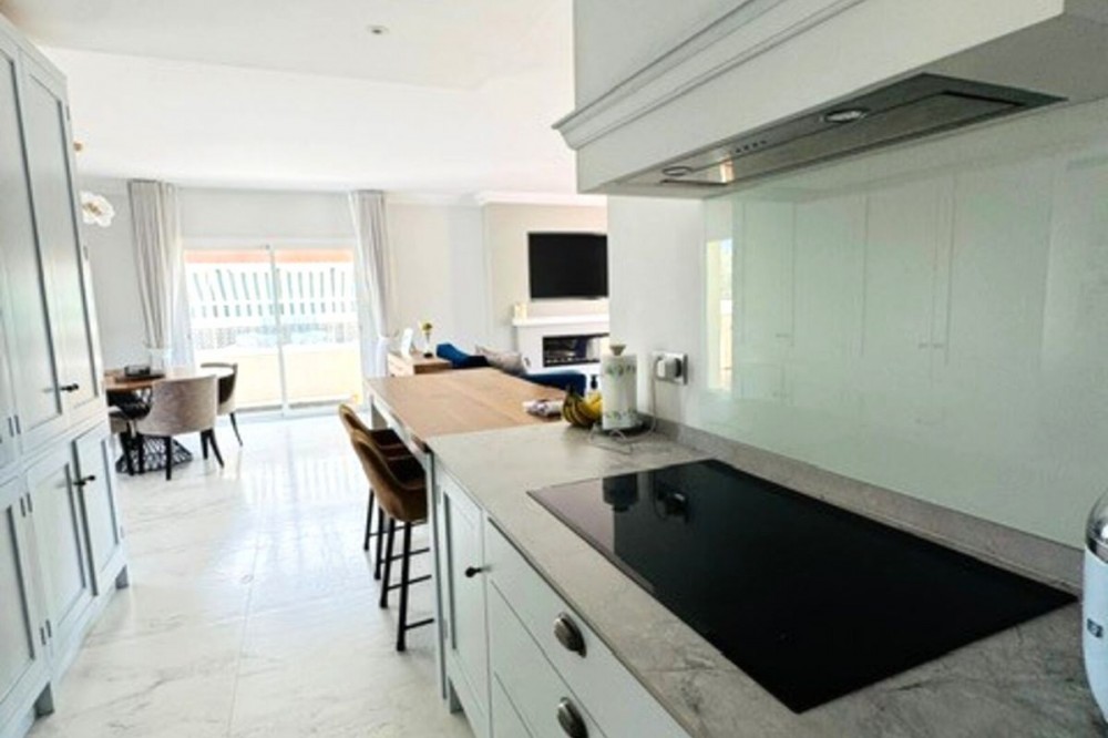 - This property is the finest, completely renovated penthouse in La Cala Hills and the surrounding areas. Everything in this property has been upgraded and modernised, from the new tiled flooring to the bathrooms, kitchen, internal doors and wardrobes in all three bedrooms. This is the most quintessential "turn key" penthouse you will ever find. This spacious three bedroom, two bathroom penthouse is located in La Cala Hills, Mijas Costa. With 118m² of interior living space and a 104m² wraparound terrace (on three sides), there is always a sunny or shaded spot to enjoy throughout the day. Situated in Phase IV, the terrace offers panoramic views of the surrounding landscape, and the communal garden with swimming pool. The generous outdoor space is one of the main highlights of this property, as is the glass curtained conservatory, which you can enjoy all year round. Inside the apartment the newly renovated kitchen is now open plan into the lounge where you will find a comfortable seating area with built in fire place and TV and an adjacent dining area. Both areas have direct access to the open terrace so they are flooded with natural light and fresh air and the dining area also has direct access to the conservatory. The master bedroom has a modern and elegant en-suite shower room and there is another shower room for the occupants of bedrooms two and three. The kitchen is fully equipped and leads to a separate utility/laundry room with the washer and dryer conveniently hidden in a sleek cupboard. The property also includes a private storage room and a parking space in the underground garage and there is additional guest parking inside the community gates. A comfortable and well-located home for those looking for space, views, and outdoor living in a peaceful yet accessible area. Exclusive Community Amenities: Large swimming pool and separate children's pool Padel tennis court Beautiful landscaped communal garden Modern service building with showers and toilets Only four low-rise blocks which were repainted in 2023 Prime Location Highlights: Walking distance to cafés, restaurants, paddle club, and gym 380m from St. Anthony’s College offering education from Preschool up to Sixth form/Bachillerato 150m to regular bus service to and from Fuengirola via Mijas Golf 7 minutes drive to three 18 hole golf courses and many more within 15 minutes drive, including La Cala Golf Resort 15 minutes to La Cala de Mijas 30 minutes west to Marbella and also 30 minutes east to Málaga Airport