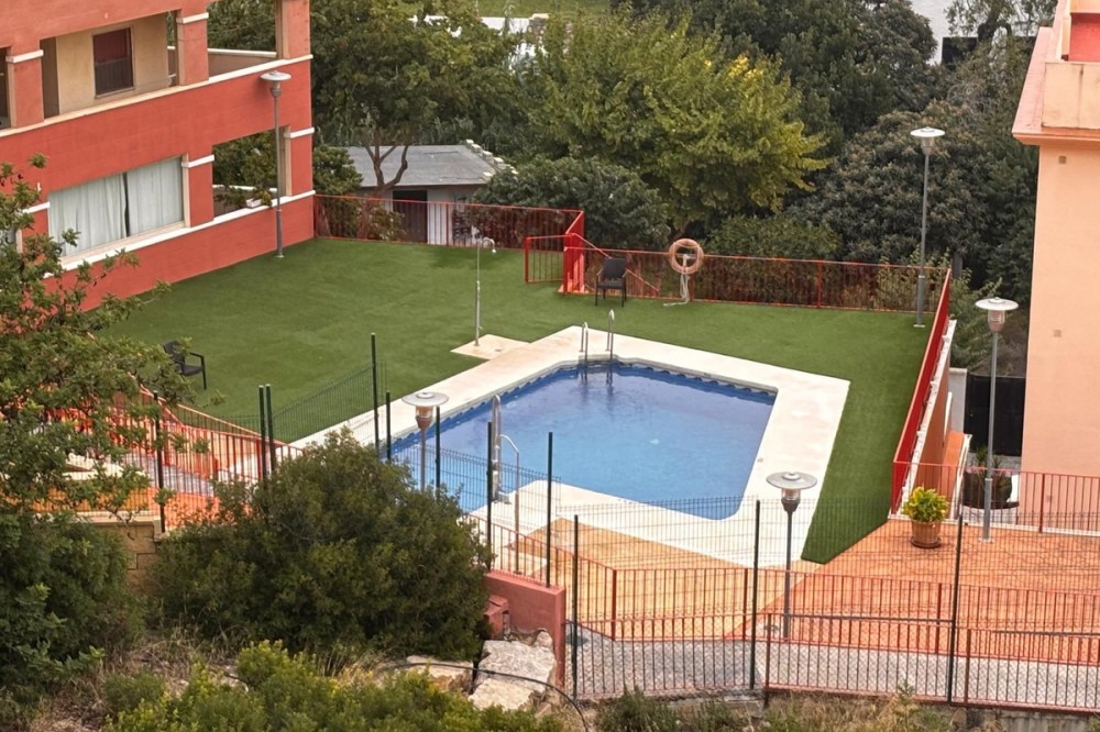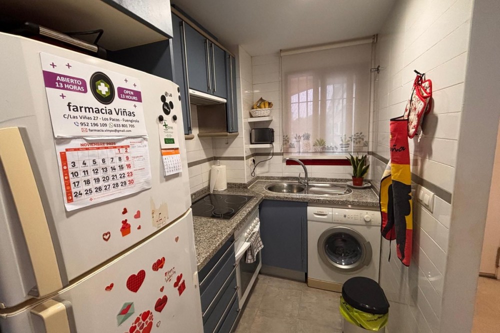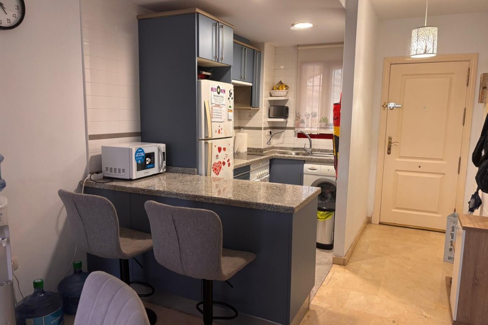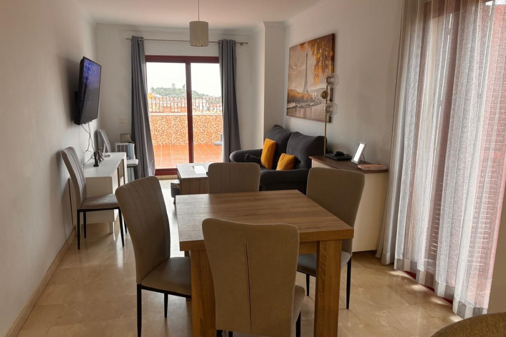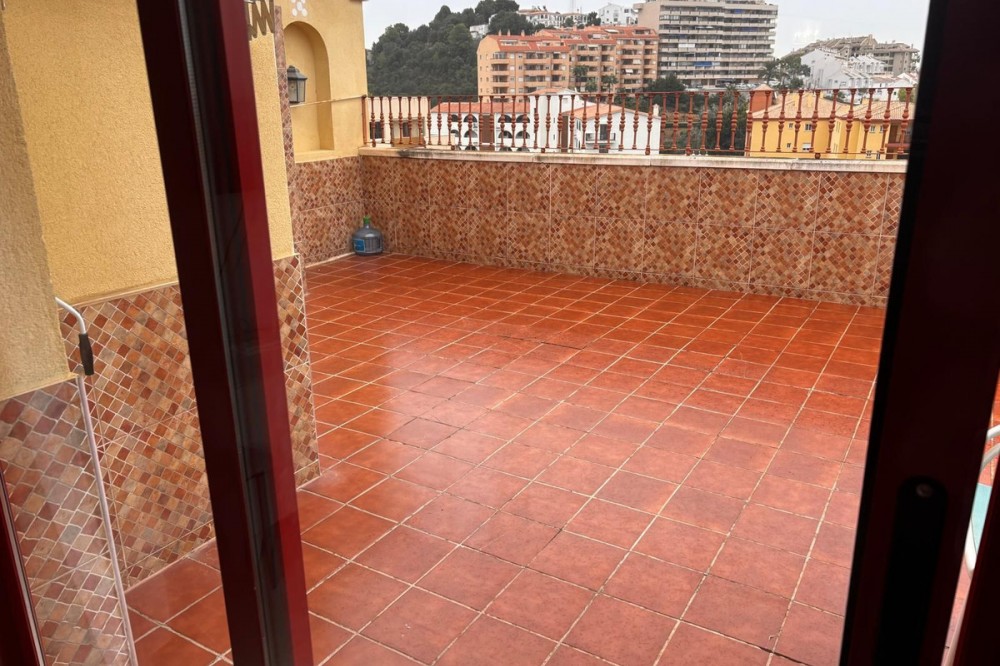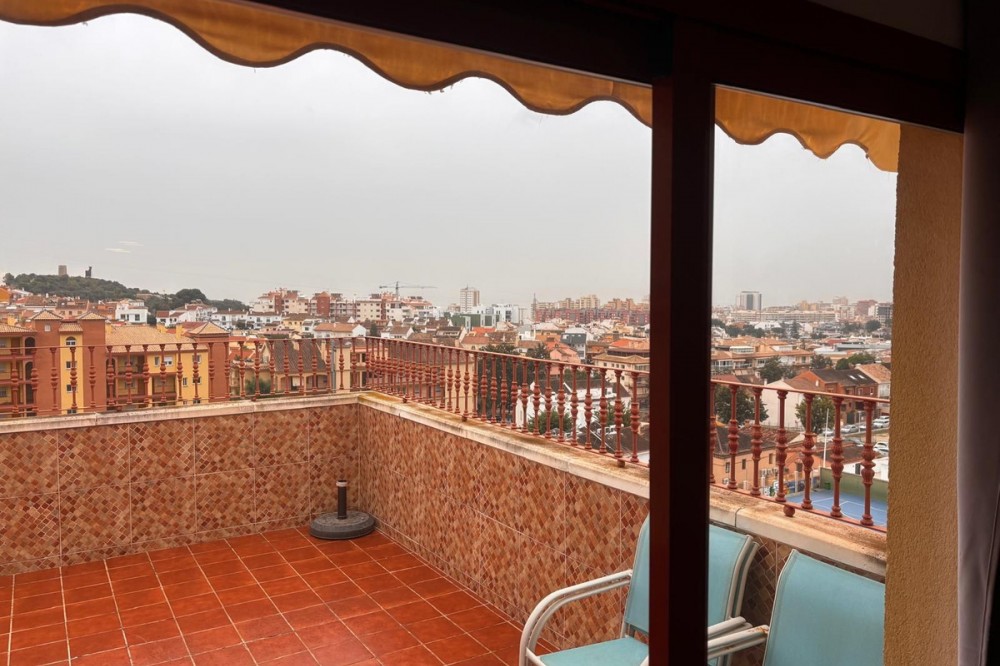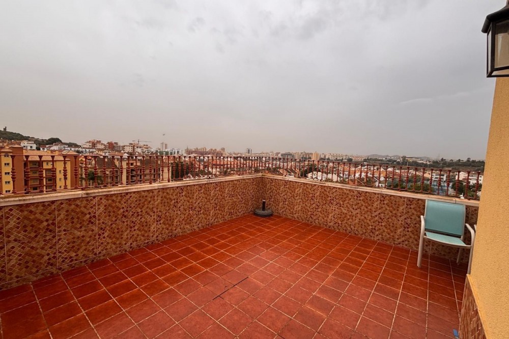 - Opportunity! Penthouse with large terrace and panoramic views from east to west in Fuengirola! Tourist license in place! 7st and last floor apartment with a built area of 107 sqm and a terrace of 30 sqm. Including 1 underground parking space and fully equipped and furnished. Distributed in entrance hallway leading to an open plan kitchen leading to the living room and outgoing to the south facing terrace. 2 bedrooms and 2 bathrooms, one en-suite to the master bedroom. This gated urbanisation is located in one of Fuengirola's most wanted residential areas - Los Pacos. In town but in quiet surrounding. The terrace is offering amazing views torwards to town up to the sea. Community gardens with swimming pool. Features: creme marble flooring, double glazing, security entrance door, A/C, elevator, garage, furnished. Entrance without steps. In walking distance to schools, supermarket and shops, restaurants. Busstop closeby. 12 minutes to Los Boliches and the beaches and center of Fuengirola. 20 minutes drive to the airport of Malaga. The local banks are offering up to 70% mortgage of purchase price. A perfect home or for a great rental business.