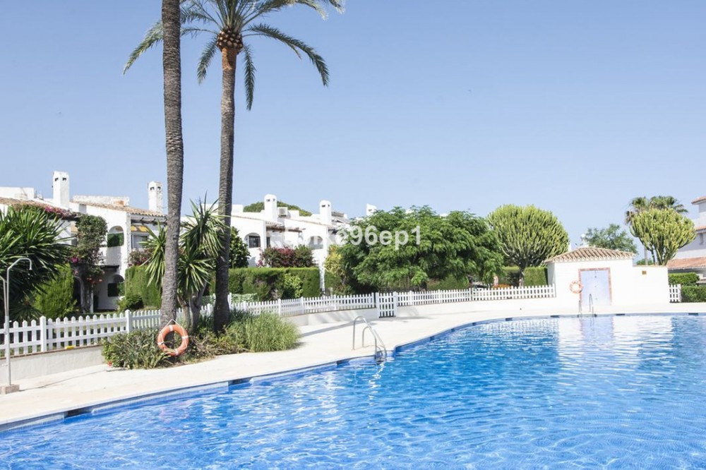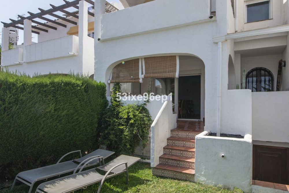 - Charming beachside house for sale just 50 meters from the sea, located in the peaceful and well-connected area of Arroyo Vaquero, Estepona. This Mediterranean-style property offers an excellent opportunity for those looking for a coastal home with a private garden, generous indoor and outdoor spaces, and a flexible layout, all within a secure and characterful Andalusian community. The house features a private garden of approximately 40 m², perfect for enjoying the sun, outdoor dining, or relaxing with family and friends. The total built area is around 160 m², including the basement, and is distributed over two main floors plus a lower level with independent access. On the ground floor, there is a bright and cozy living-dining room with a fireplace, a fully equipped kitchen, a laundry room, and a guest toilet. From the living area, you can access a covered terrace that opens onto the garden. The first floor offers two en-suite bedrooms, including a master suite with access to a private terrace that enjoys partial sea views. There is a second terrace on the ground floor, making the outdoor space very versatile and accessible from various areas of the house. The basement level measures approximately 60 m² and features direct access to the garden as well as a separate entrance from the exterior, making it ideal for use as a guest apartment, second living room, home office, or entertainment area. The property also includes convenient off-street parking directly in front of the house. It is part of a charming Andalusian-style gated urbanization with beautifully maintained communal gardens, a large swimming pool, and sports facilities such as a tennis court and a football pitch—ideal for families and active residents. The location is truly privileged, just a short walk from the beach and the Senda Litoral, a coastal promenade that stretches over 20 uninterrupted kilometers toward Estepona. The surrounding area offers a full range of services, including supermarkets, private schools, golf courses, pharmacies, gas stations, and the newly opened high-resolution public hospital of Estepona. This property is ideal for families, investors, or anyone looking for a primary or secondary residence with charm and potential in a well-established coastal area. With its proximity to the beach, spacious layout, and potential for independent living space, it offers excellent value and strong rental potential. Contact us today for more information or to arrange a private viewing.