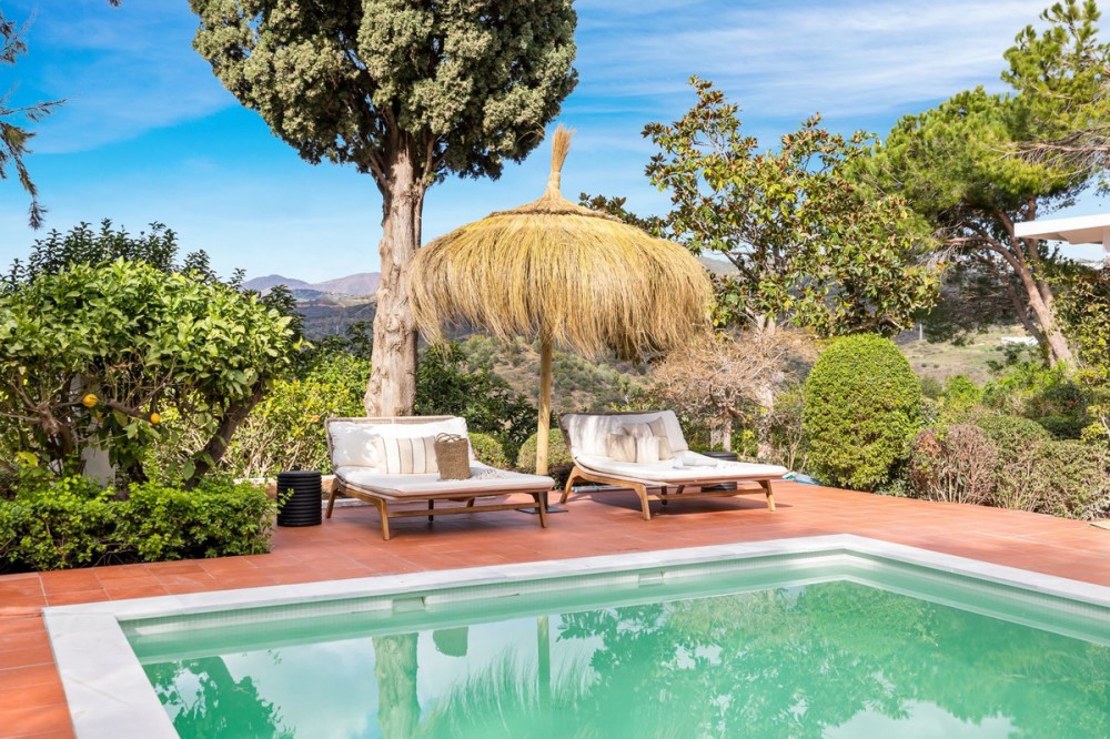 - This beautiful villa has undergone an extensive refurbishment, offering a very comfortable and luxurious home. Thanks to its west facing orientation this property offers the most beautiful panoramic views of the coastline and surrounding hills. The current owners took the property back to the bare bones and recreated a stunning one level Andalucían villa, complementing the beautiful traditional architecture with a highly modern interior and a no expense spared interior design. For clients looking for an investment opportunity or some supplementary income, this property is sold with a tourist licence and proven rental income. Being sold fully furnished, this home is key ready. However, should more bedrooms be required by the new owners the house is prepared for a second floor which would take the house from 3 bedrooms to a 6 bedroom property. Currently this home has 3 large double bedrooms, all offering full ensuite bathrooms while the master bathroom also has a bath tub. The beauty of this house is that all bedrooms are on the same level, perfect for families or those that do not want stairs. Two of the bedrooms have direct access to the pool area whilst the third does not, which is ideal for those with small children. There are indoor and outdoor dining areas, a fabulous kitchen with breakfast island and direct access to the gardens, hot and cold A/C throughout the property, as well as under floor heating and a fireplace for the winter. The pool area is absolutely stunning with beautiful wicker sunshades, large sunbeds and Balinese inspired daybeds for those wanting lazy summer siestas by the pool. The salt water pool itself has been cleverly designed with an extended shallow ledge and is heated for year round use, and has a handy solar panel cover ensuring economic usage. Next to the pool is the outdoor summer kitchen offering a true Andalucian way of al fresco cooking with BBQ and even a pizza oven. This shaded outdoor dining area seats up to 10 comfortably. The gardens that surround the house are absolutely beautiful boasting a flat grass lawn, petanque area and plenty of fruit trees, tropical plants and avocado trees. Parking: secure parking for 2 cars within the boundaries of the home. The villa is located in the exclusive urbanisation of Hacienda las Chapas, Marbella. This residential enclave is the best of both worlds: it is quiet and offers complete privacy, seclusion and 24-hr security while being close to schools, amenities and beaches. The urbanisation also has tennis courts for the exclusive use of the residents. In terms of beaches the nearby areas of Elviria, Cabo Pino and Las Chapas are known for their lovely sandy beaches and family friendly beach restaurants and bars plus the world-famous Nikki Beach is a few minutes drive away for those that want to party the days away. Furthermore, Cabo Pino port offers a variety of water sports so there is plenty of amusement for everyone and Marbella town is no more than 10 minutes away. Within a 5 minute drive are 3 golf courses, 3 supermarkets and a varied choice of restaurants and bars. Malaga airport is only 20 mins away.