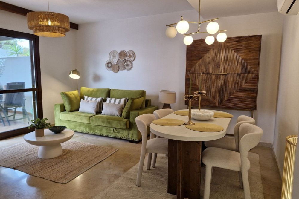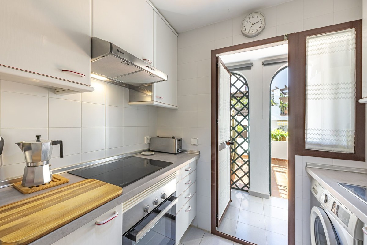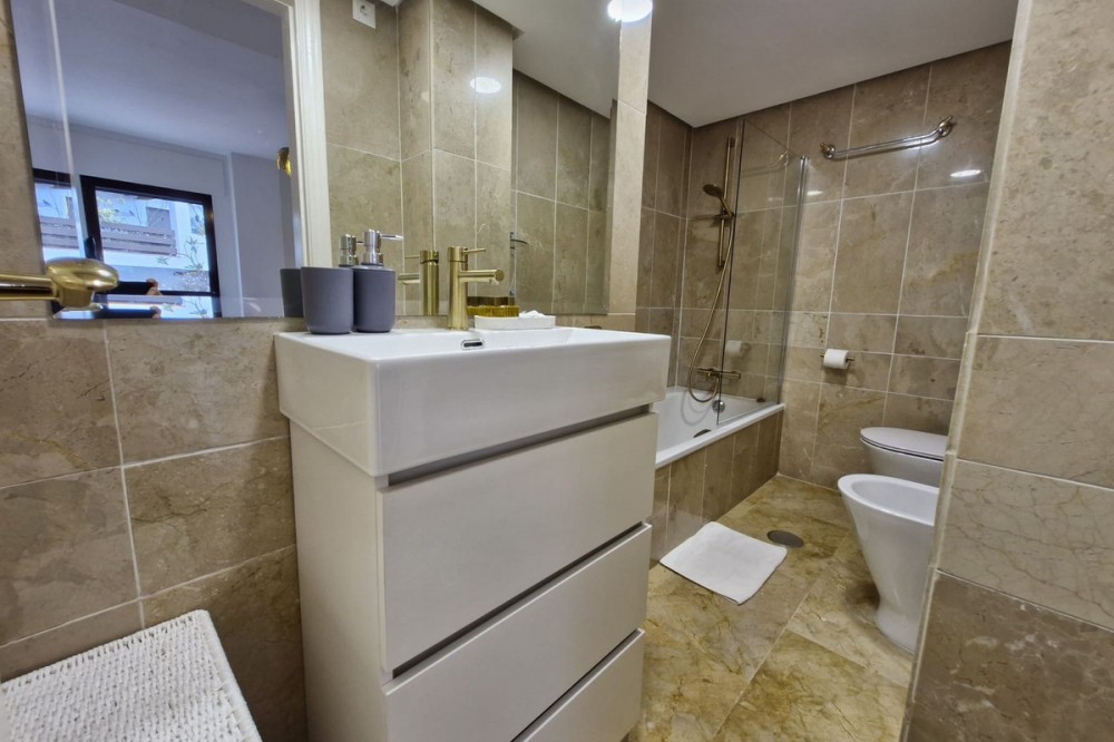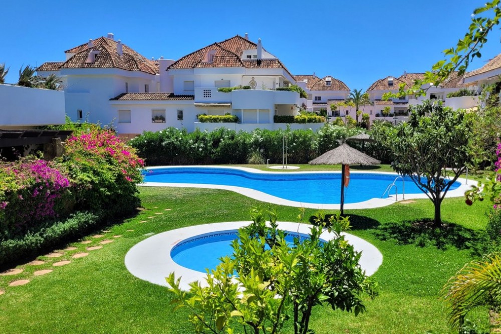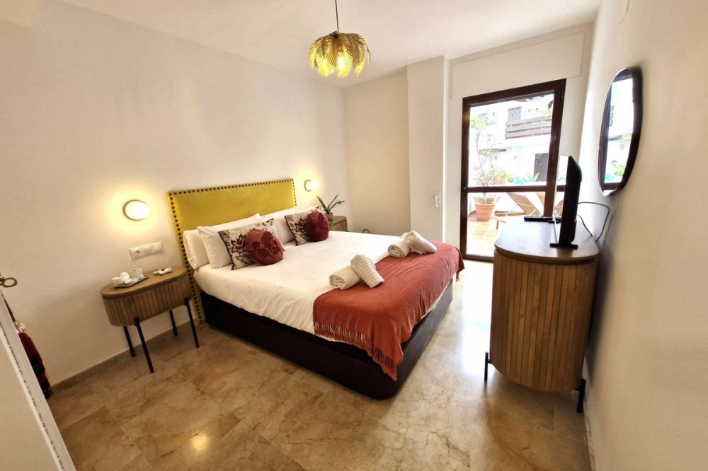 - This great second floor apartment is located in a prestigious urbanization in Las Lomas del Marbella Club, with communal garden and swimming pool, just 5 minutes from the center of Marbella, Puerto Banus and the beaches. It consists of a nice living room, a west facing terrace, fully fitted kitchen and bedroom with bathroom en suite, all rooms have access to the terrace overlooking the communal areas and swimming pool of the urbanization The price includes two large subway parking spaces with elevator access and a storage room.