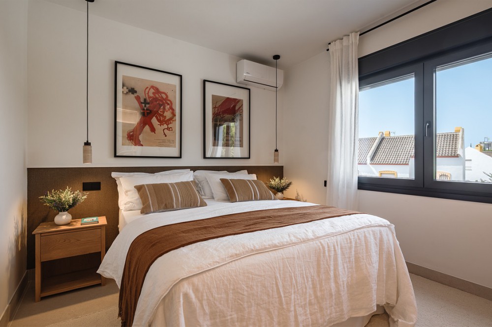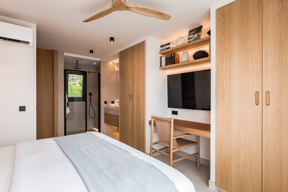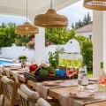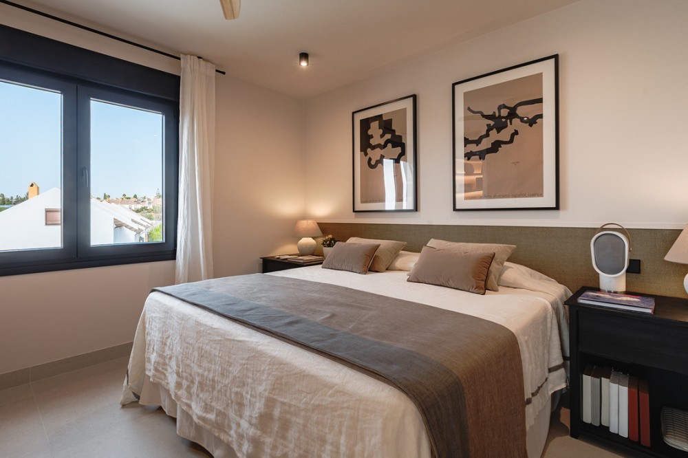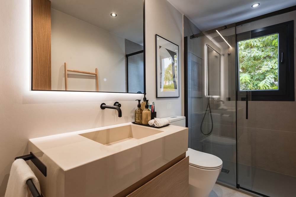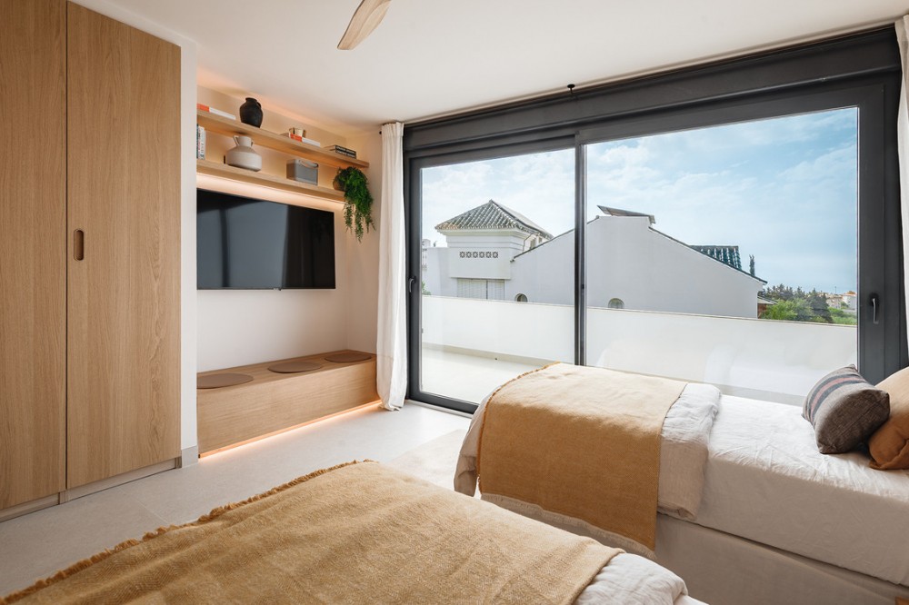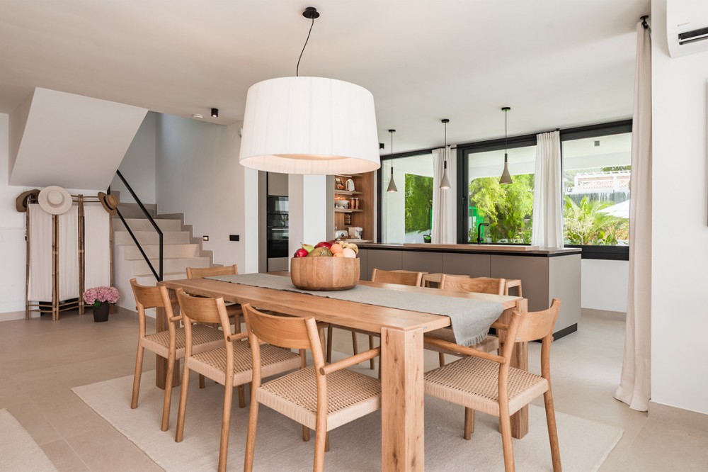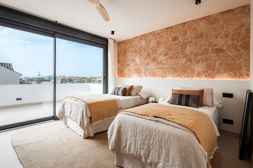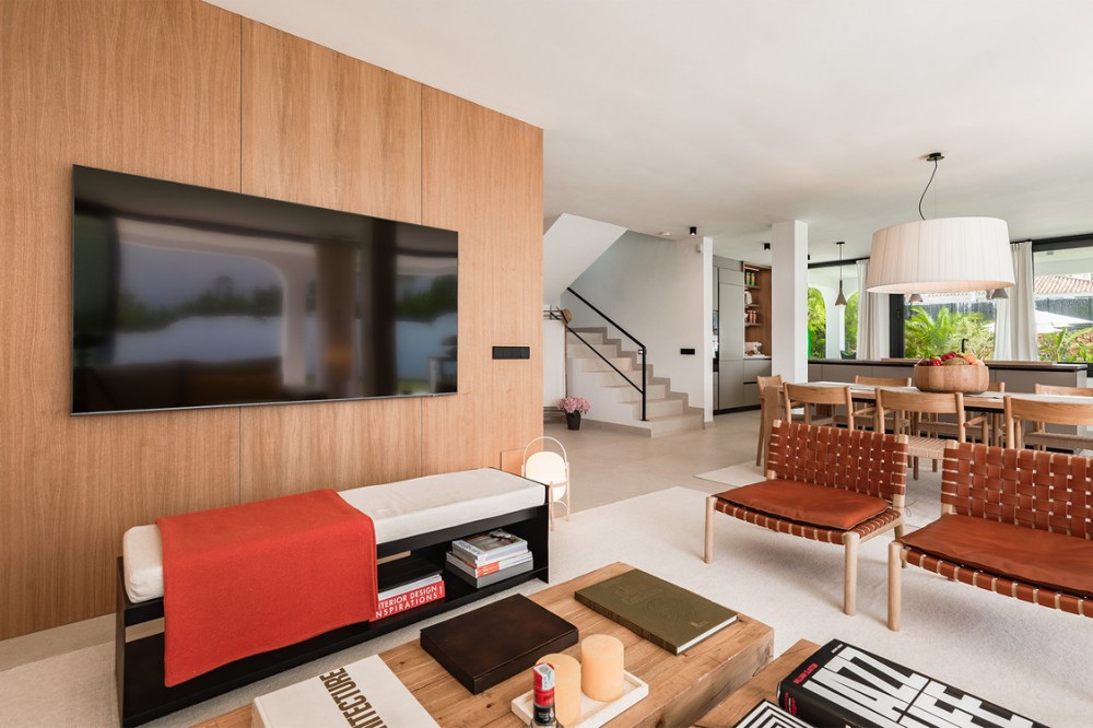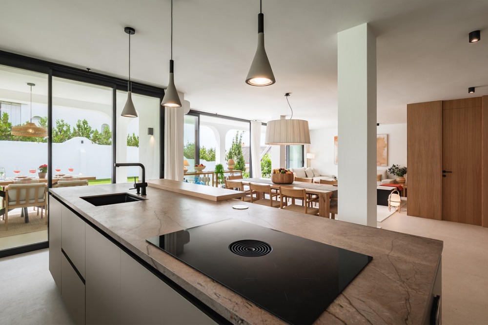 - Exclusive villa with modern design and subtle Andalusian touches, set on a spacious and private flat plot in Huerta del Prado, just 5 minutes by car from the beach, La Cañada shopping centre, and Marbella’s Golden Mile. Distributed over two floors, the property features an elegant entrance hall leading to a bright open-plan living room with a state-of-the-art fully equipped kitchen, and a covered porch with dining area for 10-12 people. Outside, a well-maintained garden boasts a large swimming pool with sun loungers and a fully equipped mini-golf putting green with radar-based practice area, ideal for leisure and relaxation. The villa offers six double bedrooms, five bathrooms, four of them en-suite, and 2 guest toilets; three of the bedrooms enjoy direct access to a terrace with mountain and natural surroundings views. There is parking space for 2 cars and EV charging station. A unique property in a prime location. Please contact us for availability and seasonal rates.