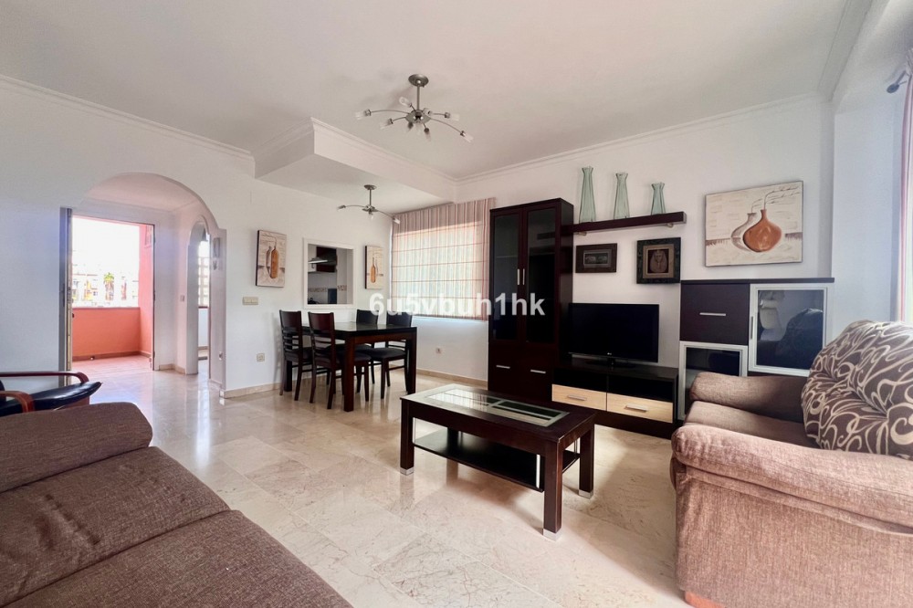 - Bright apartment of 83 m² located in the exclusive Montemarina Residential Complex, within a private and peaceful gated community. The property stands out for its excellent orientation, ensuring sunlight throughout the day, and its open sea views from the terrace. It features a spacious and very bright living-dining area, a fully equipped kitchen with a separate utility room, 2 bedrooms with fitted wardrobes and 2 bathrooms, one of them en suite. The apartment is equipped with hot and cold air conditioning. The complex offers well-maintained gardens, adult and children’s swimming pools, and the property includes a large underground parking space. Ideally located in Riviera del Sol (Mijas Costa), close to all amenities and with quick access to the A-7 and AP-7, just 25 minutes from Marbella and 20 minutes from Málaga Airport.