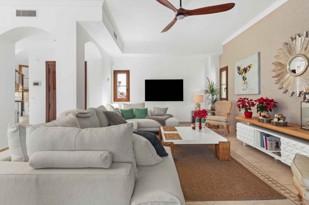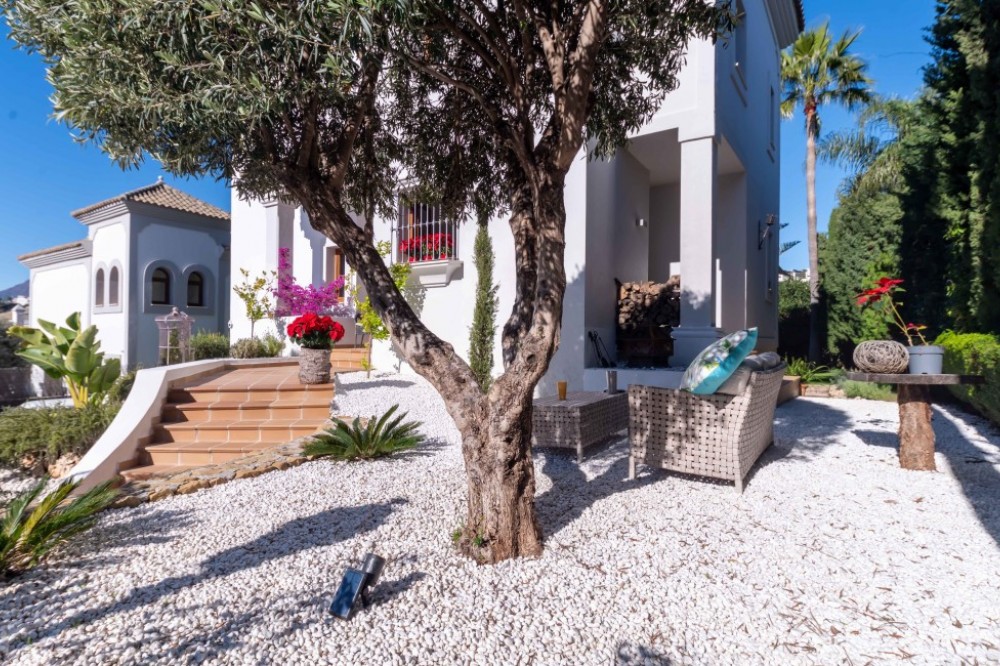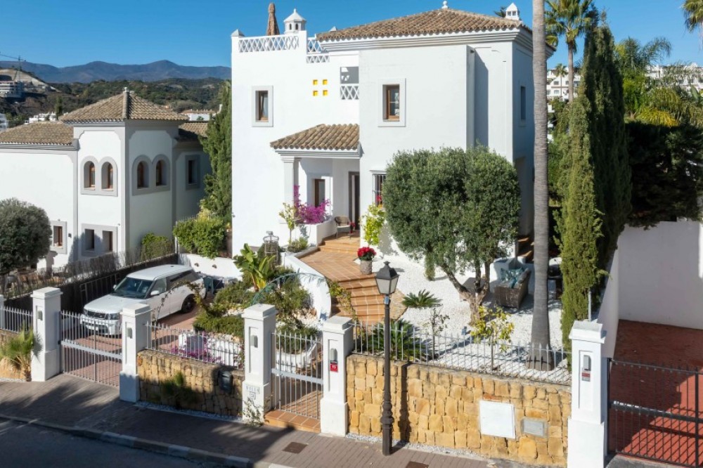 - Superb opportunity to acquire this stunning Andalusian-style 4-bedroom detached villa, with private pool on the ever-sought-after New Golden Mile in Estepona. This property offers luxury living and convenience in a serene residential area, right on the doorstep of central Estepona. The property is distributed across 3 floors, with over 300 square meters of built space and a plot of 627 square meters. The entrance floor of the villa is comprised of a fully equipped kitchen and a bright and spacious living area, that leads seamlessly to the outdoor dining terrace, private garden and pool area. The outdoor area offers ample space for dining, relaxation and entertainment in a tranquil and private setting. The upper floor features an impressive master suite, as well as two spacious guest bedrooms and an additional bathroom. Each bedroom has its own private terrace to enjoy incredible views of the golf course and mountain range in the background. This floor also leads to a private roof terrace with amazing 360-degree panoramic views of the sea and mountains. You'll find the fourth bedroom with en-suite and the spacious garage space on the lower floor of the villa. This floor lends itself well to being re-imagined by new owners, it could be converted to a self-contained apartment, gym or entertainment space, if a fourth bedroom is not required. An ideal permanent residence, second home or high-end investment property, this property must been seen in person to be truly appreciated. Contact us for a viewing anytime!