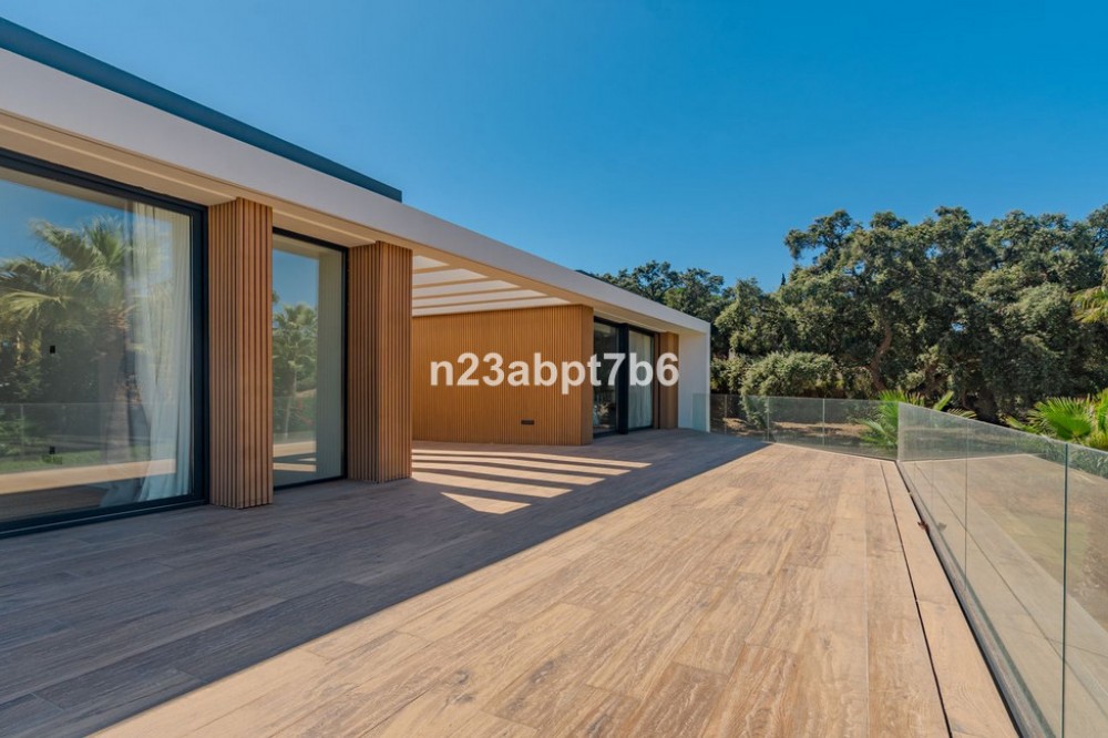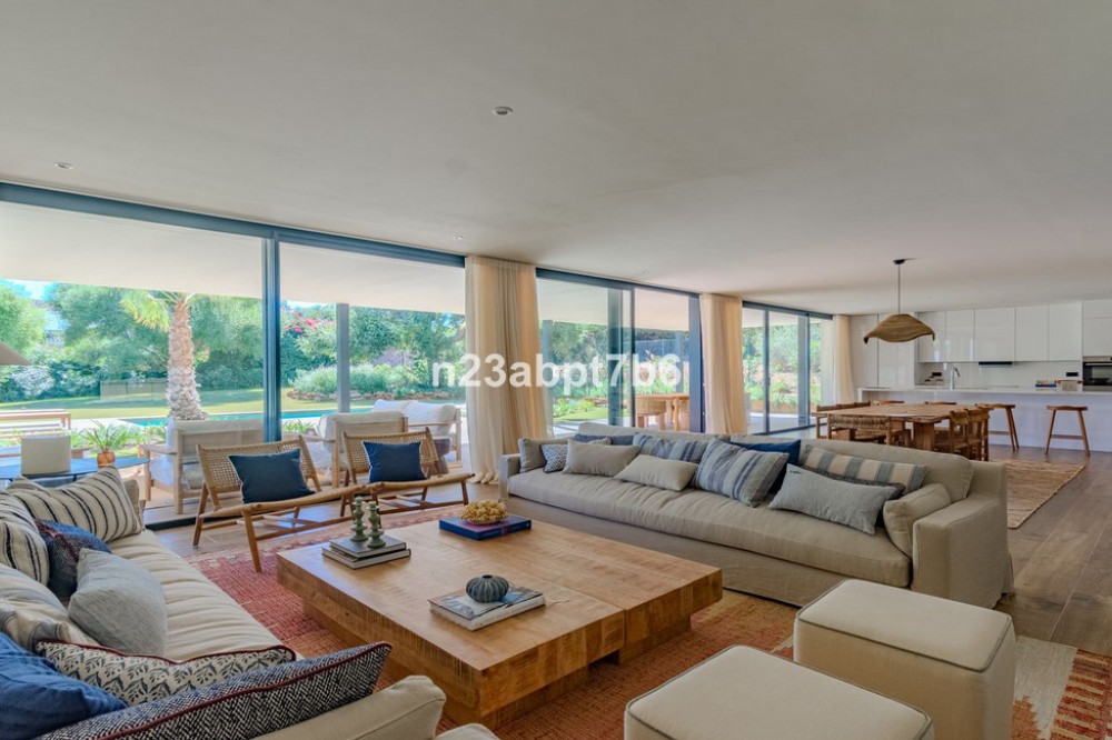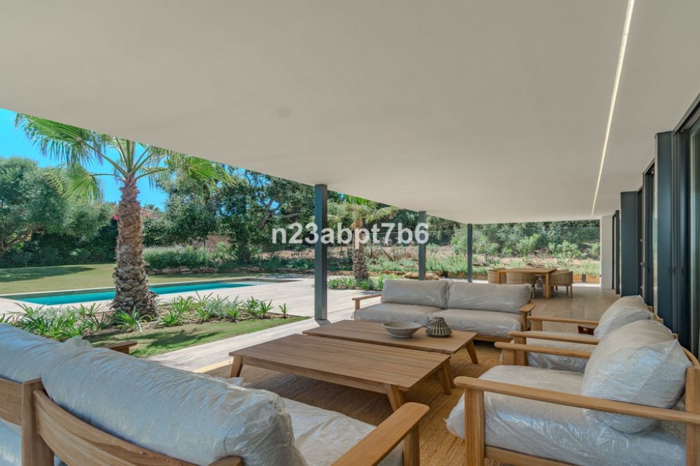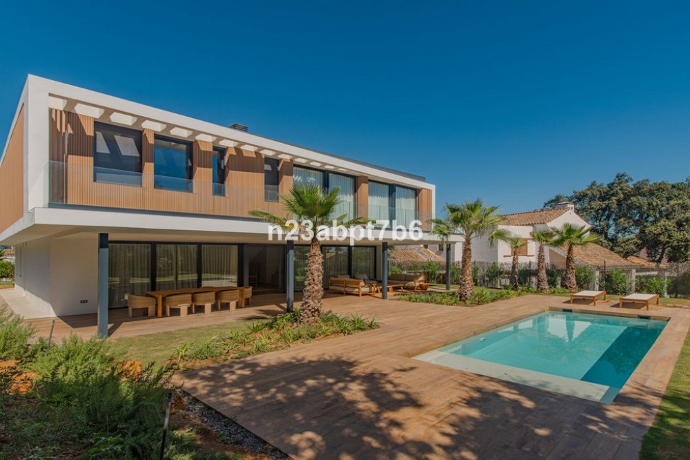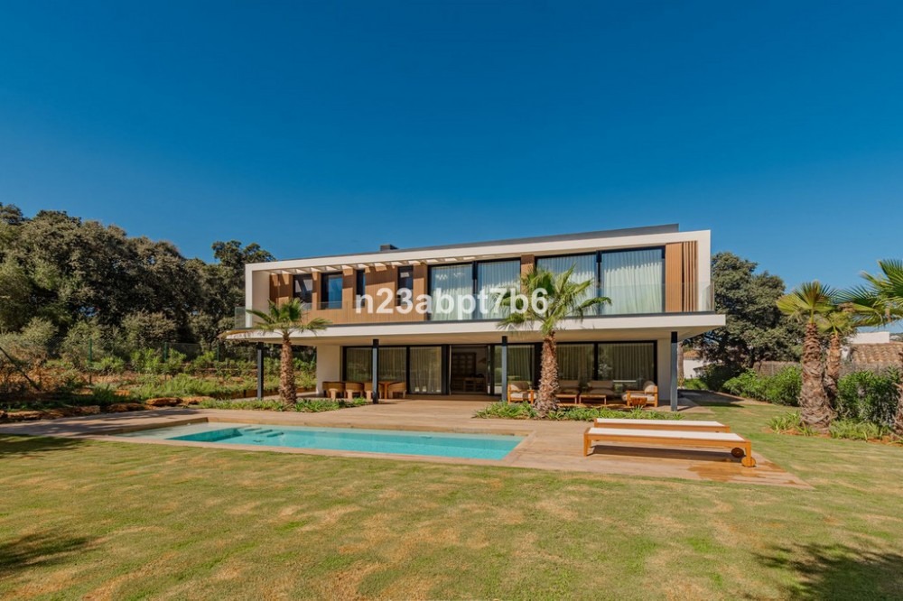 - Stunning contemporary luxury villa in Sotogrande Costa, one of the most prestigious and secure residential areas in southern Spain The villa features five spacious bedrooms, each with its own en-suite bathroom, plus a guest toilet An open-plan living and dining areas filled with natural light, seamlessly connecting indoor and outdoor spaces. Fully fitted kitchen with high-end appliances and luxury finishes. Built to the highest standards, the property includes air conditioning (hot & cold) throughout and pre-installation for solar panels, to assure both, comfort and future energy efficiency. Outdoors, the villa boasts a private swimming pool, beautifully landscaped gardens, and generous terraces—perfect for outdoor entertaining and relaxation in Sotogrande’s privileged climate. Private garage and additional storage space add security and functionality. Ideally located just minutes from Sotogrande’s exclusive beach clubs, world-class golf courses, the Sotogrande Marina, and the renowned Sotogrande International School, this villa is perfectly suited as: - An ideal family home - A perfect holiday home in Spain - And a secure real estate investment on the Costa del Sol.