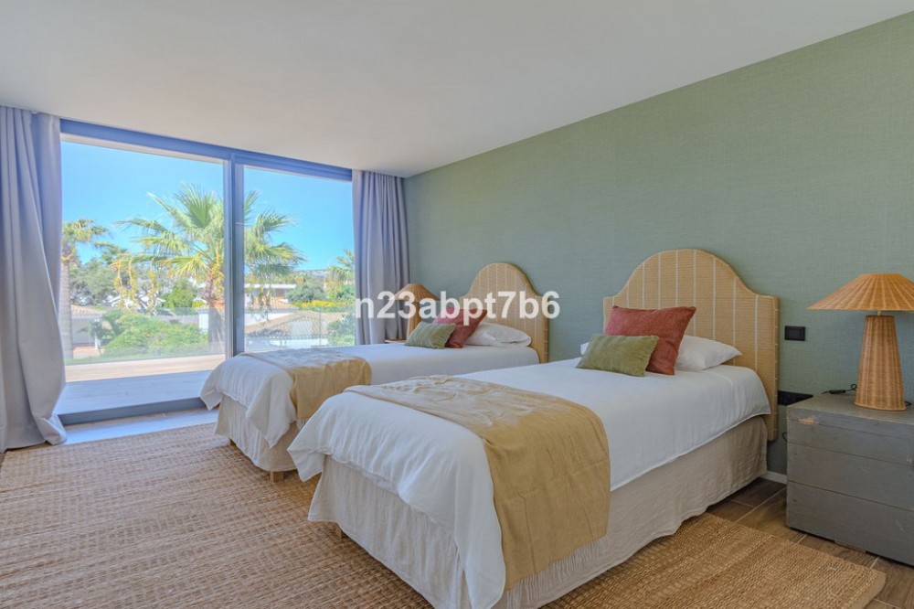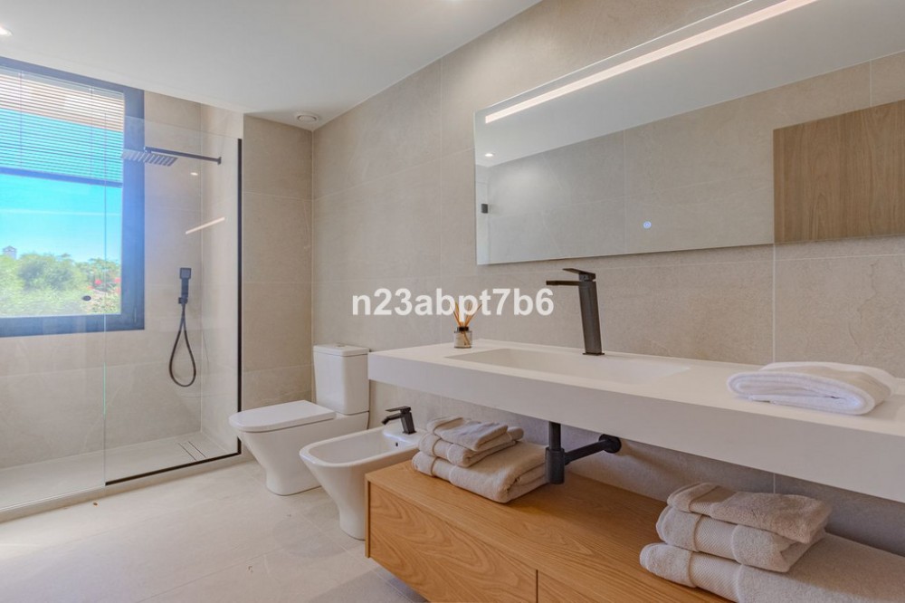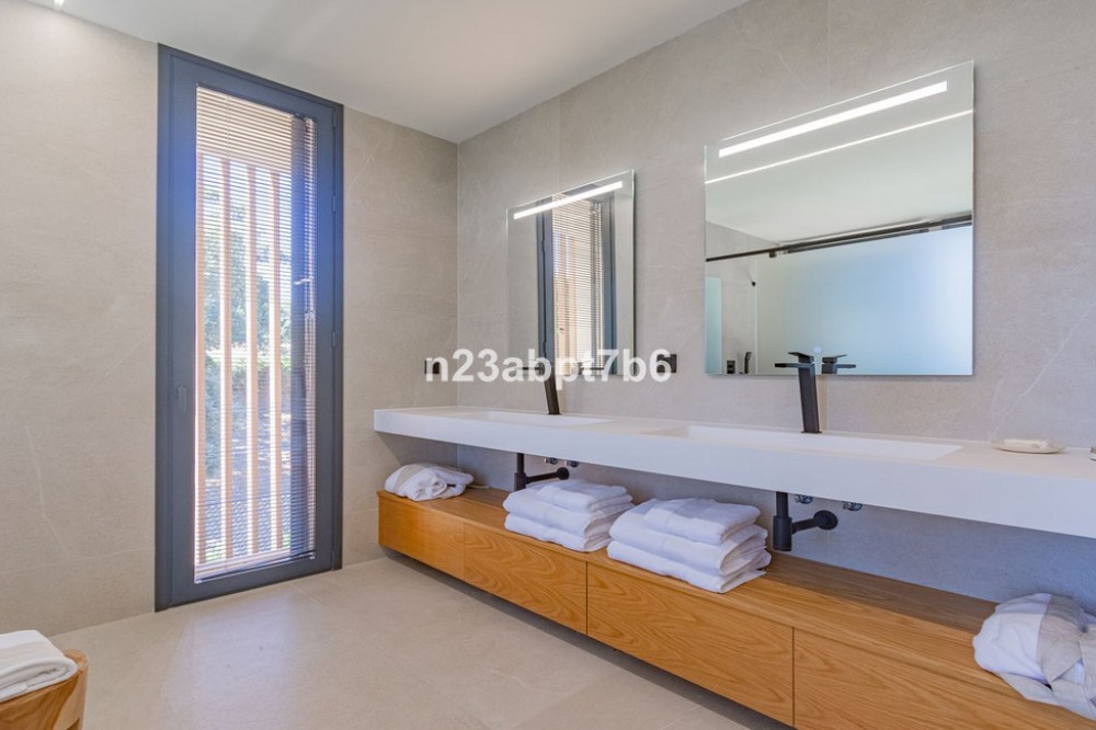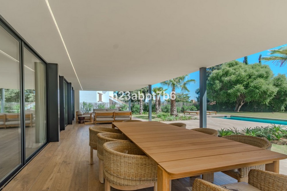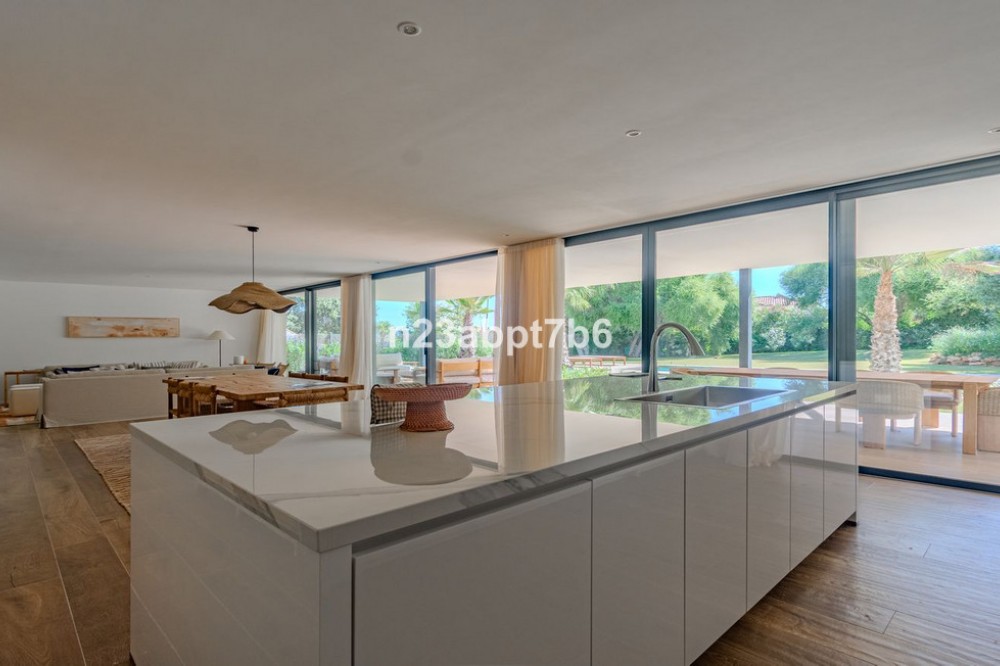 - Stunning contemporary luxury villa in Sotogrande Costa, one of the most prestigious and secure residential areas in southern Spain The villa features five spacious bedrooms, each with its own en-suite bathroom, plus a guest toilet An open-plan living and dining areas filled with natural light, seamlessly connecting indoor and outdoor spaces. Fully fitted kitchen with high-end appliances and luxury finishes. Built to the highest standards, the property includes air conditioning (hot & cold) throughout and pre-installation for solar panels, to assure both, comfort and future energy efficiency. Outdoors, the villa boasts a private swimming pool, beautifully landscaped gardens, and generous terraces—perfect for outdoor entertaining and relaxation in Sotogrande’s privileged climate. Private garage and additional storage space add security and functionality. Ideally located just minutes from Sotogrande’s exclusive beach clubs, world-class golf courses, the Sotogrande Marina, and the renowned Sotogrande International School, this villa is perfectly suited as: - An ideal family home - A perfect holiday home in Spain - And a secure real estate investment on the Costa del Sol.