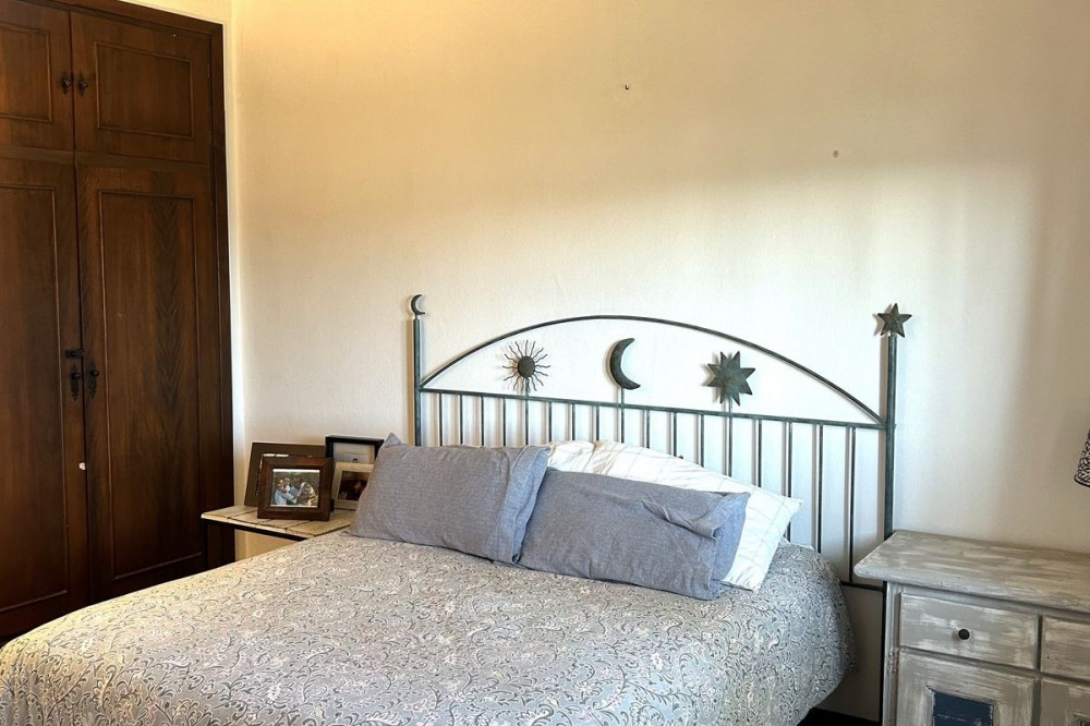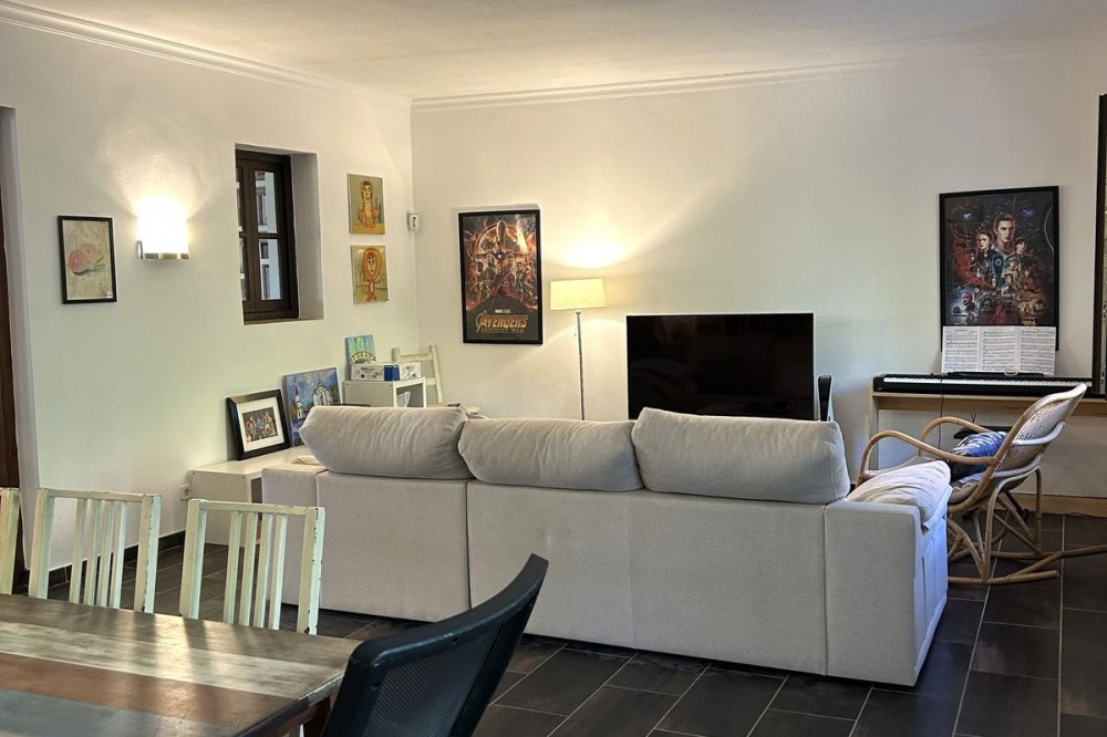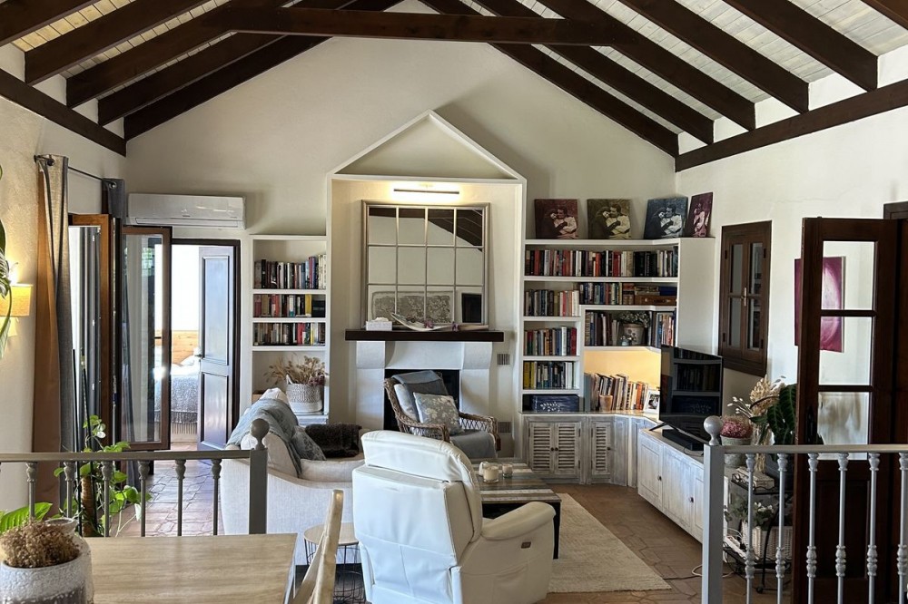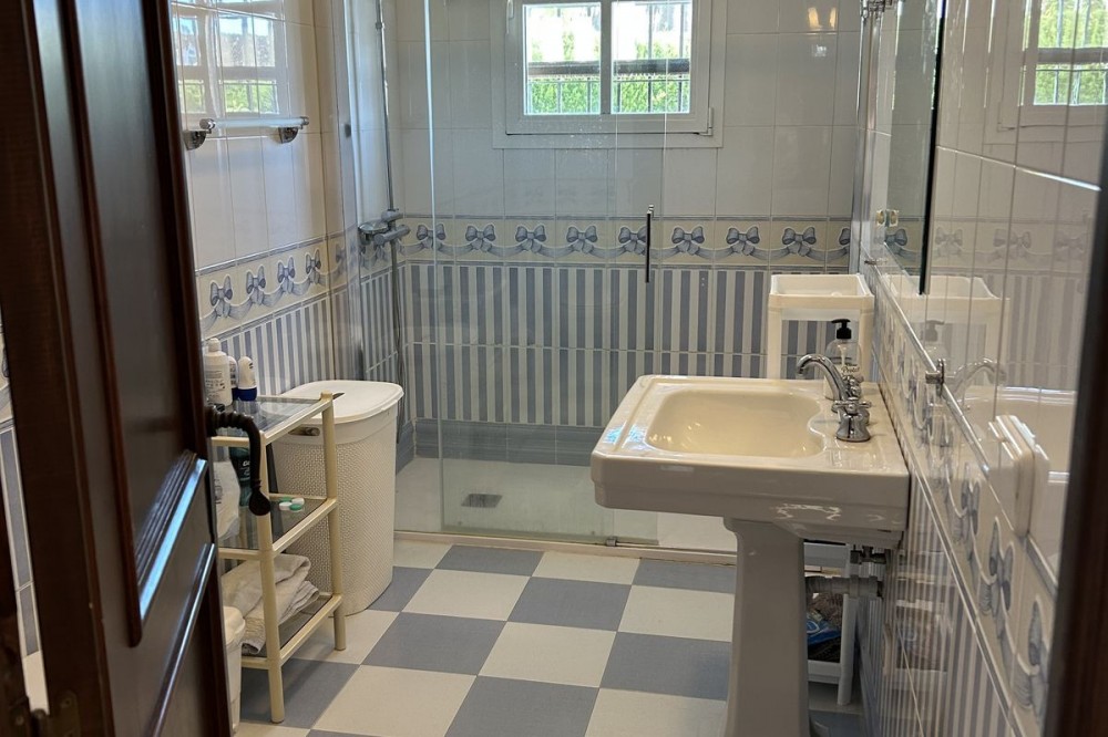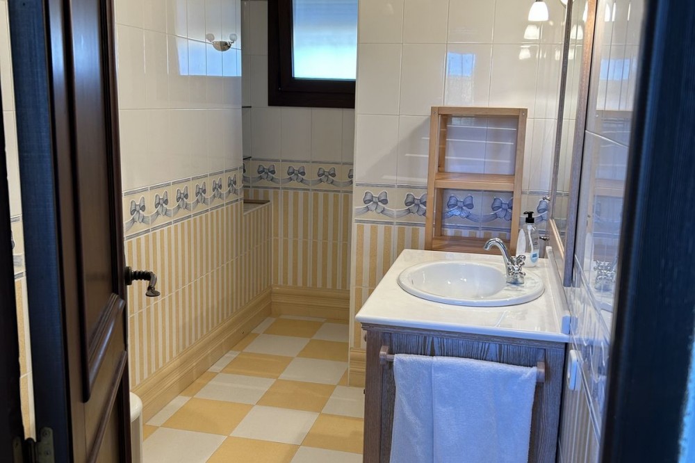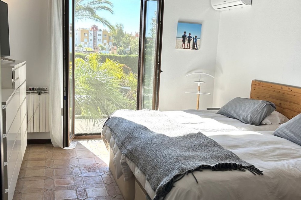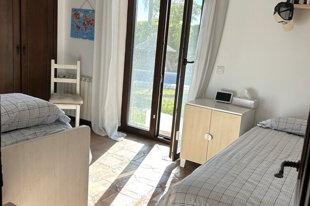 - Wonderful villa for sale in a residential area of Atalaya, in the Monte Biarritz neighborhood, ideal for families and those seeking privacy while living in a well-established area. The property is situated on a plot of 1,246 m², with a building potential of 0.36 which has not yet been fully used, so the house can still be expanded. The plot features a spacious garden area, a small shed, and a 32 m² swimming pool, facing south, making it very bright almost all day long. The house is distributed over two floors. On the ground floor, there is an entrance patio, a living room with a dining area in two distinct spaces, a fully equipped and furnished kitchen, a laundry area, two bedrooms, two bathrooms, and a front porch. On the first floor, there are two more bedrooms and a bathroom. One of the features that gives this villa great charm is its high ceilings with well-maintained wooden beams, being very sunny and bright all day, as well as its location very close to San Pedro de Alcántara, just minutes by car, with schools, shops, and easy access to the N-340 nearby. The villa is rustic in style mixed with modernity, in perfect maintenance condition.