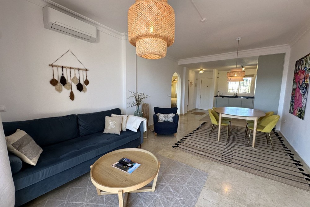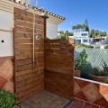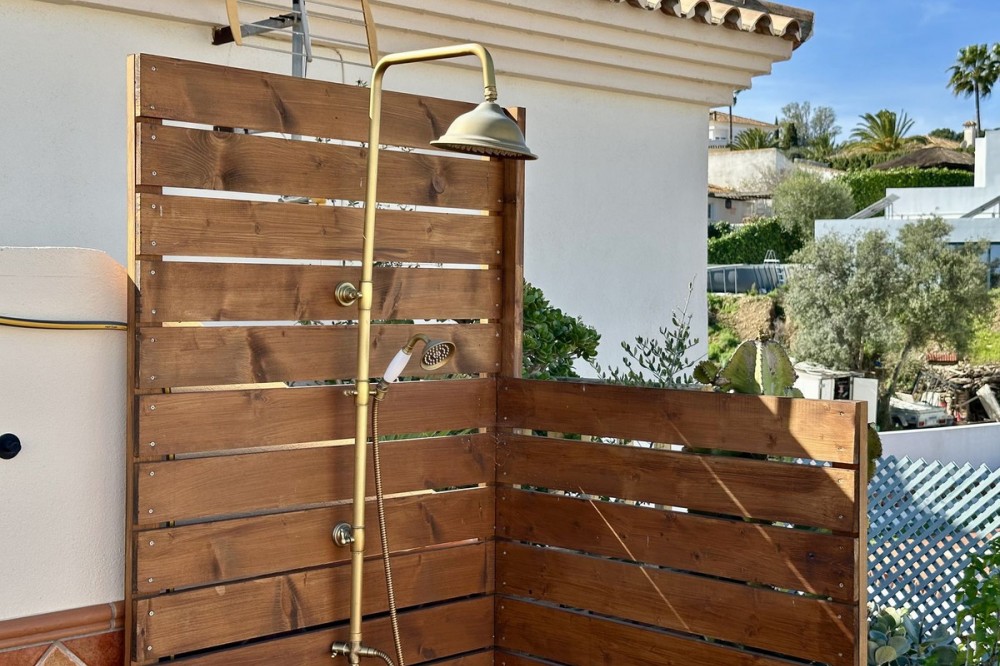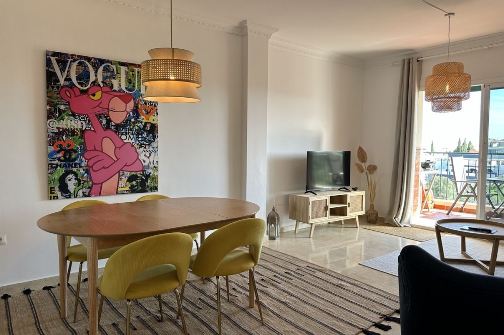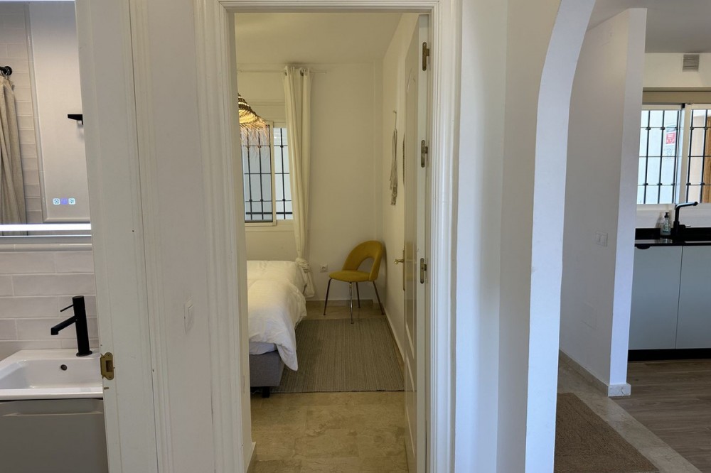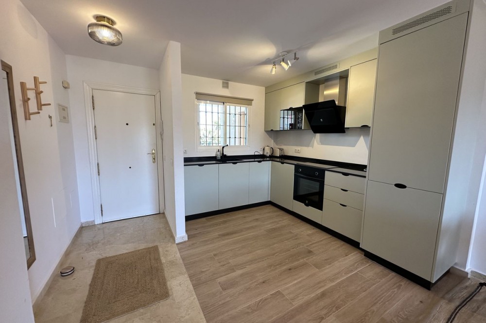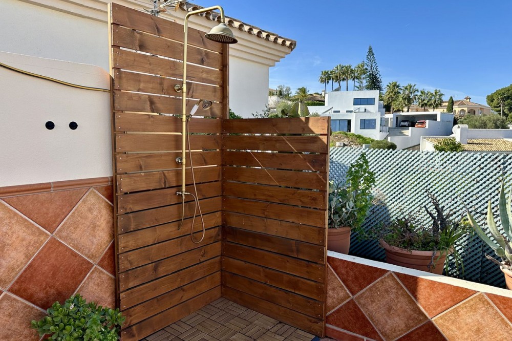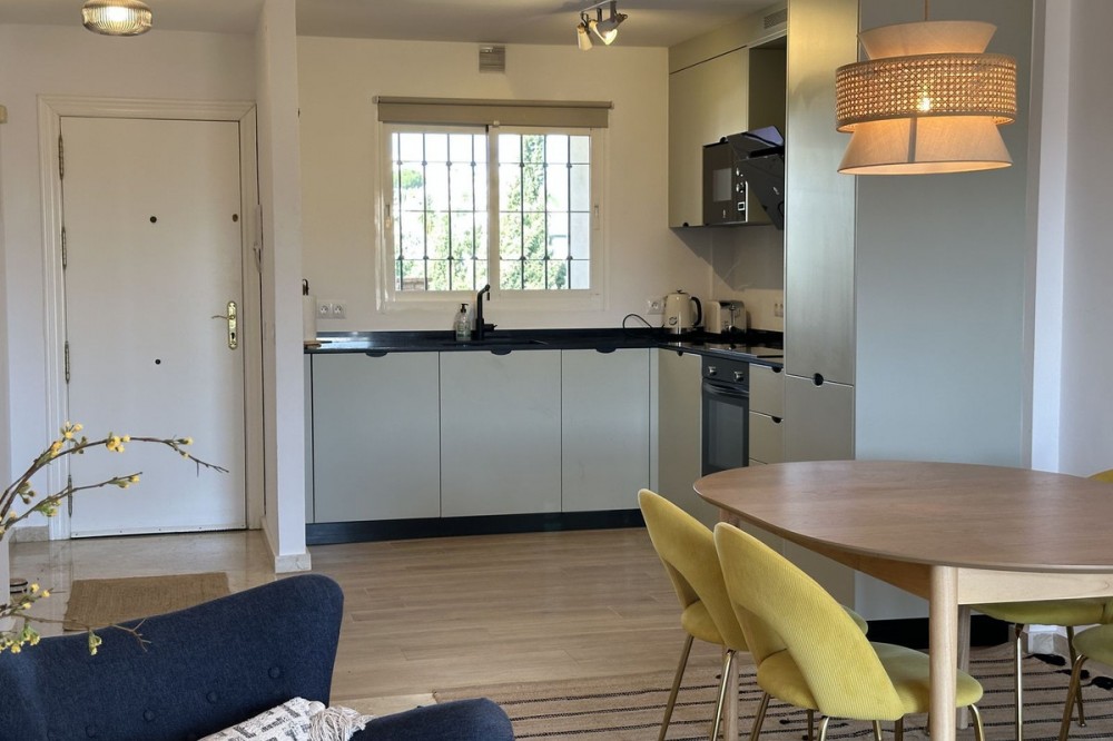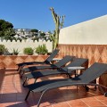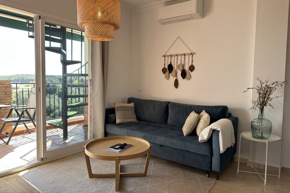- Top floor with a very large solarium/rooftop terrace! Beautiful & bright apartment in walking distance to restaurants and the local supermarket. This amazing apartment went through a large renovation only 1 1/2 years ago, with a brand new open plan kitchen & underfloor heating in both bathrooms. From the living room you enter a south facing good size terrace. However, if you walk up the external spiral staircase, you find yet an other extremely large solarium, where you can enjoy the most incredible views of both the sea, the enchanting mountains & all the green areas around Cerros del Aguila. When the current owner renovated, they also installed an outdoor shower on the top terrace, so you are able to be cooled down when tanning in the hot summer months. If you enjoys sports, the nearest padel club is located in walking distance. The same accounts for the infamos Cerrado Golf Club! On top, this unique investment is located only a few steps (meaning walking distance) from the new grand park area that the municipality of Mijas is in the process of building. It will become the largest park ever built on the Costa del Sol! Furthermore, this great home comes with 1 private parking space which is located within the gated community. And this amazing homw is sold fully furnished. It even comes with a sofa-bed, so all-in-all it is possible to sleep 6 persons in total. So all you need is to pack your suitcase, enter your perfect holiday home & enjoy the easy life on the Costa del Sol! It is worth mentioning that the current owners have obtained the tourist license for short terms rentals, and the community has not voted against short term rentals. However, as with all other communities, new owners still have to ask the administration if wishing to continue using the touristic license. Tourist license: This amazing apartment already has tourist license, and administration accepts the continuation for the new owners! The communial pool is open throughout the whole year.