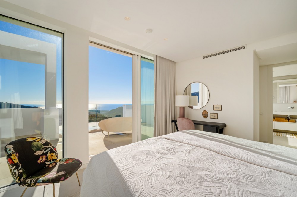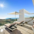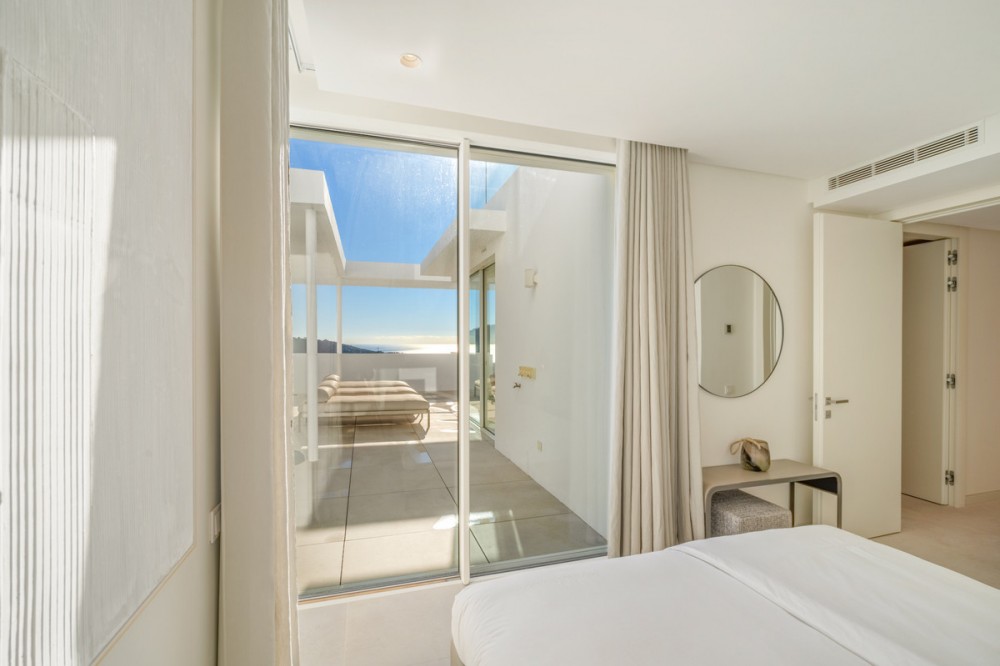 • This exceptional duplex penthouse occupies one of the best positions within the exclusive Palo Alto community in Ojén, offering unobstructed panoramic sea views across the Mediterranean coastline. The property features a spacious open-plan living and dining area with a designer kitchen fitted with Gaggenau appliances, seamlessly connecting to expansive terraces through floor-to-ceiling glass doors. Multiple terrace spaces throughout the home create a strong indoor–outdoor flow and offer complete privacy with open sea and mountain views. The highlight is the rooftop terrace, designed for entertaining and relaxation, complete with a large heated swimming pool, sun decks, a fully equipped outdoor kitchen, as well as an outdoor shower and toilet. The penthouse includes multiple en-suite bedrooms with terrace access, finished to a high standard. Additional features include a smart home demotic system, underfloor heating throughout, security cameras, three underground parking spaces, and a private storage room, all included in the price. The property is sold fully furnished with designer furniture, offering a turnkey solution. Located just minutes above Marbella, this exclusive gated community offers 24-hour security and a full suite of resort-style amenities, including a clubhouse with spa, co-working area, gym, sauna and cold plunge, as well as tennis courts, scenic hiking trails, and an on-site organic market. Combining privacy, elevated views, and effortless access to the coast, golf courses, and local amenities, this penthouse represents an outstanding luxury residence in a truly exceptional setting.