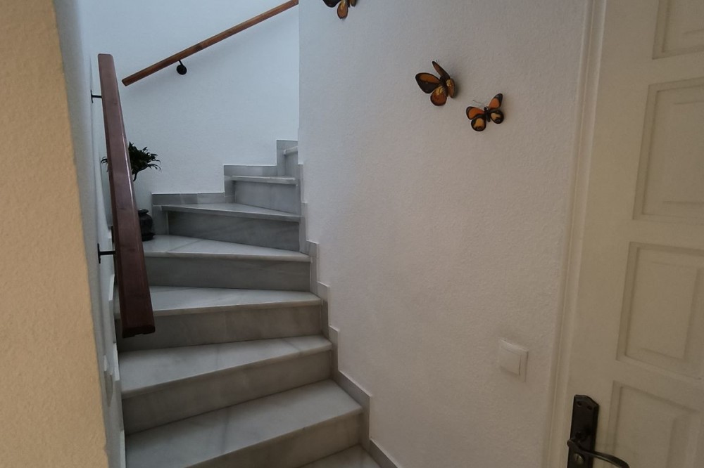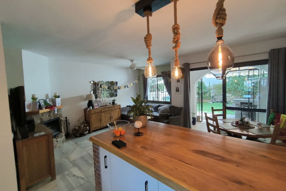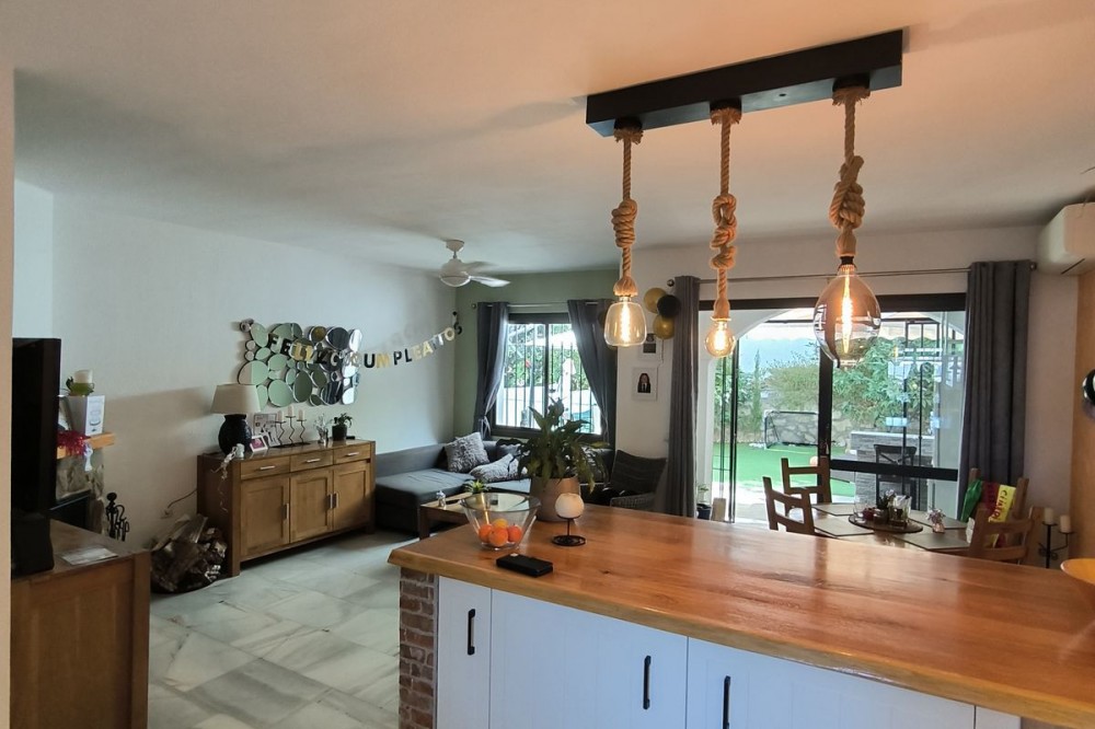 - Situated in the popular residential area of Cerros del Aguila, just a short drive from the beach and the vibrant centre of Fuengirola, this beautifully renovated semi-detached house is ready to move straight into. The property offers three spacious bedrooms, two modern bathrooms, a bright and generously sized living room, and a fully fitted contemporary kitchen, ideal for both daily living and entertaining. Outdoor living is a real highlight, featuring a private garden perfect for year-round barbecues and three private terraces with lovely mountain views, ideal for enjoying both sunrise and sunset. Additional features include a private parking space, as well as access to excellent communal facilities such as a well-maintained swimming pool, tennis court, and children’s playground. Recently renovated, including private parking, and located in a sought-after area—this is a fantastic opportunity on the Costa del Sol.