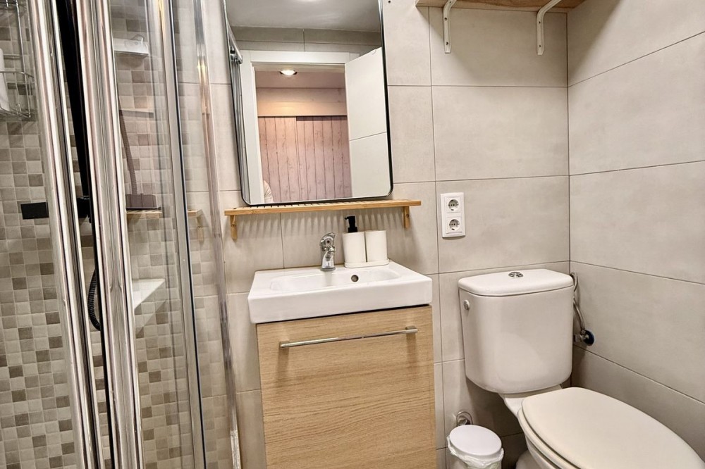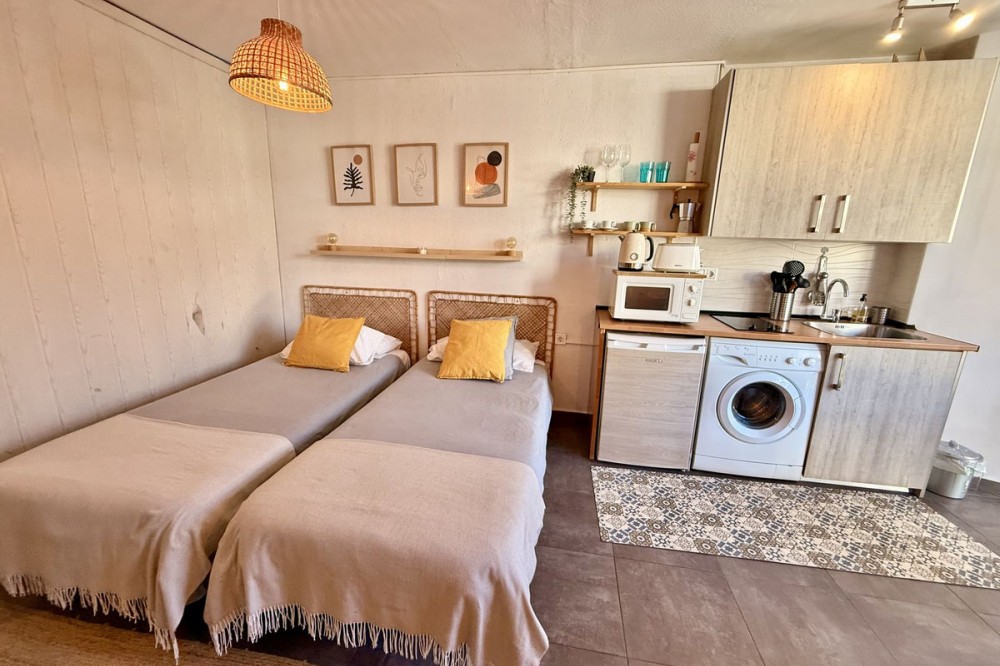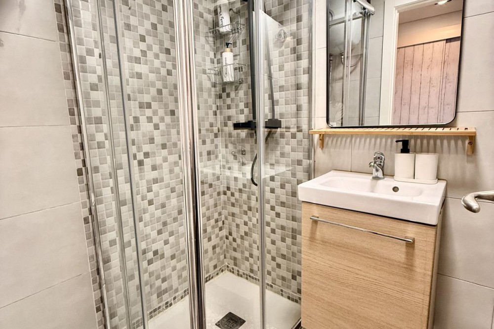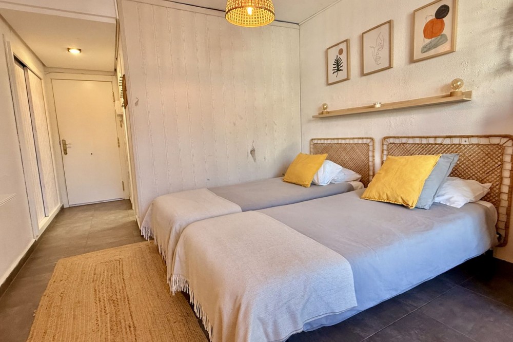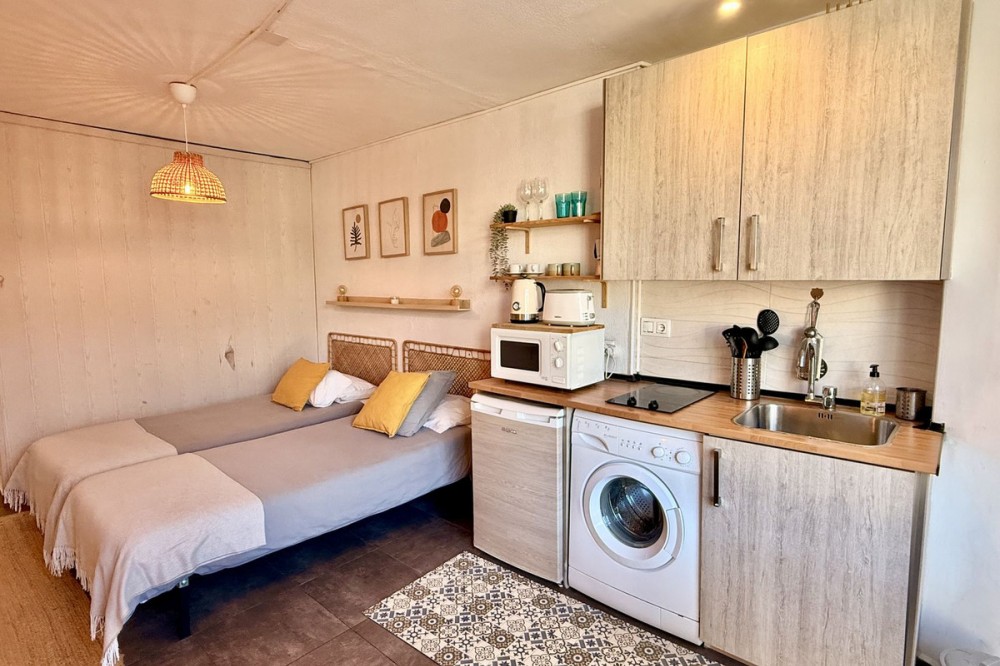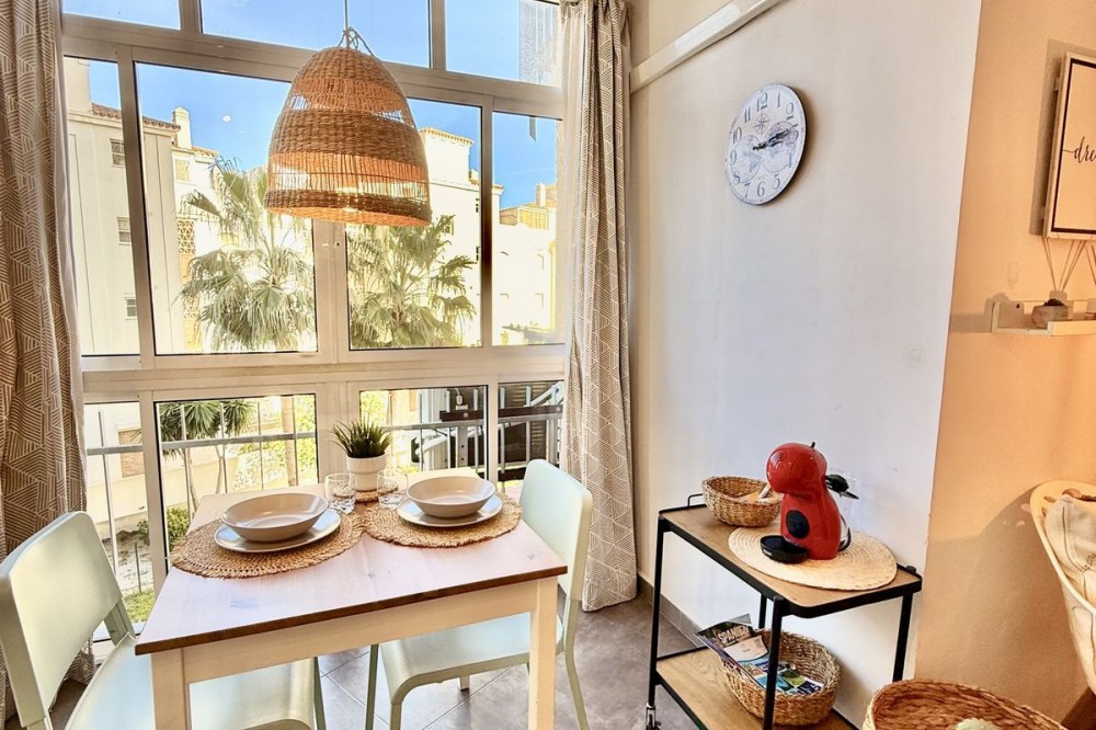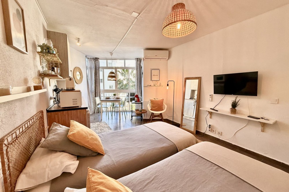 - This completely renovated studio apartment for sale in Benalmádena Costa — just 50 meters from the beach! This cozy studio is located on the second floor of a building with an elevator and comprises a bright living-dining room with an integrated kitchen, as well as a full bathroom with a shower. The property is sold fully furnished and equipped, with two 90 cm beds, ready to move into or start renting out from day one. The residential complex has pleasant communal areas with swimming pools and gardens, as well as communal parking (no assigned space), which adds convenience and value to the property. Its location is undoubtedly one of its great attractions: just a few steps from the beach and the promenade, surrounded by all kinds of amenities such as supermarkets, shops, a pharmacy, restaurants, and bars. It is also very close to Puerto Marina, one of the most emblematic marinas on the Costa del Sol, ideal for enjoying walks by the sea, leisure and gastronomy. It is also close to the Parque de la Paloma, perfect for relaxing and enjoying green areas. Transport links are excellent, with bus stops and taxis just a few meters away, and the local train station approximately 1.3 km away, providing easy access to Malaga city and other points along the coast. Malaga-Costa del Sol Airport is about 11-12 km away, just 10-15 minutes by car. An ideal property as a vacation home, primary residence, or investment, located in one of the most sought-after areas of Benalmádena, with everything within reach and a dynamic environment by the sea.