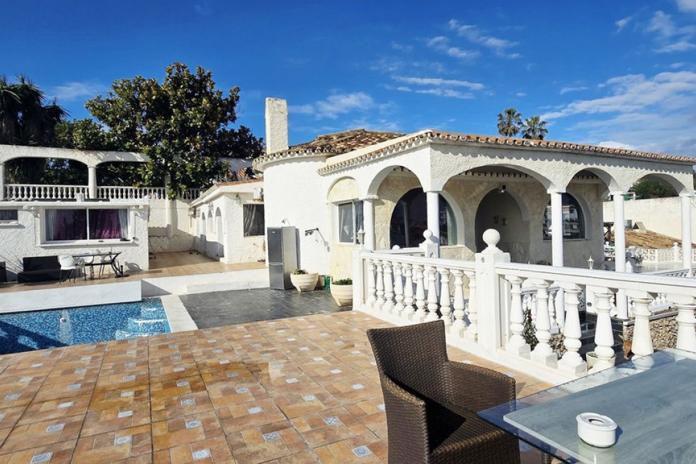 - This Villa is an Oasis Just Steps from the Sea. located on the border between Mijas Costa and Fuengirola. Ideal as a boutique B&B or holiday rental income or family home, with apartments for guests. Just a short walk from the beach and surrounded by natural light and views from different corners of the property, this Villa is a Mediterranean retreat that blends privacy, space, and endless possibilities. Set on a sunny plot with a private pool, outdoor lounging areas, and several independent living units, this villa is perfect for hosting family, welcoming guests, or generating rental income while maintaining complete privacy. The Main House A spacious single‑level chalet featuring 3 bedrooms and 2 bathrooms, a fully equipped kitchen, and a second independent kitchen. With two separate entrances, the main house can easily be divided into two self‑contained units—ideal for large families or for maximizing rental potential. Three Additional Spaces to Live and Enjoy • Independent 2‑bedroom mini‑chalet, overlooking the pool—perfect for guests or holiday rentals. • Independent 1‑bedroom mini‑chalet with its own kitchen, a beautiful large terrace, and a private solarium with open views. • A separate studio, ideal as an office, gym, creative space, or extra accommodation. Outdoor Areas That Inspire A private pool, sunbathing areas, two storage rooms, and parking space for up to four vehicles.. All of this in a privileged, peaceful location—yet just moments from the sea and all essential services. A versatile, bright, and uniquely flexible villa—perfect for living, investing, or simply enjoying the Costa del Sol lifestyle.