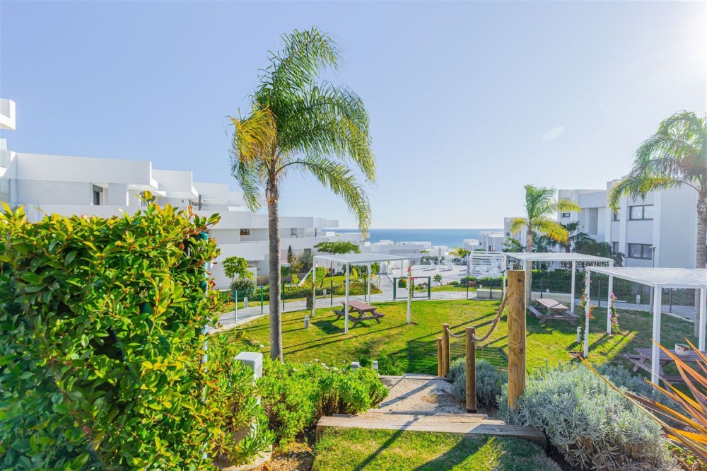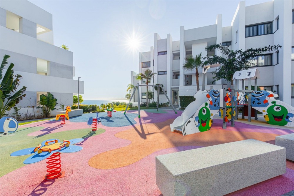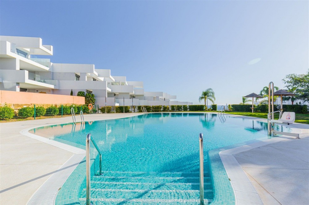 - Stunning South-Facing 2-Bedroom Apartment with Spacious Terrace and Panoramic Sea Views This bright and spacious 2-bedroom, 2-bathroom apartment is designed to maximize natural light and comfort. Its well-planned layout creates open, airy interiors that flow seamlessly onto a large terrace with stunning sea views, offering complete privacy perfect for relaxing or entertaining. This modern, key-ready property is just 3 years old and comes fully furnished. Finished to a high standard, the apartment features floor-to-ceiling windows with fitted mosquito nets , modular fitted wardrobes, and bathrooms with top-brand tiling, thermostatic showers, and quality fittings. The kitchen is fully fitted with floor-to-ceiling cabinetry, quartz worktops, and integrated appliances, including induction hob, oven, microwave, fridge, dishwasher, washing machine, and dryer. Centralised air conditioning and advanced acoustic and thermal insulation. Communal facilities include saltwater pools for adults and children, landscaped gardens, picnic areas, playgrounds, chill-out spaces, a fitness area, yoga and relaxation zones, solarium, leisure room, and secure access—perfect for a balanced Mediterranean lifestyle. Pure South Residences, a private hillside development in Manilva, offers panoramic Mediterranean views and spacious communal areas designed for outdoor living, relaxation, and well-being. The modern architecture features clean white volumes, stepped terraces, and expansive glazing, connecting seamlessly with the natural surroundings. Located close to La Chullera and Sabinillas beaches, La Duquesa Marina, golf courses, supermarkets, and international airports such as Gibraltar, Pure South Residences offers contemporary coastal living with nature, comfort, and quality design on the western Costa del Sol.