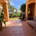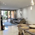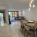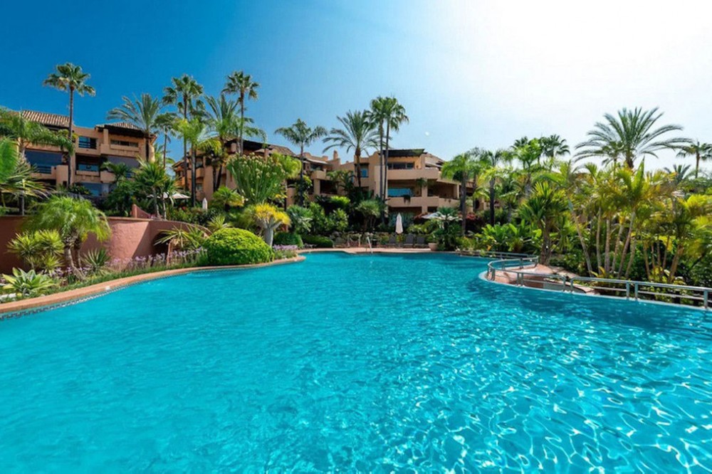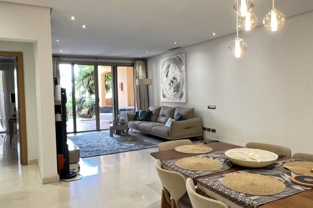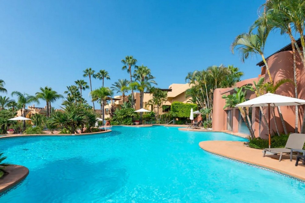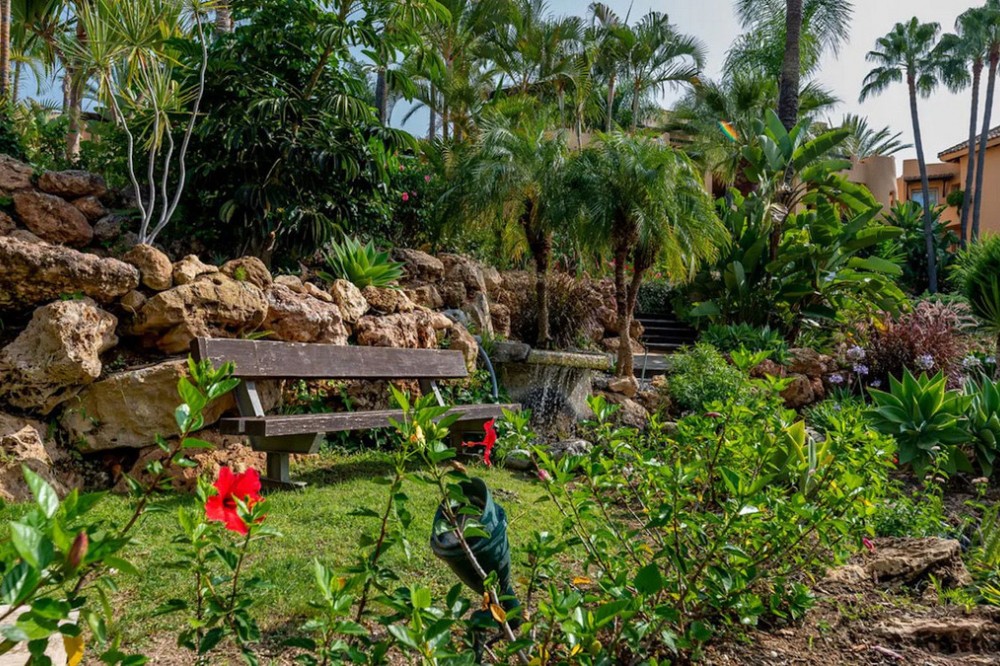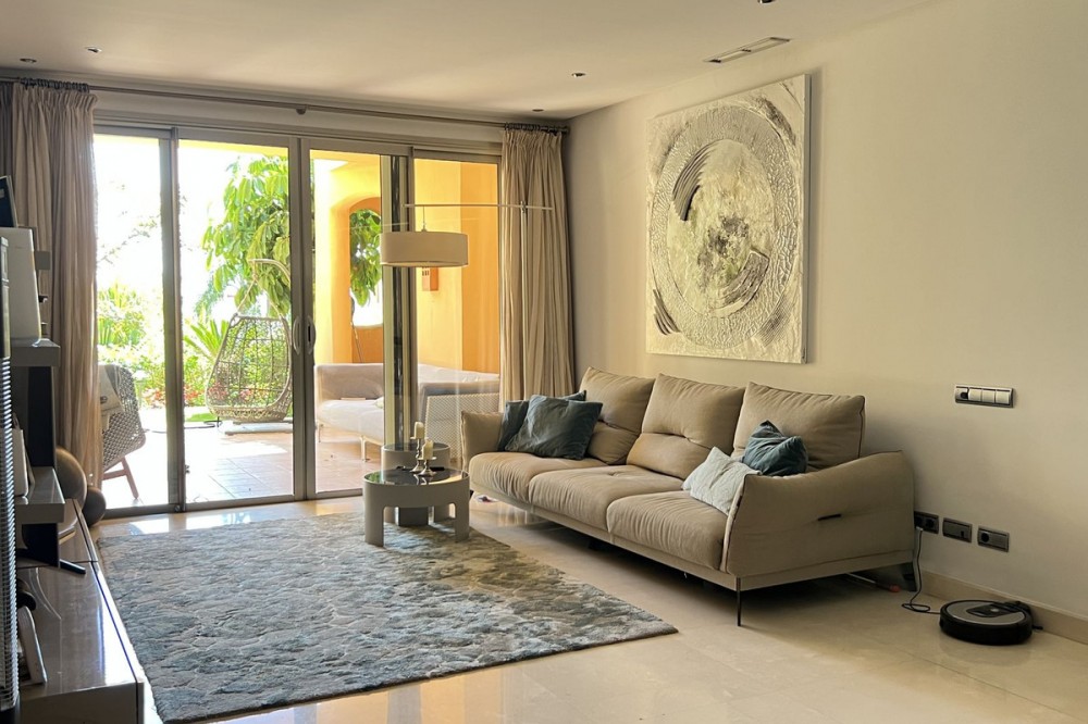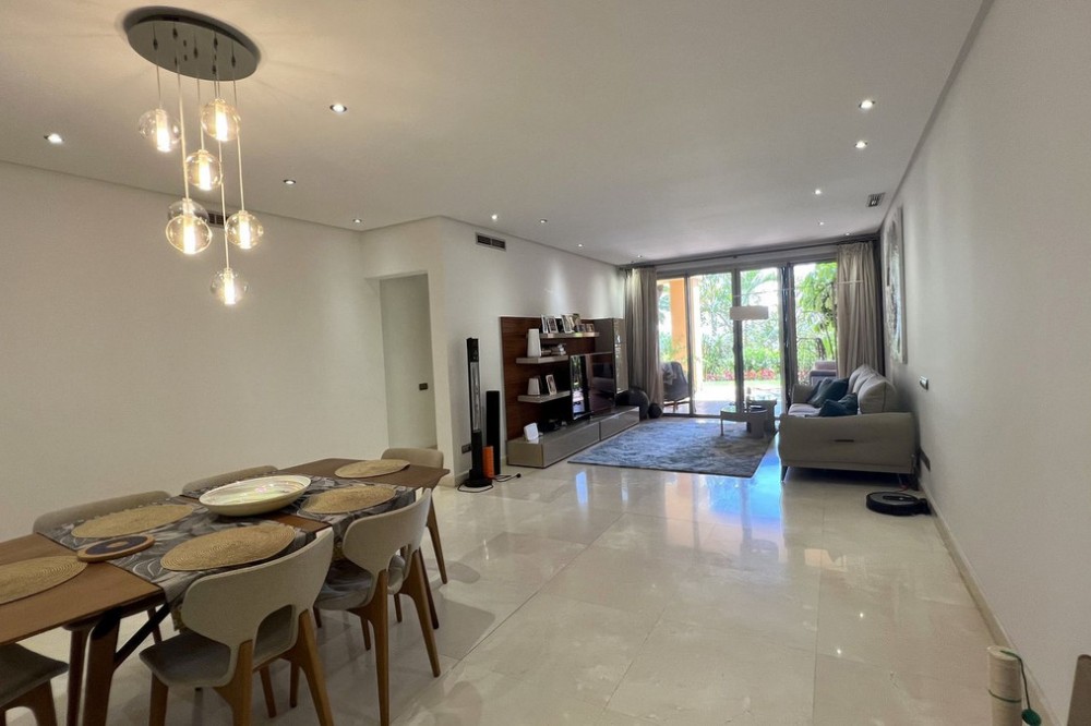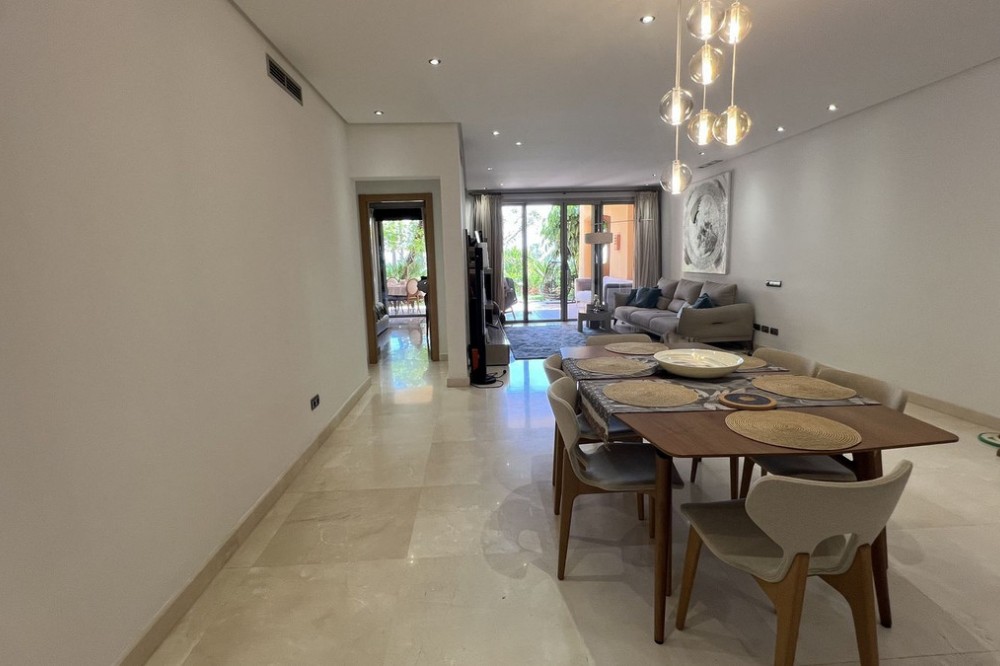 - Located in the prestigious gated community of Mansion Club, in the heart of the renowned Sierra Blanca area, this elegant three-bedroom apartment offers an exclusive residential environment, surrounded by lush tropical gardens and an atmosphere of absolute tranquility. Its privileged location combines privacy and convenience, just minutes from Marbella’s Golden Mile, the beaches, top-notch services, and renowned golf courses. This is a ground-floor corner unit, south-facing, elevated approximately 2.5 meters above ground level, which provides plenty of natural light and a notable sense of privacy within this exclusive development. The garden offers partial sea views, a perfect added value to enjoy outdoor living all year round. The interior features a spacious living and dining area that opens onto the terrace. The independent kitchen provides comfort and privacy, with a separate laundry area. The master bedroom has direct access to the terrace and an en-suite bathroom. High-end finishes throughout the apartment add elegance and sophistication. Additionally, it includes secure underground parking and a private storage room. This residential complex, with 24-hour security, lush tropical gardens, pools, and waterfalls, also offers a SPA area, jacuzzi, indoor pool, and gym, and is located approximately 2 km from Marbella center and its beaches. Designed by the renowned architect Melvin Villarroel, it was built with premium materials and unique features that give it a distinctive character.