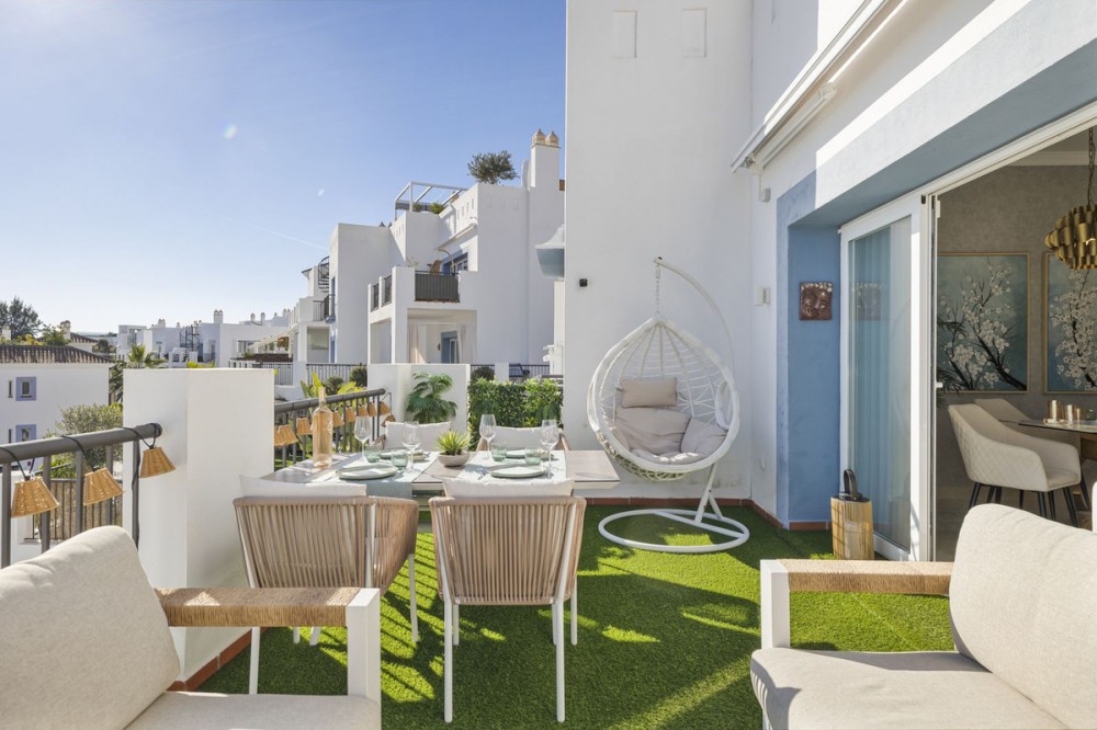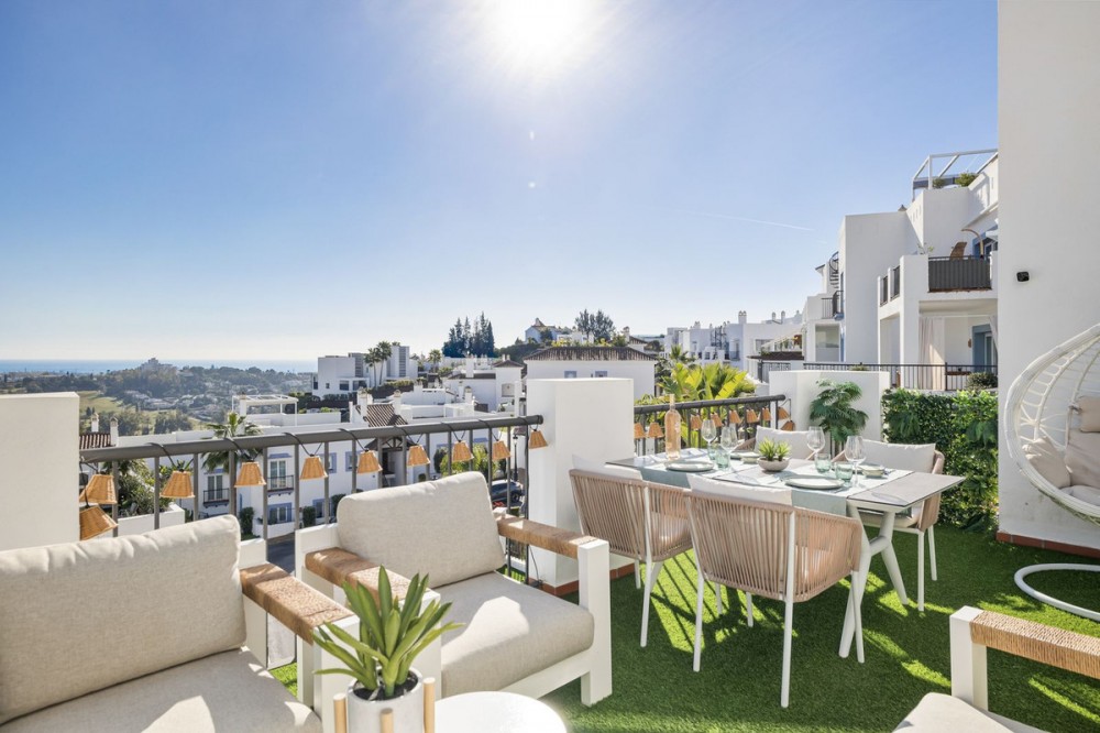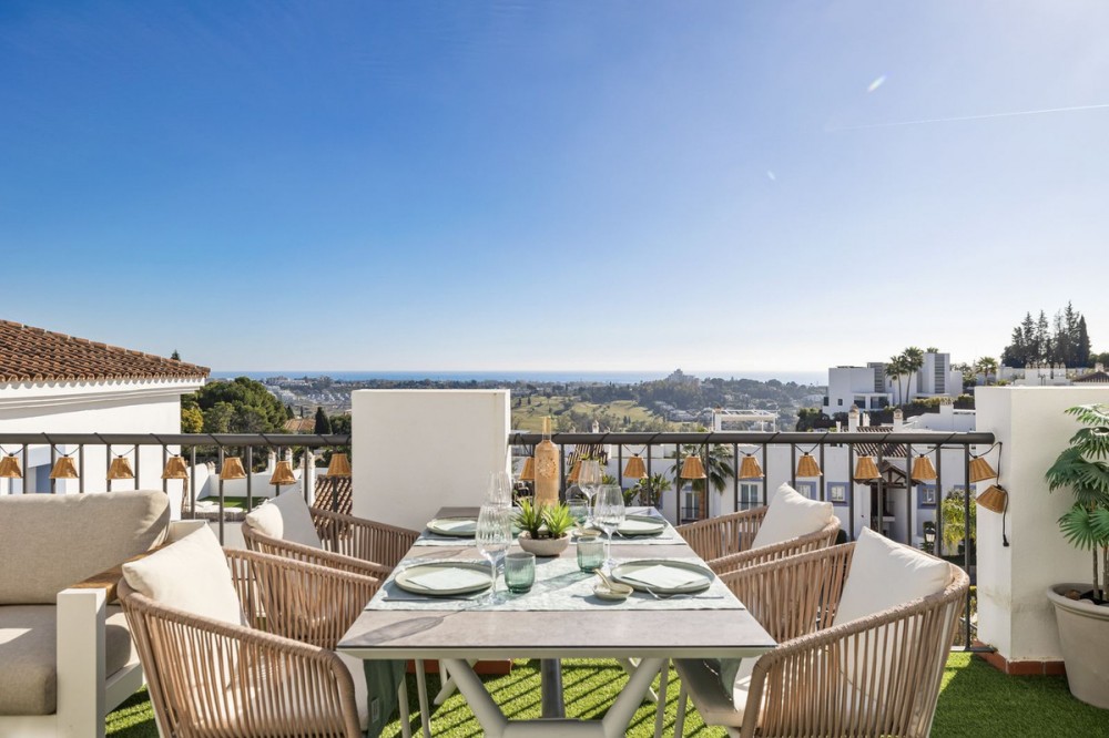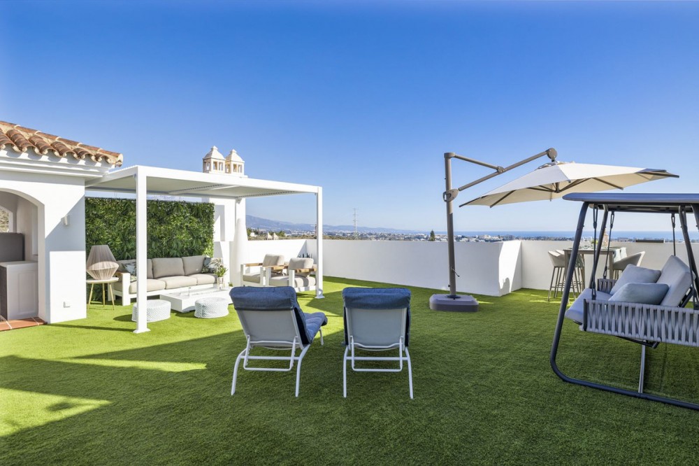 - Exceptional Penthouse with Stunning Views – Best Unit in the Development This outstanding three-bedroom, two-bathroom penthouse offers breathtaking panoramic views and represents one of the finest residences within the entire development. With 101 m² of usable interior space complemented by an impressive 108 m² of terraces, the property is designed to maximize both comfort and lifestyle. The penthouse features a modern open-plan kitchen seamlessly connected to a bright and spacious living area, creating an ideal setting for both everyday living and entertaining. A key distinguishing feature—and a major advantage over all other penthouses in the development—is the internal staircase, replacing the typical spiral staircase and providing superior comfort, safety, and elegance. The three well-proportioned bedrooms offer privacy and comfort, while the two bathrooms are finished to a high standard. Outdoor living is a true highlight, with expansive terraces providing exceptional space to relax, dine, and enjoy the stunning surroundings. Additional features include: * Underground parking space * Private storage room * 24-hour security * Exclusive gated community * On-site restaurant * coworking space * Fully equipped gym * 7 outdoor pools * Indoor pool * Sauna * short term license in place! This penthouse truly stands apart as the best unit in the entire development of Paraiso Pueblo, combining a superior layout, premium amenities, and an unbeatable lifestyle offering. A rare opportunity to acquire a top-tier penthouse in a secure and highly sought-after community.