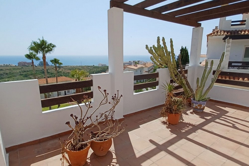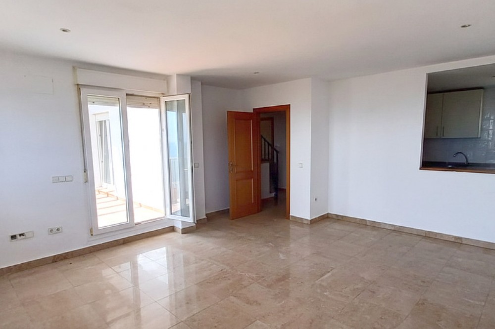 - This charming penthouse is located in the Alcorrín area of Manilva and stands out for its privileged location just 500 meters from the sea, close to golf courses and the Puerto de la Duquesa. The apartment has been recently refurbished, ensuring excellent condition and offering a comfortable and welcoming atmosphere. In addition, it is situated in a gated community with mature gardens and a communal swimming pool, providing a safe and peaceful environment for its residents. Upon entering the apartment, you are greeted by a spacious living room featuring marble floors and glass doors that allow abundant natural light to enter. From the living room, there is direct access to a private terrace, ideal for enjoying panoramic views and the garden. The kitchen area is spacious, allowing you to install a new kitchen to your taste, and is semi-open to the living room with a peninsula. The apartment has 3 bedrooms, all with built-in wardrobes for ample storage space. Additional features of this property include air conditioning, double glazing, and a security entrance. The community offers a range of services and amenities, such as communal gardens and a swimming pool, allowing residents to enjoy a relaxed and comfortable lifestyle. The proximity to marinas, beaches, and golf courses makes this apartment an ideal option for both permanent residence and holidays.