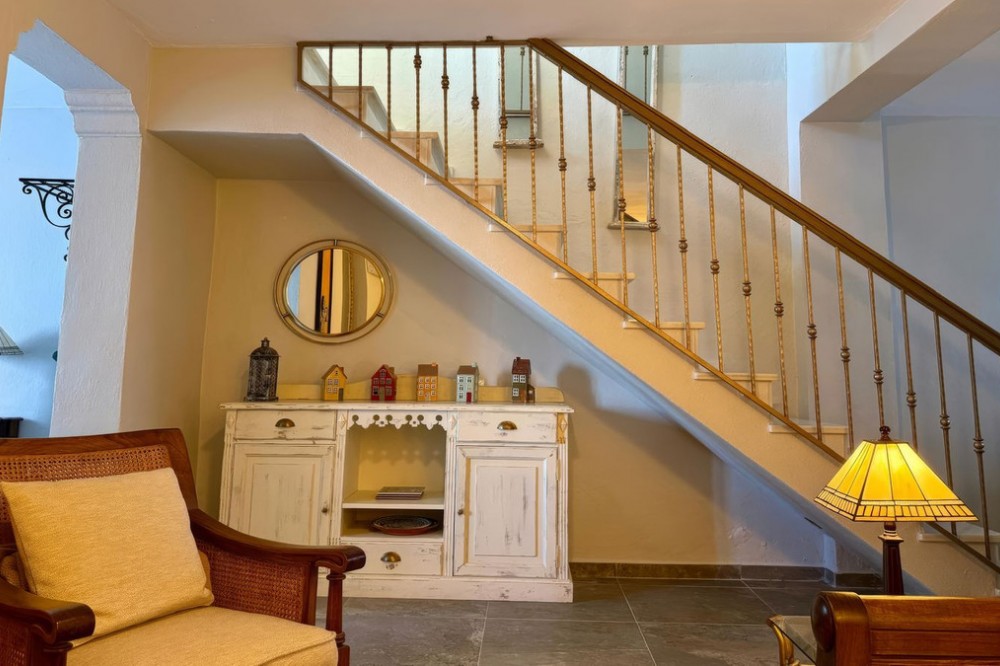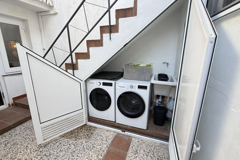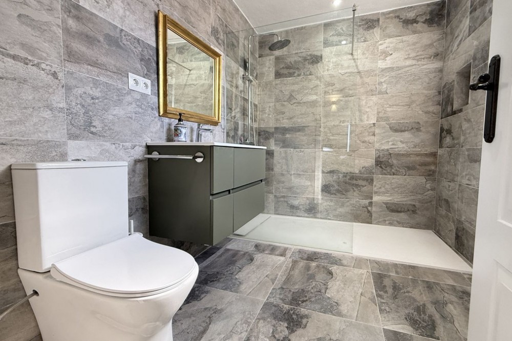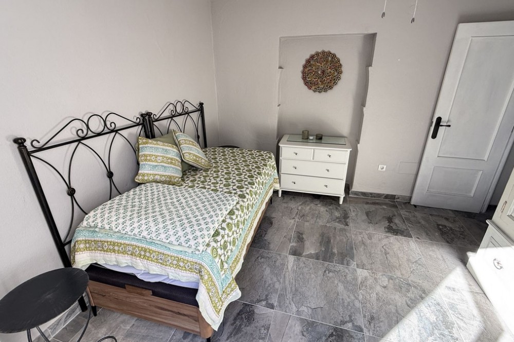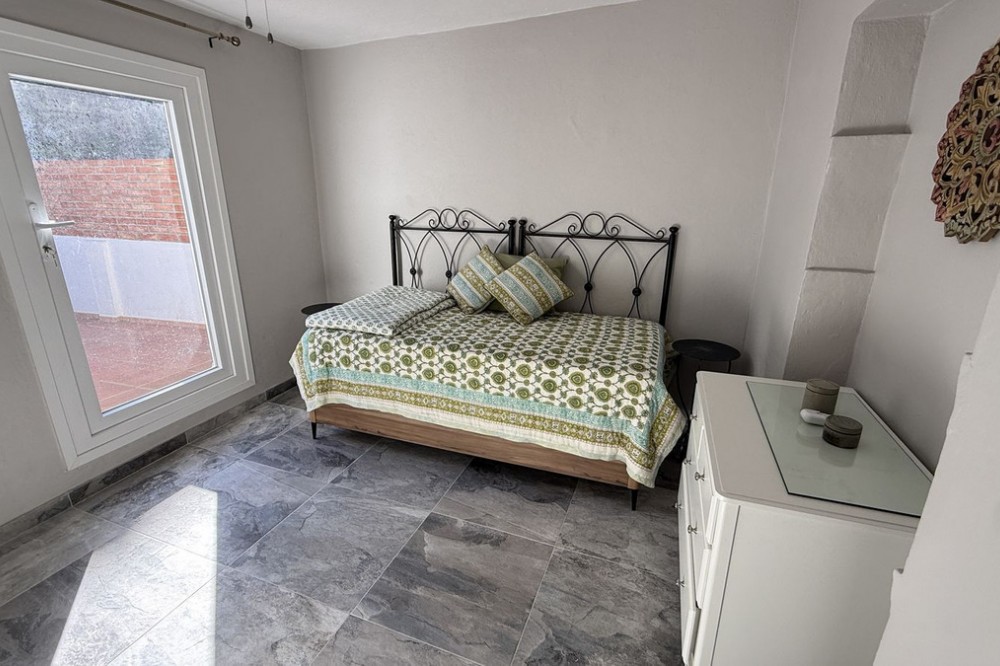 - Set in a quiet street right in the heart of town, this beautifully renovated townhouse enjoys a genuinely prime location, with all amenities just a short stroll away, yet with the rare bonus of peace, privacy and a charming patio garden. The main house is arranged over two floors and has been thoughtfully updated throughout. On the ground floor you are welcomed by an entrance hall leading to a comfortable living room, a stylish brand new German kitchen, a modern bathroom and a convenient ground floor bedroom, ideal for guests or flexible living. Upstairs, the main bedroom features fitted wardrobes and breathtaking open views across the valley, a real standout feature. This floor also offers a fully renovated bathroom finished to a high standard and a second bedroom with direct access to a private terrace, perfect for enjoying the sun or a quiet morning coffee. Adding even more versatility is a separate two storey outbuilding. On the lower level there is a second living room or entertaining space, while the upper floor provides a large storeroom with excellent potential. Behind this building lies the private garden, a tranquil and characterful space framed by natural rock, offering a rare sense of seclusion in such a central location. Four new inverters provide heat in the winter and cooling in the summer, whilst solar panels on the roof provide electricity to the entire house including the water heater (there is no battery, however), helping to offset electricity bills for significant savings. This is a stunning property that combines quality renovation, flexible living space and an unbeatable town centre setting. An exceptional home that truly needs to be seen to be appreciated.