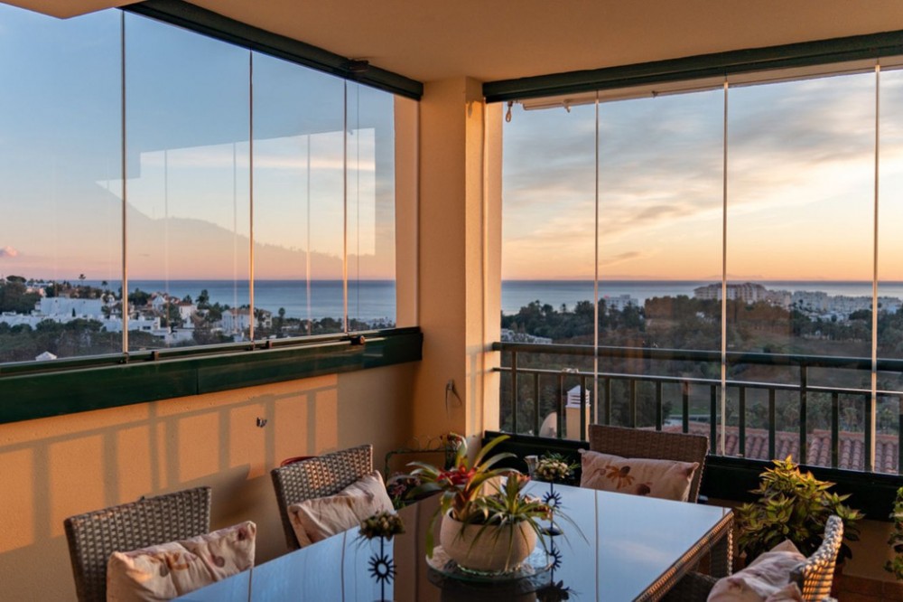- Apartment located in a well-established residential development next to Torrequebrada Golf, offering a comfortable and well-planned layout. The property features bright, generously sized living spaces, with the main living area opening directly onto an enclosed terrace fitted with glass curtains. From here, there are open views over the surrounding green areas and partial sea views in the distance. The interior is practical and well maintained, suitable for both permanent living and holiday use. The apartment comprises two bedrooms, two full bathrooms, built-in wardrobes and a fully equipped independent kitchen. The enclosed terrace adds valuable year-round living space, allowing natural light to flow through the home while providing a flexible area for dining or relaxation. The property includes a private parking space and forms part of a well-kept residential complex in a quiet setting. Situated in the Torrequebrada Golf area, one of Benalmádena’s most established residential zones, the property is within easy reach of the beach, supermarkets, schools, sports facilities and the golf course itself. There is quick access to the A-7 motorway, providing convenient connections to Málaga city centre, Málaga International Airport and the rest of the Costa del Sol. A practical location combining residential surroundings with nearby services and good transport links. The Abbreviated Informative Document (DIA) is available upon request. Additional costs: taxes (ITP or VAT + AJD), notary and registry fees are not included in the price.