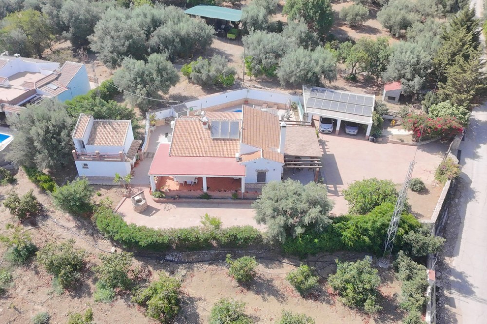 - Discover your own Andalusian paradise in this magnificent estate, a haven of peace and comfort designed to enjoy life to the fullest. Set on a generous 1,574 m2 plot, surrounded by olive trees and nature, this property offers unparalleled privacy and an idyllic lifestyle just minutes from all amenities. The exterior is undoubtedly the star of the show. An impressive covered porch is perfect for family meals, gatherings with friends, or simply relaxing in the shade. This area extends to a welcoming patio. The pool area is a true oasis. With a wall that guarantees privacy, you will find a spectacular deep blue swimming pool and a large sunbathing area with loungers. It is the perfect place to unwind and enjoy the sun all year round. The interior of the main house exudes a cozy rustic charm. The living-dining room, dominated by a warm stone-framed wood-burning fireplace, is the ideal space for winter evenings. The open and functional kitchen maintains the traditional style of the house with its wooden cabinets and is fully equipped. The main house, measuring 128.20 m2, has three spacious bedrooms and two bathrooms, one of which is en suite. As an added bonus, the property also includes a small, completely separate guest room, perfect for accommodating family and friends with their own space and privacy. This property has been updated with high-quality materials and systems with comfort and efficiency in mind: Versatile climate control: Enjoy the perfect temperature all year round thanks to the combination of a wood-burning fireplace and efficient air conditioning units with Inverter technology (cooling/heating) installed in the living room and all three bedrooms. Efficiency and savings: Domestic hot water is generated by a forced solar panel system, supported by a large capacity indoor tank (400lts), which guarantees an abundant, sustainable supply and significant savings on bills. It also has a photovoltaic installation for self-consumption that generates surplus energy, reducing the electricity bill to practically zero. Insulation: All windows are high-end PVC (Eurofutur system) with Climalit double glazing, providing excellent thermal and acoustic insulation, which translates into a more comfortable and quiet home. The Abbreviated Information Document is available upon request. Expenses: Taxes (ITP or VAT+AND) + notary and registration fees. SDM.