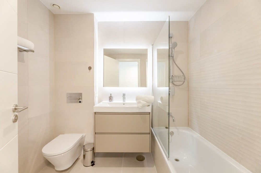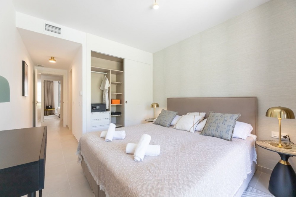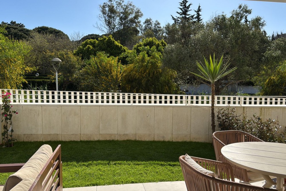 - Apartment by the Beach – Elviria, Marbella Set within the prestigious Estrella del Mar development, located in the peaceful and green surroundings of Elviria, this elegant ground-floor apartment has been thoughtfully designed to offer comfort, privacy, and a harmonious connection with its natural setting. The apartment benefits from a south-east orientation and enjoys views over landscaped gardens and green areas, providing excellent natural light throughout the day and a sense of tranquillity. The interior comprises two bedrooms, two bathrooms, a spacious living room seamlessly connected to the dining area and kitchen, as well as a separate laundry room and an additional storage space. Built in 2023, the property is finished to a modern and timeless standard. It is equipped with underfloor heating and air conditioning, ensuring year-round comfort. The price includes a private parking space in the underground garage and a storage room. A key highlight of this property is its exceptional location—only 200 metres from the wide, sandy Golden Beach, regarded as one of the most attractive beaches in Marbella on the Costa del Sol. Restaurants and a nearby commercial centre with boutiques and local shops are all within easy walking distance.