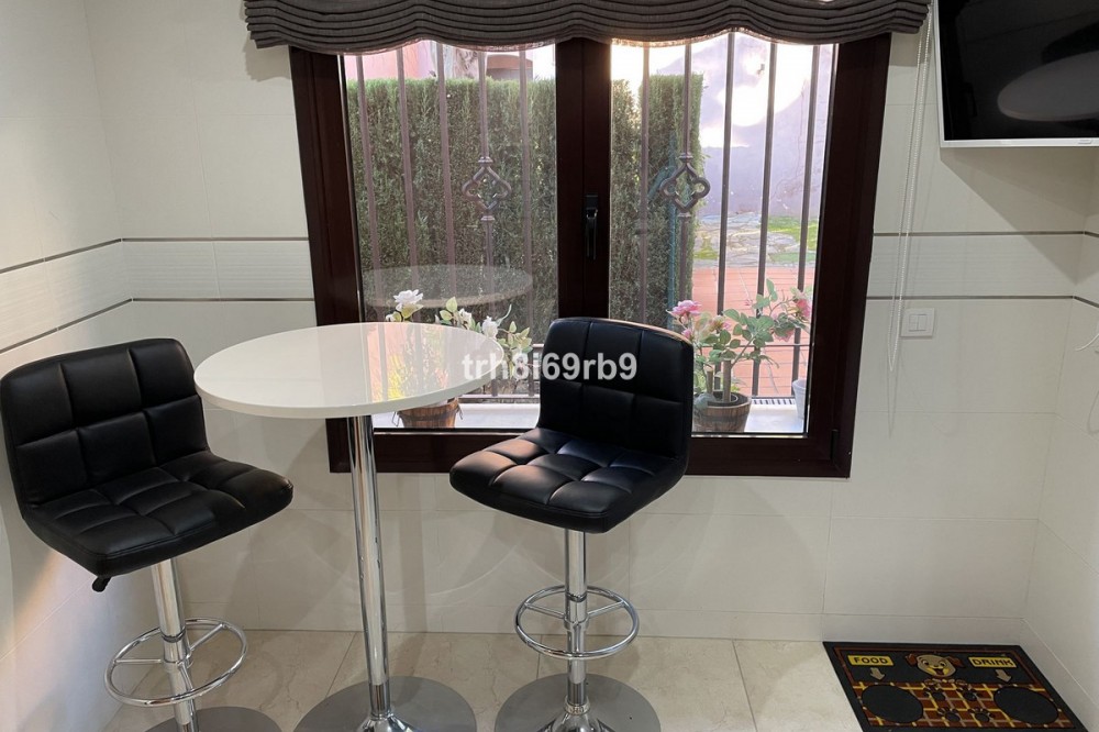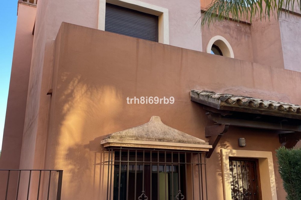 - Charming Semi-Detached Front Line Golf House in Las Villas De Santa Maria, Estepona Discover this spacious 3-bedroom, 2.5-bathroom semi-detached home located in the desirable Las Villas De Santa Maria community on the west side of Estepona, overlooking Azata Golf. Upon entering, you are greeted by a stunning galleried staircase that immediately enhances the sense of space. The ground floor features a modern kitchen, guest WC, a generous lounge/dining area, and a large terrace enclosed with glass curtains—perfect for all-year-round enjoyment. Upstairs, the property comprises three double bedrooms. Two bedrooms are served by a shared shower room with twin sinks and a WC located on the landing. The master suite boasts an open-plan en-suite bathroom with twin sinks, a WC, and a spa bath with shower attachment. Both the master bedroom and one guest bedroom offer direct access to a terrace with breathtaking panoramic views of Azata Golf, the Sierra Bermeja mountains, and the Mediterranean Sea. Additional features include a spacious underground private garage with ample room for large SUVs, extra storage, and direct access to the house. A separate storeroom within the garage houses the hot water tank. The community offers two swimming pools, one conveniently located directly behind the property. Its location provides easy access to the A7 coast road, with Estepona just a 10-minute drive away, as well as nearby golf courses, bars, restaurants, supermarkets, and a hospital. And importantly the resort has 24 hour security/consierge. This rare property presents an exceptional opportunity to own a front-line golf home with sea, golf, and mountain views, three bedrooms, and a private underground garage. Semi-Detached House, Estepona, Costa del Sol. 3 Bedrooms, 2 Bathrooms, Built 183 m², Terrace 14 m². Setting : Urbanisation. Orientation : South East. Condition : Excellent. Pool : Communal. Climate Control : Air Conditioning, U/F/H Bathrooms. Views : Golf. Features : Covered Terrace, Fitted Wardrobes, Private Terrace, Storage Room, Marble Flooring. Furniture : Fully Furnished, Optional. Kitchen : Fully Fitted. Garden : Communal. Security : Gated Complex, Electric Blinds, 24 Hour Security. Parking : Private. Utilities : Electricity, Drinkable Water. Category : Golf, Resale.