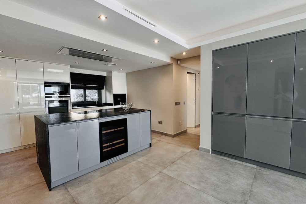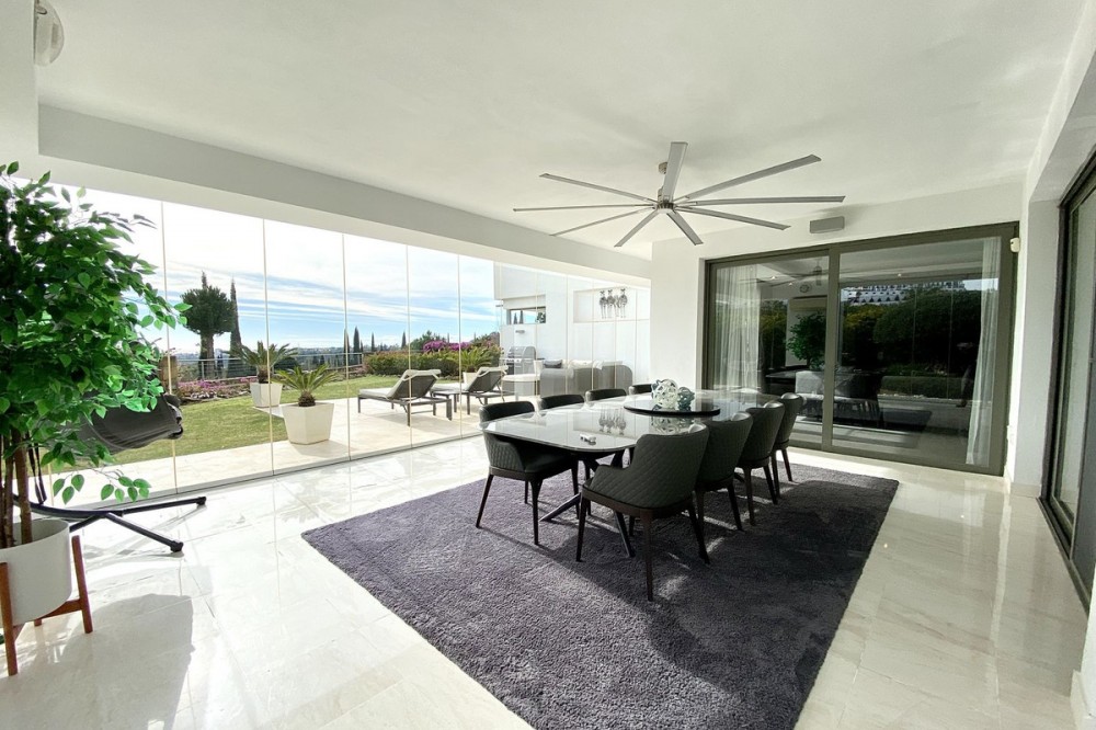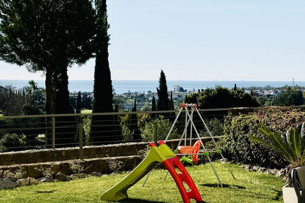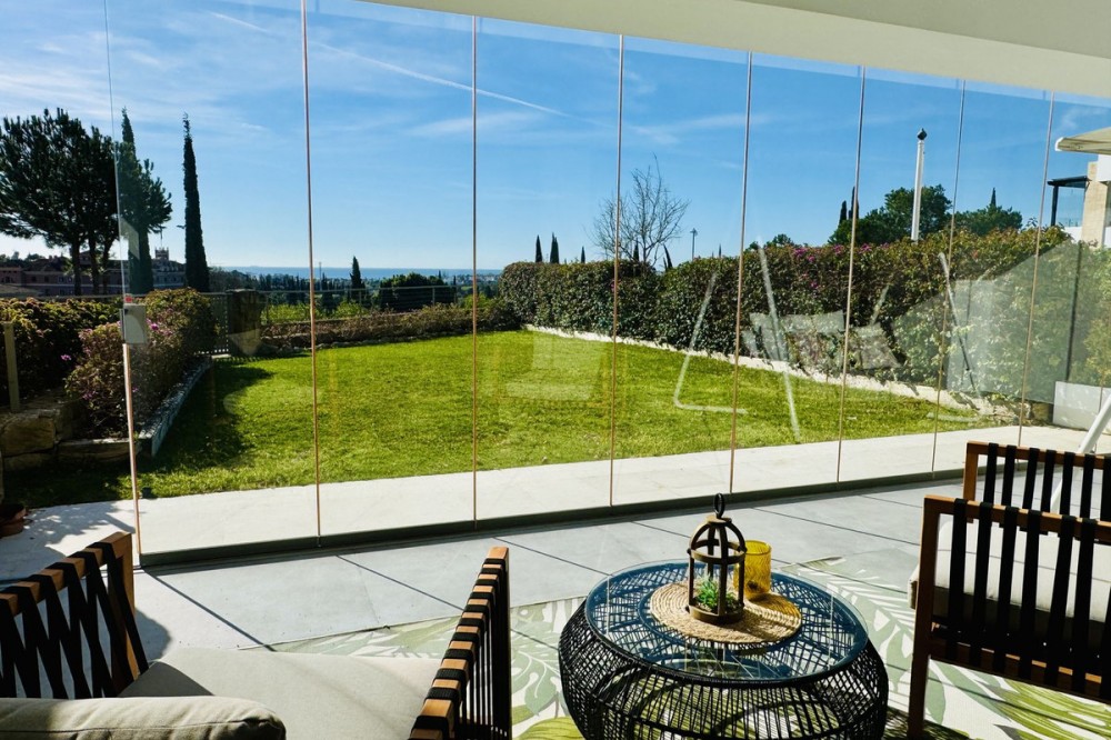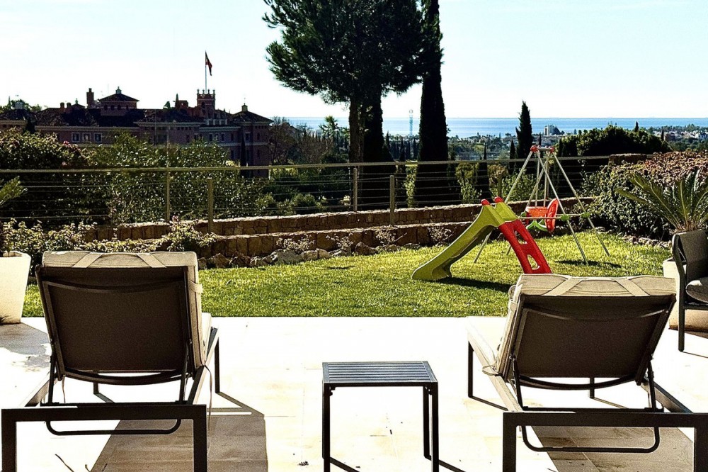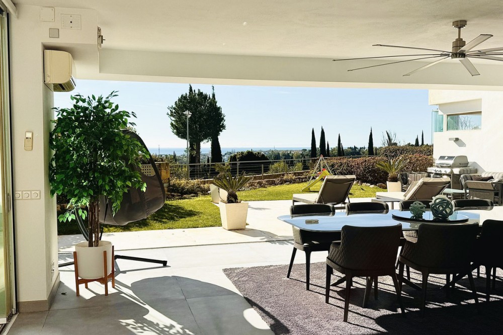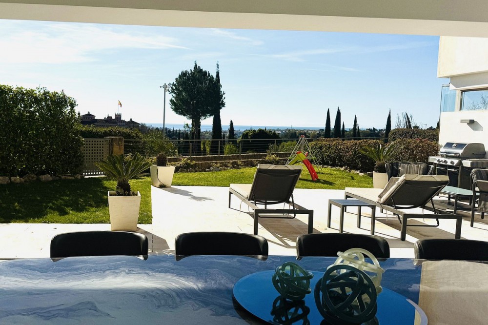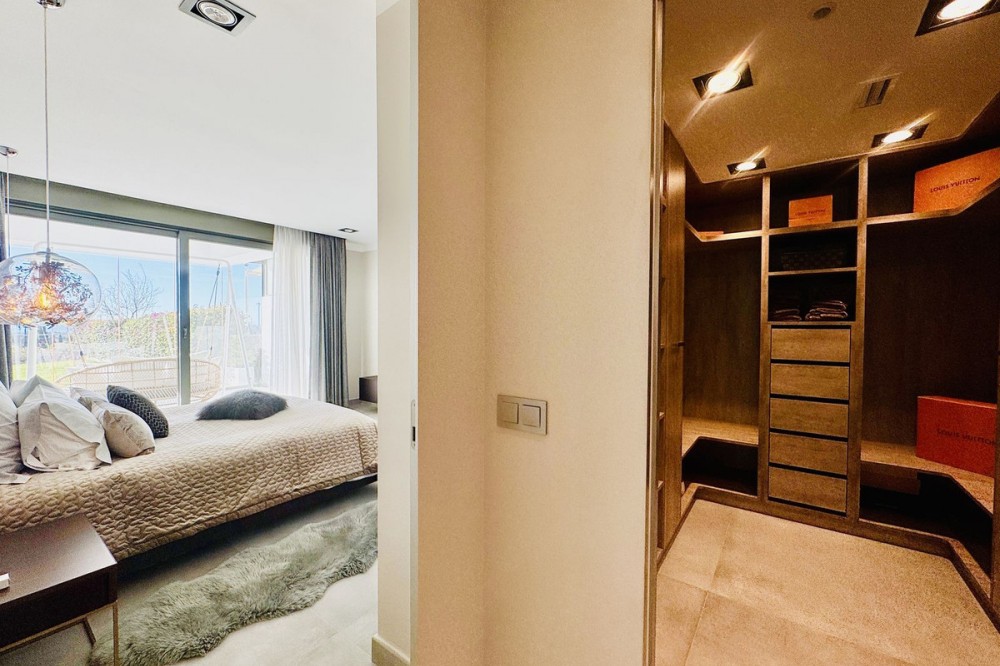 - Probably the most unique and spacious apartment in the whole Los Flamingos! Stunning 4-bedroom apartment nestled in Tee 6, offering breathtaking views of the serene golf course and the sea near Villa Padierna 5-star Hotel. Originally two separate 2-bedroom units were joined together and have undergone a luxurious renovation, elevating tyhe residence to an exceptional standard of living. Spanning over 212m2 of meticulously designed living space, the apartment boasts expansive terraces that provide captivating views of both the surrounding landscape and the golf course,and sea. The outdoor experience is further enhanced by two private, generously sized gardens adorned with olive and lemon trees. What sets this property apart is not only its remarkable aesthetics but also the practicality it offers. Included in the price are four convenient garage spaces, Additionally, two storage rooms provide extra space for belongings, while two buggy spaces cater to those who enjoy the convenience of golfing at their leisure. This residence is a true masterpiece, and the allure doesn't stop there. The property is being sold fully furnished with exquisite Italian furniture, all of which is brand new. Every detail has been carefully curated to harmonize with the sophisticated ambiance of the apartment, making it an enticing turnkey opportunity for those seeking a blend of luxury, comfort, and a seamless lifestyle. Don't miss the chance to make this remarkable property your new home.