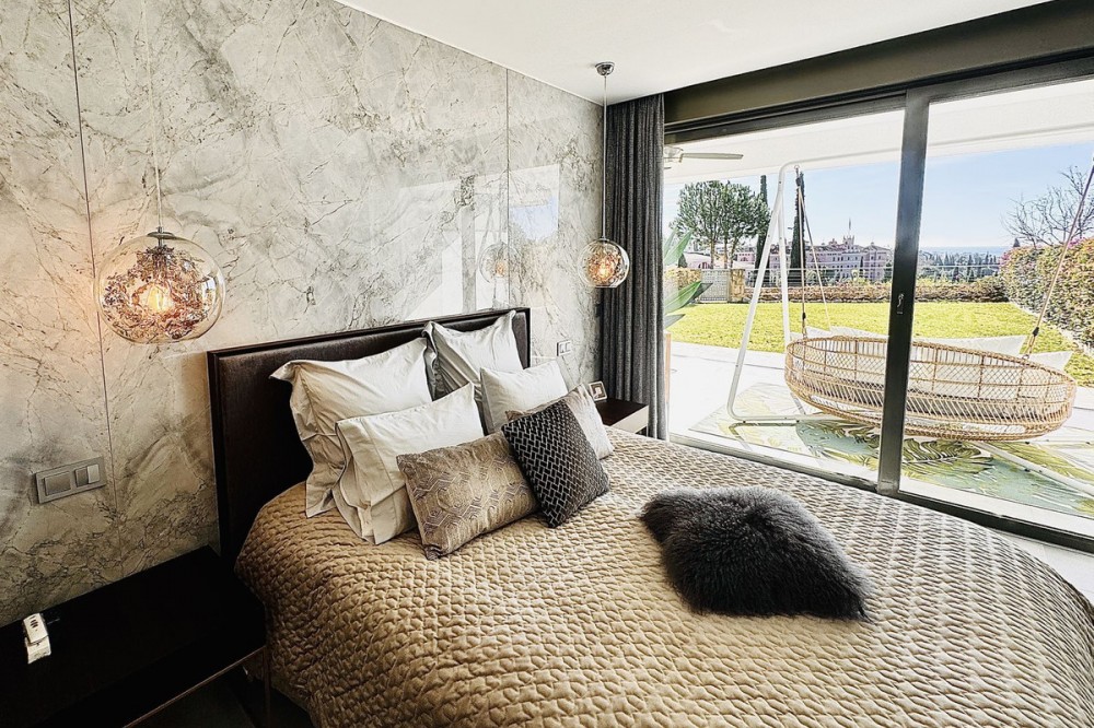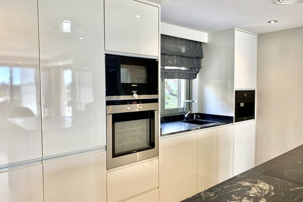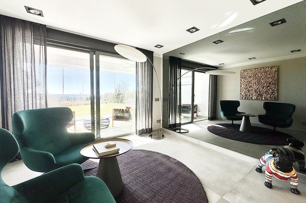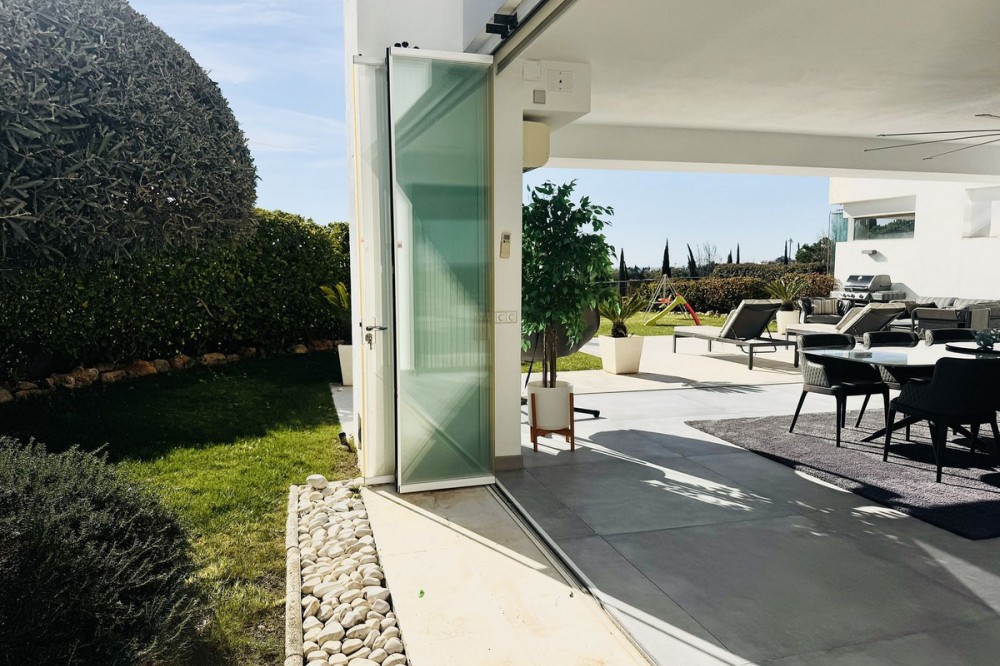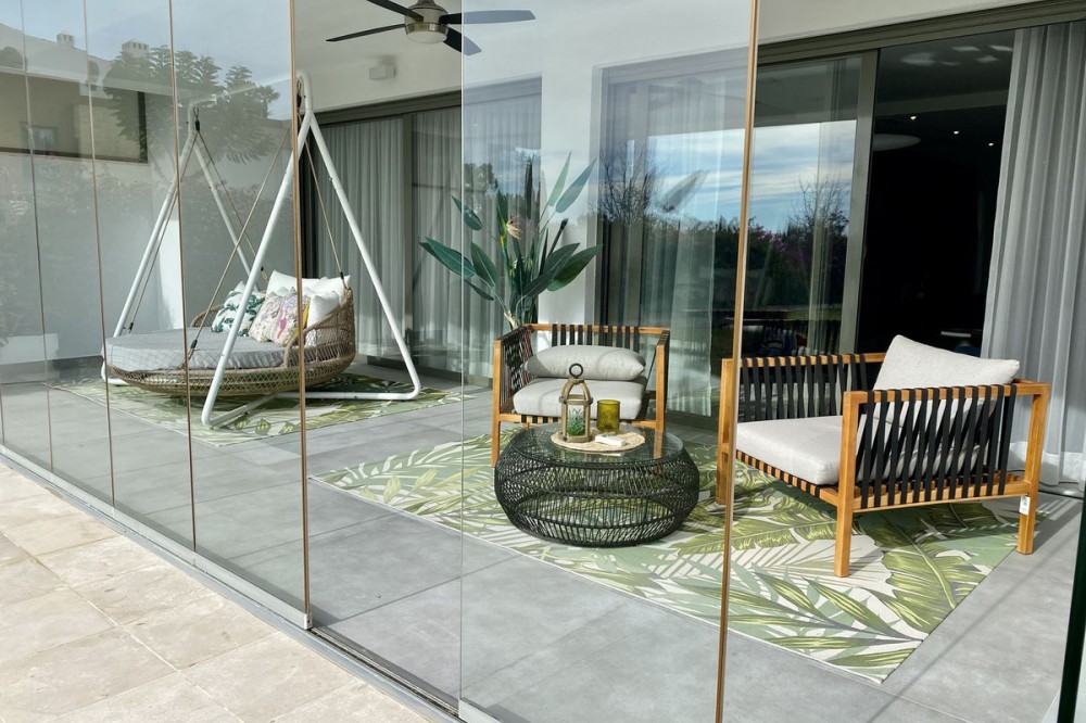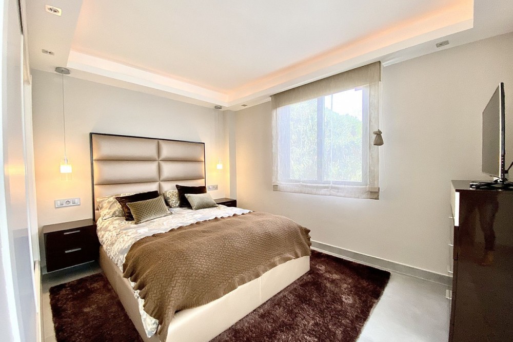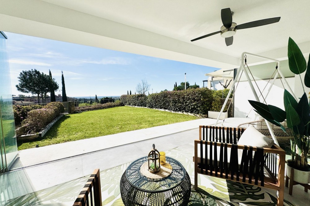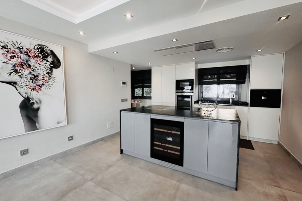 - Probably the most unique and spacious apartment in the whole Los Flamingos! Stunning 4-bedroom apartment nestled in Tee 6, offering breathtaking views of the serene golf course and the sea near Villa Padierna 5-star Hotel. Originally two separate 2-bedroom units were joined together and have undergone a luxurious renovation, elevating tyhe residence to an exceptional standard of living. Spanning over 212m2 of meticulously designed living space, the apartment boasts expansive terraces that provide captivating views of both the surrounding landscape and the golf course,and sea. The outdoor experience is further enhanced by two private, generously sized gardens adorned with olive and lemon trees. What sets this property apart is not only its remarkable aesthetics but also the practicality it offers. Included in the price are four convenient garage spaces, Additionally, two storage rooms provide extra space for belongings, while two buggy spaces cater to those who enjoy the convenience of golfing at their leisure. This residence is a true masterpiece, and the allure doesn't stop there. The property is being sold fully furnished with exquisite Italian furniture, all of which is brand new. Every detail has been carefully curated to harmonize with the sophisticated ambiance of the apartment, making it an enticing turnkey opportunity for those seeking a blend of luxury, comfort, and a seamless lifestyle. Don't miss the chance to make this remarkable property your new home.