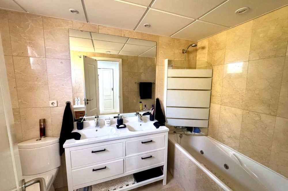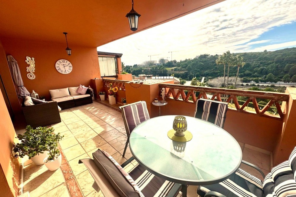 - Discover your perfect slice of Costa del Sol life in Las Viñas del Golf, Casares Costa — a warm, inviting 2-bedroom, 2-bathroom apartment lovingly maintained by its current owner. Bathed in sunshine thanks to its south and west orientation, the home opens onto a covered private terrace that feels like a natural extension of the living space — ideal for morning coffee, relaxed lunches, or long evenings enjoying gentle Mediterranean breezes. Inside, the layout flows with ease and comfort, with well-separated bedrooms that make it perfect for hosting guests while retaining privacy. Set within a peaceful, well-maintained community with landscaped gardens, the apartment enjoys garden, pool, and mountain views. For padel enthusiasts, a newly refurbished padel court sits within the community. All of this is just a short drive from the beach, local golf courses, and the coastal towns of San Luis de Sabinillas and Estepona, as well as the charming marina of La Duquesa. This is more than an apartment — it’s a welcoming retreat in the sunshine.