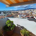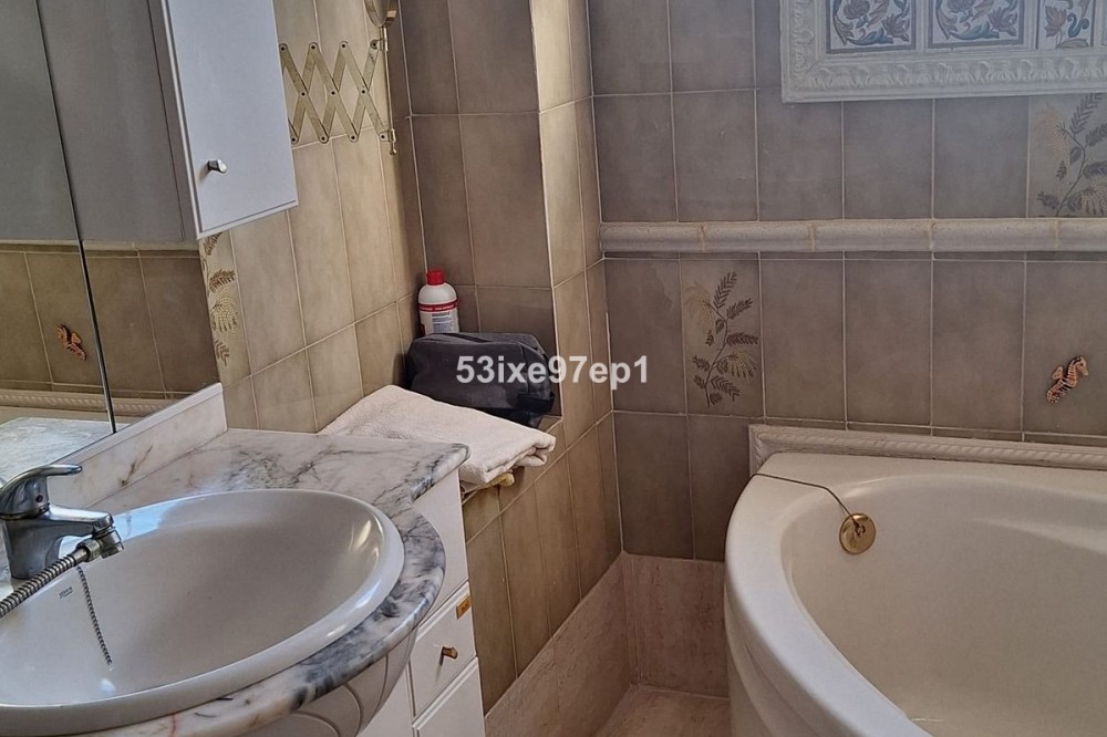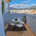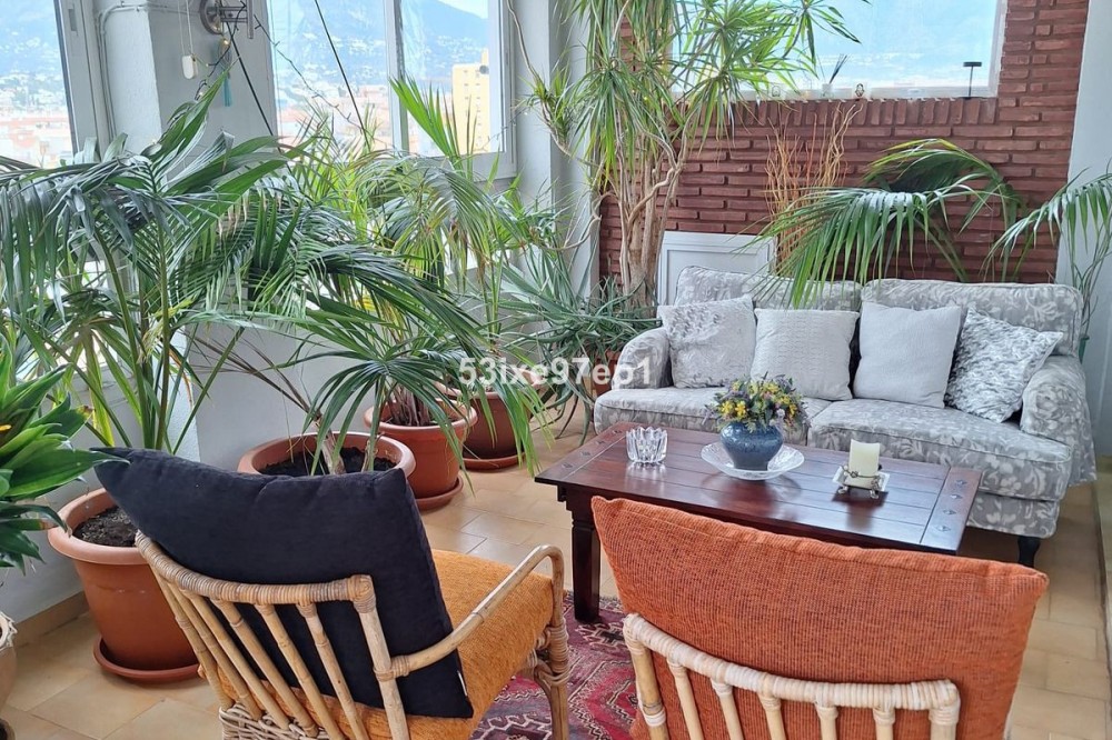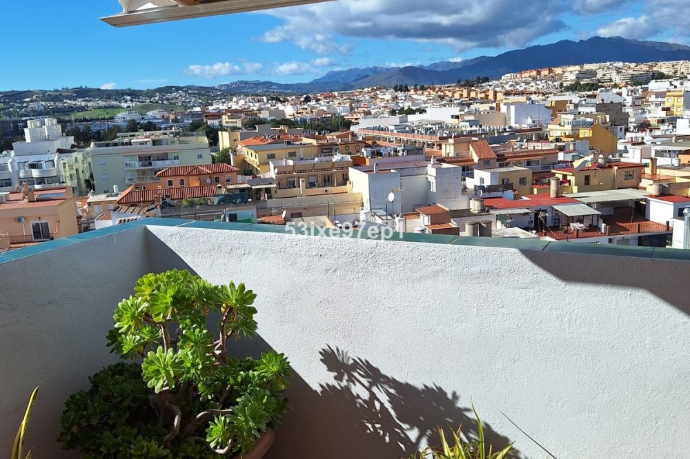 - Welcome to this fantastic and bright flagship apartment with views high above all of Fuengirola! We first enter a spacious hall and directly to the right is the kitchen with a separate area for a washing machine and extra storage. From the hall we then enter the living room with access to a terrace where you can look out over the roof ridges of Fuengirola down to the sea. Next to the living room is a spacious dining area with space for a large dining table and several chairs and an open fireplace. From the dining area we can go to another smaller living room that is glazed in. Then we come out onto the large terrace which, in addition to fantastic views of the mountains, also offers plenty of space for a seating area and lots of pots with greenery. From the hall we can also go to the left and there we find the three bedrooms, one of which has an ensuite bathroom. Two of the bedrooms have their own small terraces. Out on the terrace there is a staircase up to the roof where there is a small house that can be used as a music room, library or why not a youth room? There is also space for sun loungers here. There are also solar panels installed on the roof that heat the water in the apartment. The apartment has a private parking space in the garage. The elevator goes directly from the apartment on the 7th floor down to the garage. The property is very well maintained and the entire house has recently been repainted. It is located in a very nice Spanish neighborhood with smaller shops for meat, bread, tobacco, etc. Within a few blocks there are also a couple of larger grocery stores. It is walking distance down to the beach and the train station, which you can reach in 10-15 minutes.