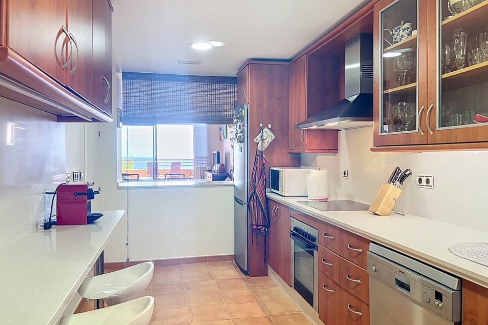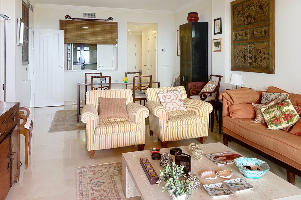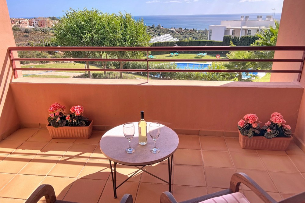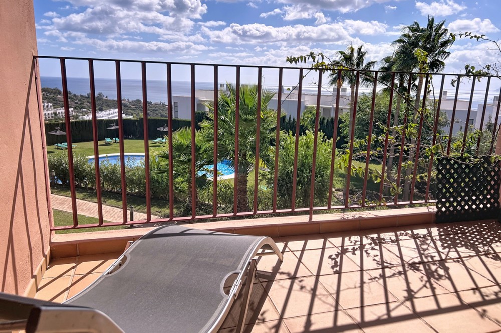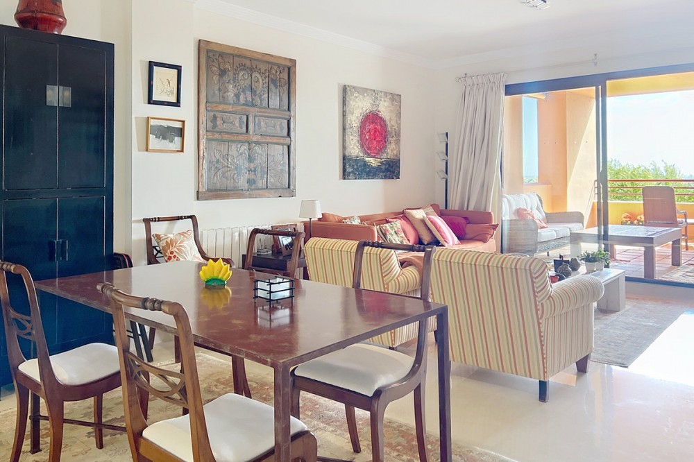 - Live in the sunshine all year round in this beautiful apartment featuring a spectacular 40 m² terrace with breathtaking views over the sea, landscaped gardens and the communal swimming pool. The property offers bright and spacious accommodation, comprising 2 bedrooms, 2 bathrooms, and a fully fitted open-plan kitchen seamlessly connected to the living and dining area—ideal for both everyday living and entertaining. Sold unfurnished, the apartment also benefits from a large storage room and a private underground garage space. Set within a private, secure and immaculately maintained residential complex, residents enjoy access to a superb communal swimming pool surrounded by Mediterranean gardens, creating a peaceful and exclusive environment. Ideally located in Bahía de las Rocas (Manilva), just 2 minutes from Sotogrande Marina, this sought-after area offers tranquillity while remaining close to all amenities. The Mediterranean Sea and Gibraltar provide a truly impressive backdrop. Viewings are now underway – a rare opportunity not to be missed. An exceptional property combining comfort, stunning views and exclusivity.