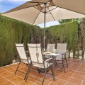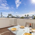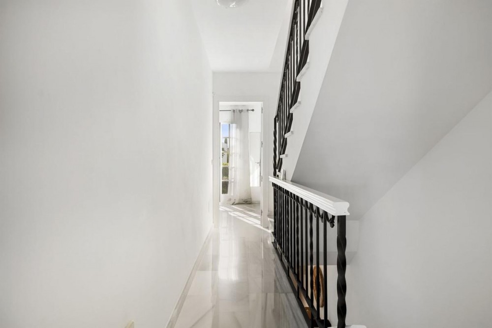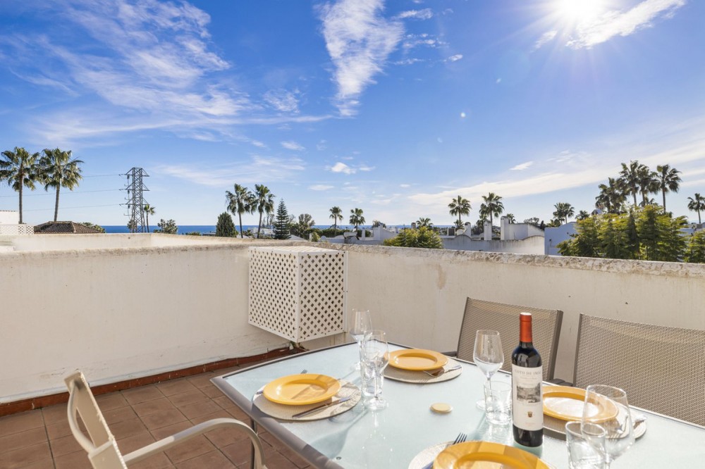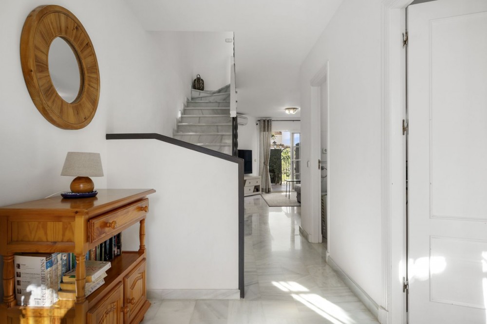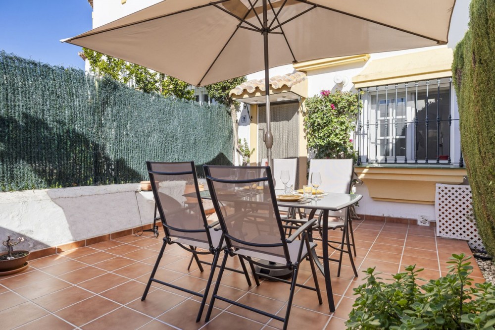 - Charming Townhouse with Sea Views in a Popular Urbanisation in Bel Air This attractive townhouse is located in a highly sought-after urbanisation, ideally positioned close to the sea and all local amenities. Offering approximately 107 m² of built space, the property combines comfort, functionality, and excellent outdoor living areas. The home features two spacious bedrooms and two bathrooms, making it ideal as a permanent residence, holiday home, or investment property. A bright and well-proportioned living area opens onto both front and rear terraces, allowing you to enjoy morning sun at the back and afternoon and evening sun at the front. One of the standout features is the private rooftop terrace, complete with a built in barbecue area and offering panoramic views, including sea views—perfect for entertaining, relaxing, or enjoying sunsets. The property is set within a well-maintained community with beautifully kept gardens, providing a pleasant and tranquil environment while remaining close to beaches, shops, restaurants, and other amenities. An excellent opportunity to acquire a versatile townhouse in a prime coastal location.