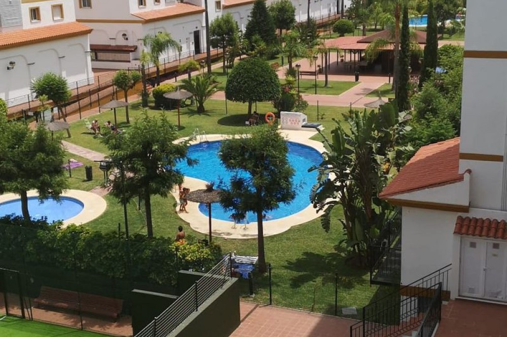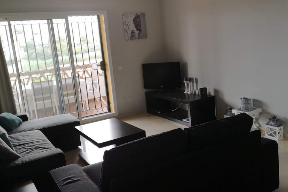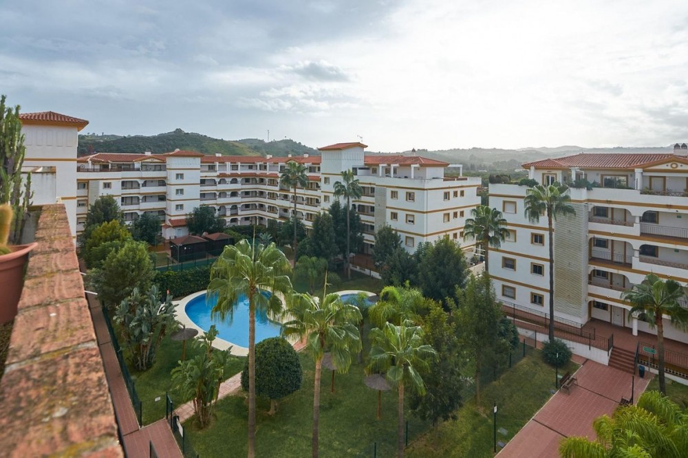 - Apartment in Mijas Golf in top-condition with panoramic views! The 3rd floor apartment in located in the well known complex of Hacienda Mijas Golf, Fase II. Devided in spacious salon outgoing to the south-west facing terrace with lovely views to the surroundings. Fully fitted and equipped kitchen, 2 bedrooms and 2 bathrooms, one en-suite to the master bedroom. Gated community with 24-hours security service, large community gardens with 2 swimming pools and children's pool. Paddle court as well. Features: creme marble floors, double glazing, entry phone, sun blinds, fitted kitchen, underground parking space, storage room, security entrance door, terrace, aircondition hot/cold. Quiet area, but close to all amenities, only few minutes drive to the center of Fuengirola and the beaches. 15 minutes drive to the airport of Malaga. Close to several golf courses. Spanish banks are offering up to 70% mortgage on purchase price if required.