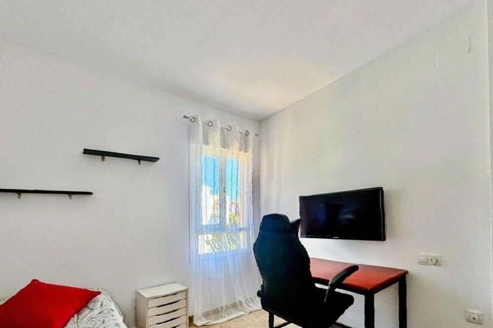 - Fantastic opportunity!! Modern, bright apartment on the beautifully maintained Refugio de Riviera community located within easy walking distance of local bars, restaurants, shops, public transport, and the beach!! The apartment comprises a hallway, lounge, modern fully fitted kitchen, 3 double bedrooms, bathroom, and good sized terrace with glass curtains, allowing for use of this space in all weathers, overlooking the pool and gardens. In addition, hot and cold air conditioning and fully furnished! Ready to move in!! The lift takes you down to the storage room, where there are additional assigned underground parking spaces available for purchase The community is immaculately maintained, with large lawns and sunbathing areas around the large swimming pool and children's pool, and has a gated driveway leading to an open communal car park. Perfectly spacious enough for all year-round living and ideal for holidays! First to see will buy!! This community does not permit short-term rentals. Indoor built area: 85m². Terrace: 6m². Parking space: Gated communal parking. Storage room: 5m². Total: 96m². Community fees: €81 per month. IBI fees: €370 per year.