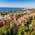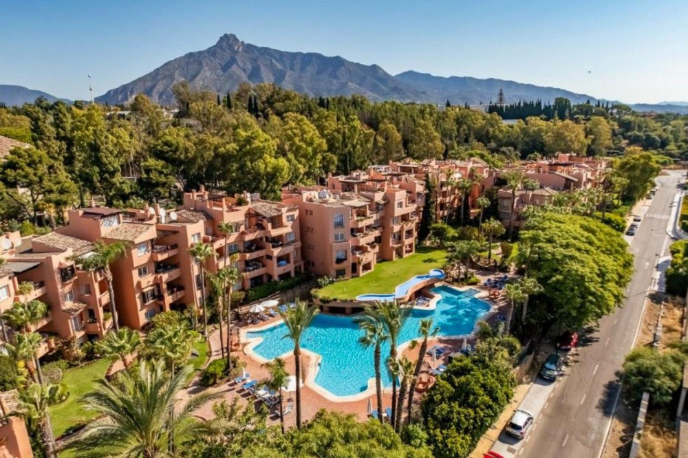 - Located in the prestigious Golden Mile of Marbella, this beautifully presented two-bedroom, two-bathroom apartment offers a luxurious lifestyle in one of the Costa del Sol’s most sought-after locations. Set within a secure gated urbanisation with 24-hour security, the property is just a short stroll from the beach and moments from the centres of Marbella and Puerto Banús, as well as top-rated restaurants, international schools, and all essential amenities. Built in 2001, the apartment offers a generous 124 m² of built space and benefits from a south-east orientation with good sea views. The spacious living and dining area opens directly onto the terrace, which is also accessible from the master bedroom. Accommodation comprises two double bedrooms with fitted wardrobes and two bathrooms, including an en-suite to the master bedroom. Finishes include marble flooring throughout, air conditioning, and a fully fitted kitchen. The property is sold with underground parking and a private storeroom. The apartment is set within immaculate communal gardens and residents enjoy access to a large swimming pool, gymnasium, sauna, and jacuzzi.