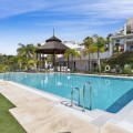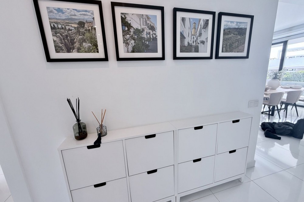 • Luxury Front-Golf Garden 3 bed Apartment | Benahavís Exclusive south-facing ground floor apartment with villa allure, located on Atalaya Golf (36 holes). Spacious terrace and garden with open views of the golf course and the sea; the driving range is right on the doorstep in a quiet, green area. Situated in the secure and prestigious urbanization La Alquería/ Benahavís, at the end of a cul-de-sac. Prime location: 6 minutes from Puerto Banús, 10 minutes from Marbella, 12 minutes from Estepona, close to shops and international school. Bright living areas with high ceilings, large sliding windows, master bedroom with dressing room and luxurious Porcelanosa bathroom, guest bedrooms with garden views. High-quality finishes with Porcelanosa floors, Daikin Airzone air conditioning, alarm system. Atalaya Hills offers landscaped gardens, a swimming pool with chiringuito, lounge, fitness room and luxury spa. Includes underground parking space, storage room and fully furnished. A unique combination of luxury, tranquility and a prime location on the golf course.