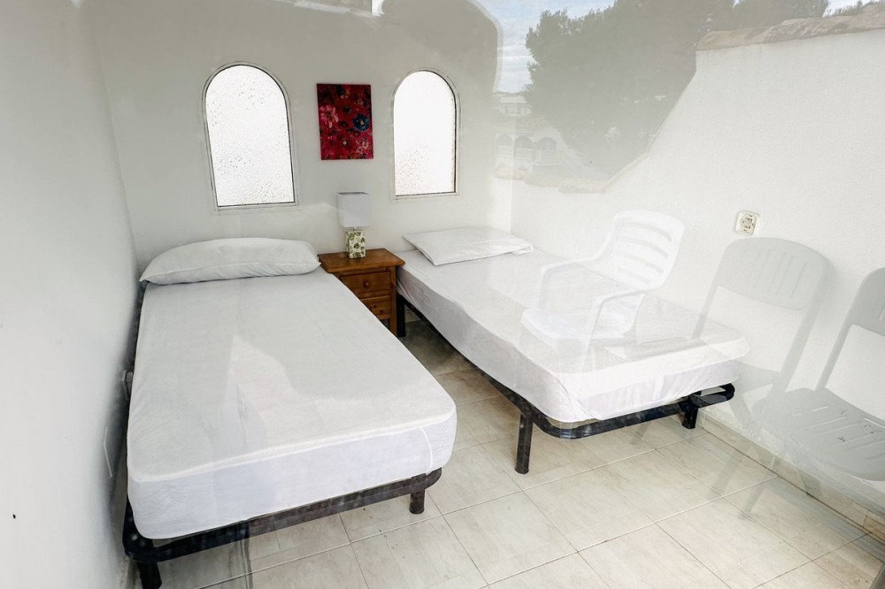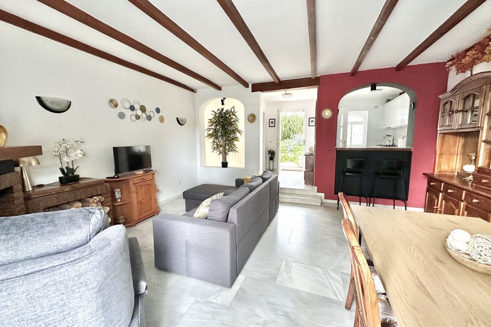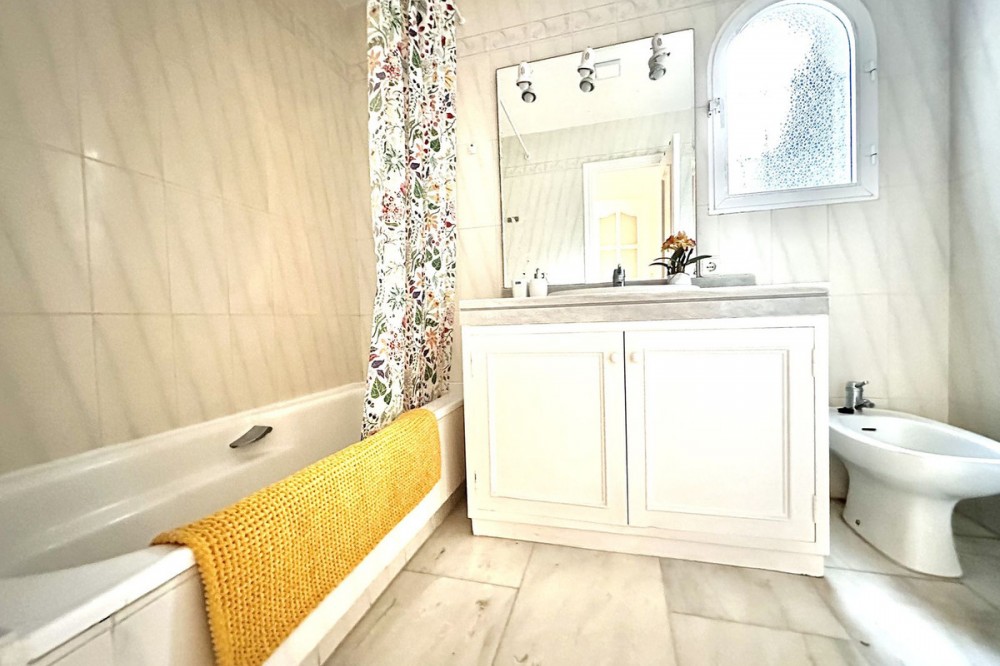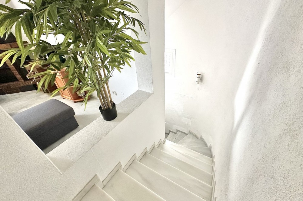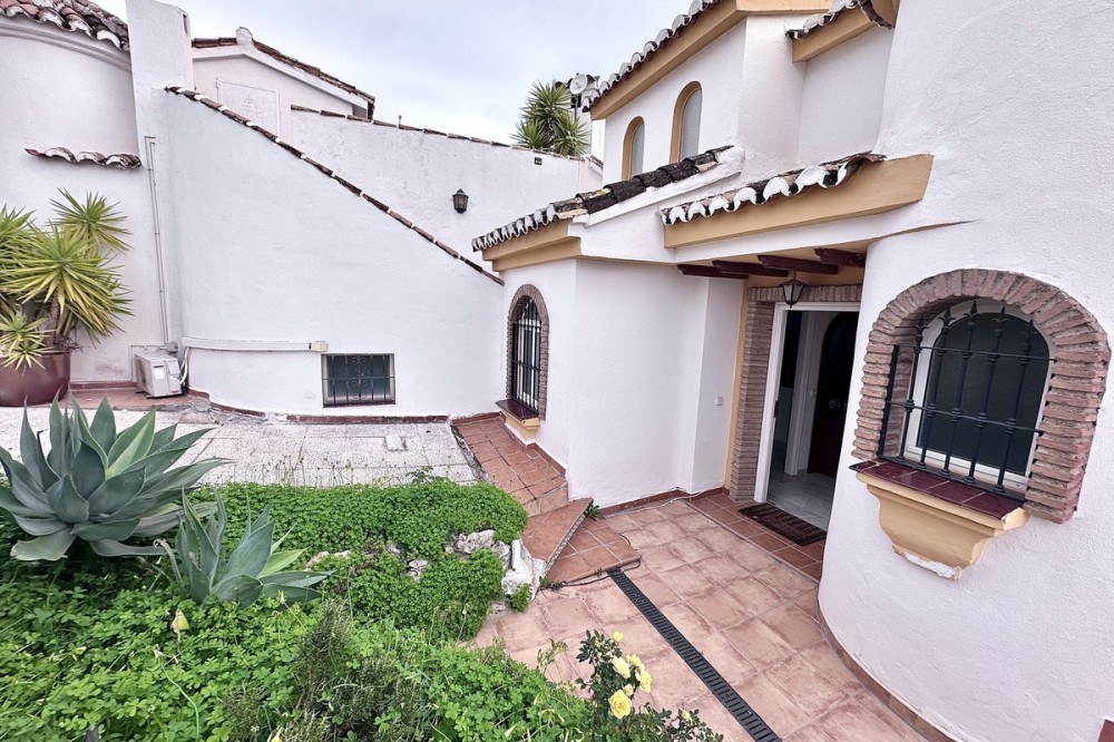 - This elegant three-story townhouse offers a perfect combination of light, space, and sea views from all its floors, located in a very quiet urbanization, on a dead-end street that guarantees privacy and silence. The house has its entrance on the first floor, where the living area is located. Here we find a functional kitchen, a guest toilet, and a spacious living-dining room with access to several terraces from which pleasant sea views can be enjoyed. An ideal space for living and sharing, with a south-facing orientation that ensures luminosity throughout the day. From the terrace on this floor, there is access to a private solarium, which is one of the main attractions of the property. This space has a storage room and an additional room that can be used as a bedroom, office, leisure room, or guest area, offering multiple possibilities according to the needs of the new owner. The ground floor houses the sleeping area, consisting of three bedrooms and two bathrooms, one of them en-suite in the master bedroom. Both the master bedroom and one of the secondary bedrooms have direct access to a private garden of approximately 50 m², an intimate and pleasant space that connects directly to the community pool, ideal for enjoying the climate and outdoor living. The property has private parking right at the door, providing everyday convenience. Although it is a townhouse, the adjacent properties are built in a staggered manner, which means that very little wall is shared with neighbors, providing a greater sense of independence. With a south-facing orientation, north access, and open views to the east and south, this property enjoys excellent cross-ventilation and natural light throughout the day. A home designed for those seeking tranquility, sea views, and outdoor spaces, perfect both as a permanent residence and as a second home on the Costa del Sol. The offer is subject to errors, price changes, omissions, availability, and/or withdrawal from the market without prior notice. In compliance with Decree 218-2005 of the Junta de Andalucía of October 11, clients are informed that notary, registry, and I. T. P. expenses are not included in the price.