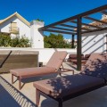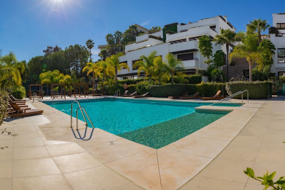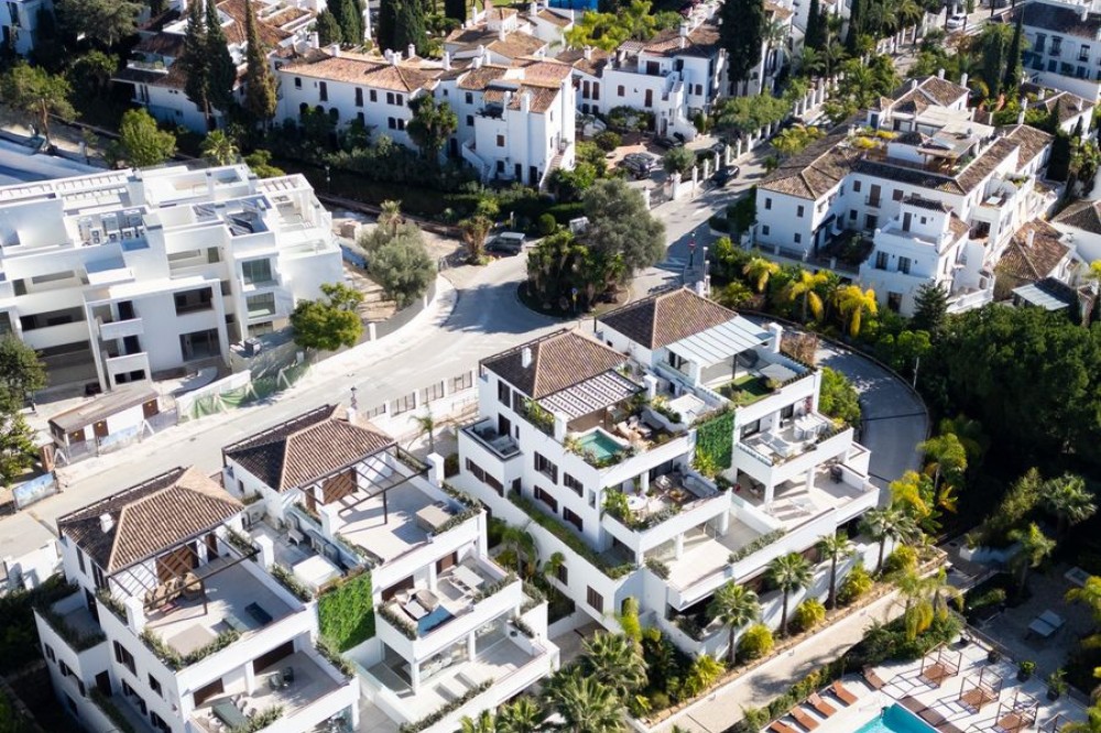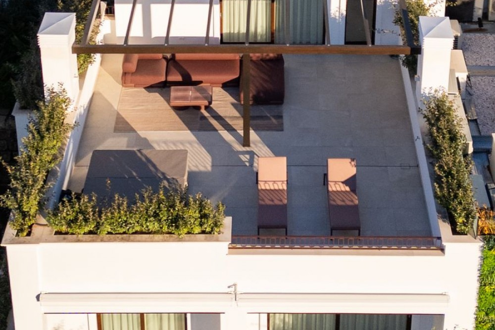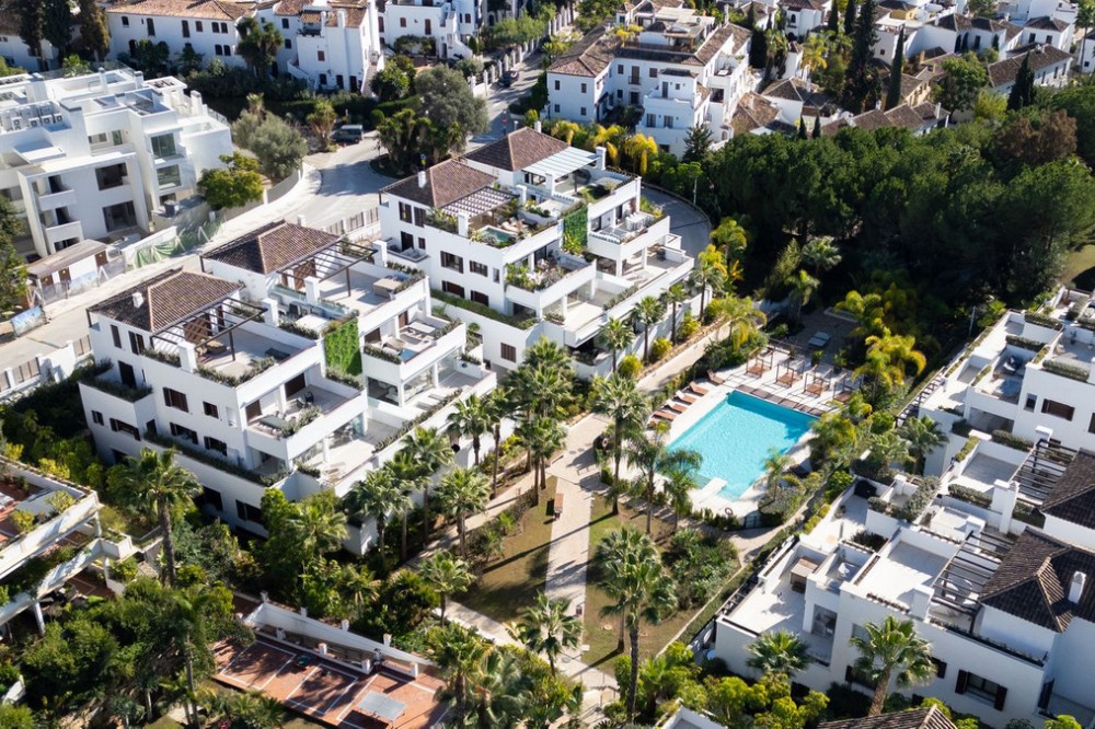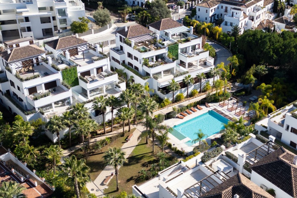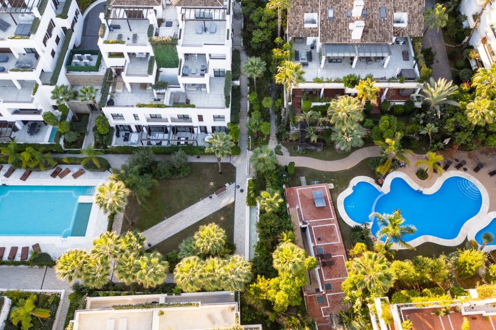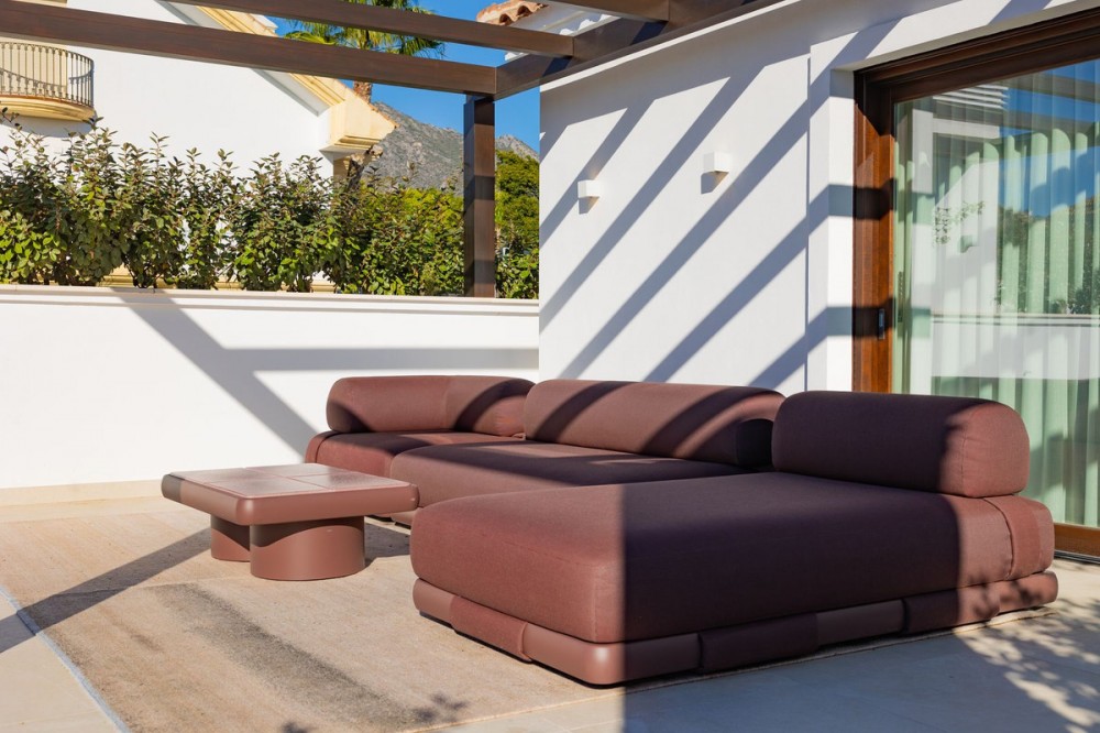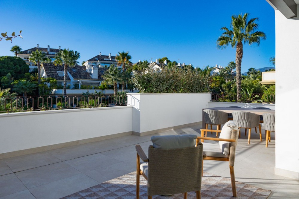 - This exquisite duplex penthouse is situated in Lomas del Rey, within the prestigious Marbella Golden Mile, offering an outstanding combination of comfort and sophistication. The property enjoys a prime location close to amenities, transport links, renowned schools, and the beach, making it both a tranquil retreat and a practical base for modern living. Spanning a total built area of 363.5m², with 206.22m² of refined interior space and an extensive 157.3m² terrace, this luxury residence is presented as a sole agency listing and is brand new, having never been occupied. The penthouse comprises three spacious bedrooms and three en-suite bathrooms, alongside an additional guest toilet, all finished to the highest standards. Elegant features such as marble and parquet floors, underfloor heating throughout (including bathrooms), and an advanced smart home system create a seamless blend of style and convenience. The property is fully equipped with individual air conditioning units, double glazing, security shutters, an alarm system, and video entrance, ensuring year-round comfort and peace of mind. The open-plan kitchen, designed with an expansive marble island, is fitted with top-of-the-line appliances, and the living and dining areas are effortlessly connected for optimal entertaining. Select furnishings from Minotti and other leading Italian brands are optionally available, adding a touch of international elegance. This residence offers a wealth of communal amenities, including beautifully maintained gardens, a heated swimming pool, SPA, and 24-hour security with surveillance cameras, doorman, and gated access. A lift, secure underground garage, and storage room further enhance convenience. The property’s expansive private, covered, and uncovered terraces provide spectacular views of the sea, mountains, gardens, and pool, while features such as a jacuzzi, solarium, barbecue, and utility and laundry rooms cater to every aspect of a luxurious lifestyle. Pets are allowed, and the development is child-friendly, with proximity to playgrounds and communal spaces. This penthouse represents an exceptional opportunity for discerning buyers, as it qualifies for a significantly reduced purchase tax (7% vs. 11.2% for new developments), while remaining completely untouched and never before rented. Finished in excellent condition and fully furnished, it perfectly encapsulates the Marbella Golden Mile’s unique blend of exclusivity, convenience, and breathtaking natural beauty.