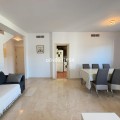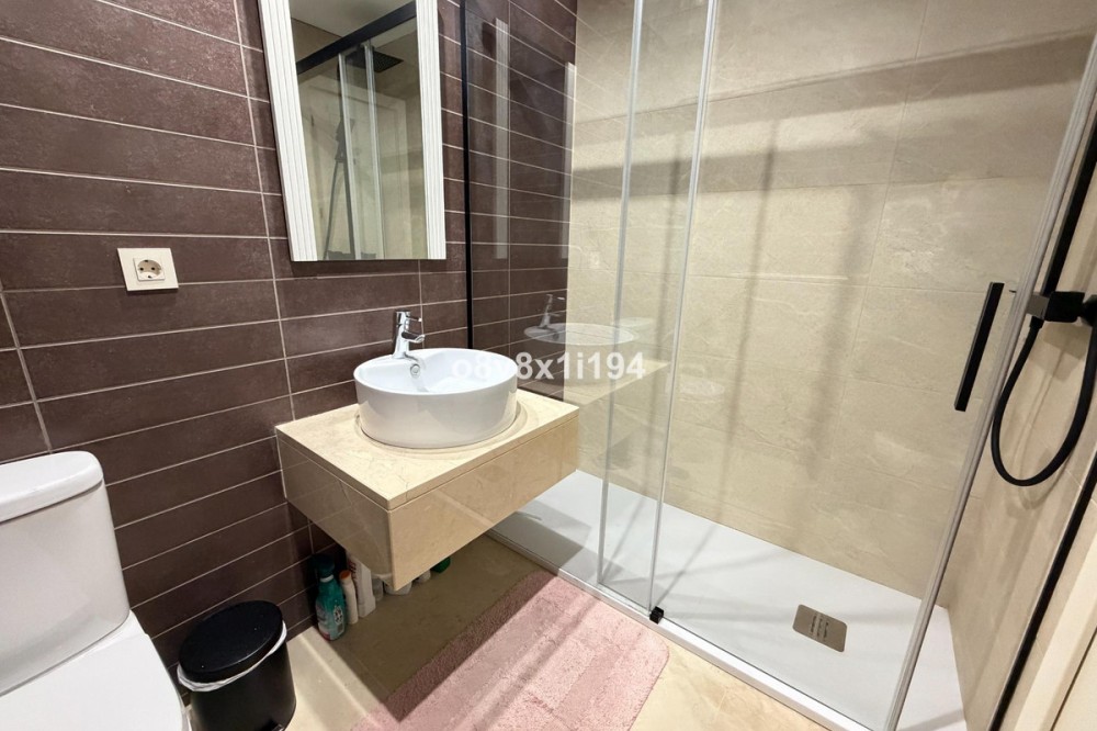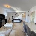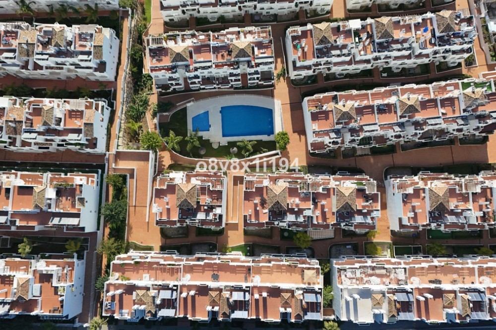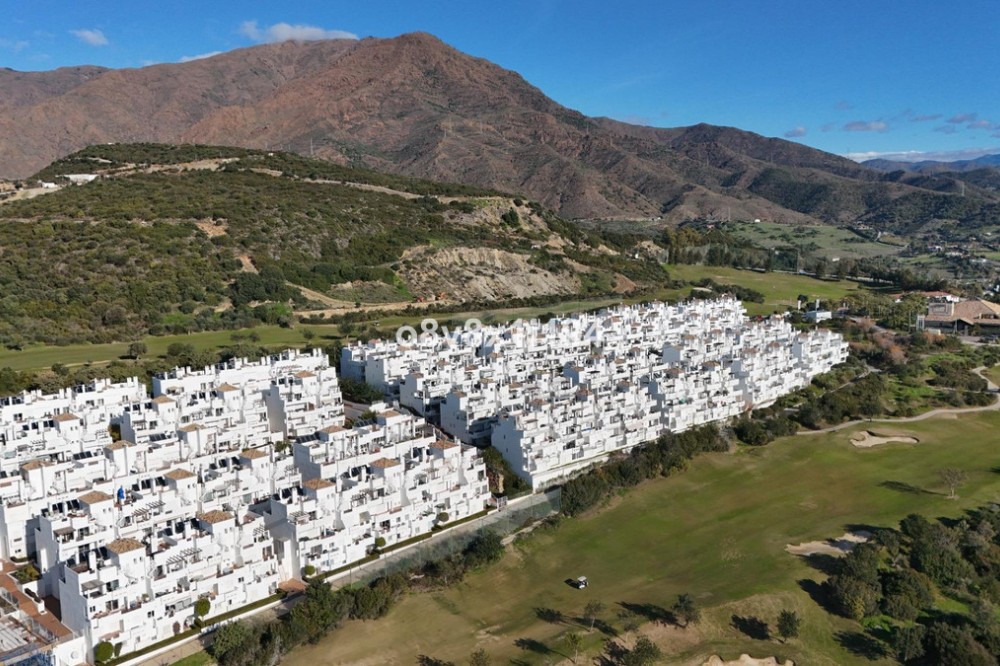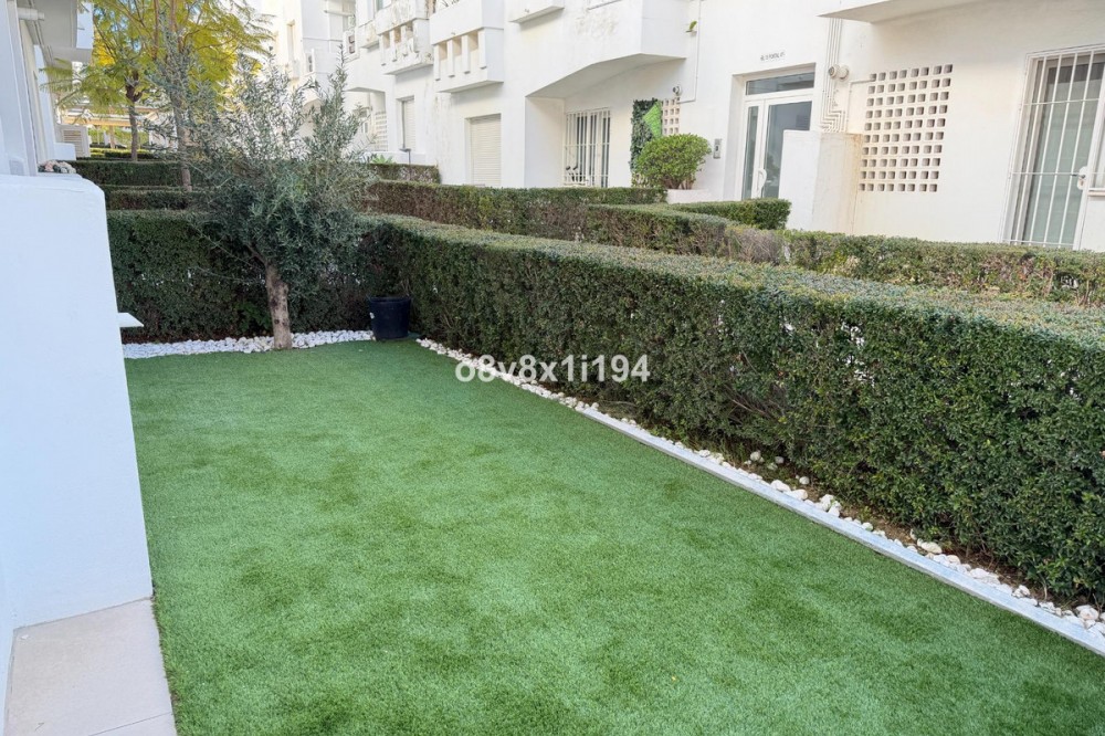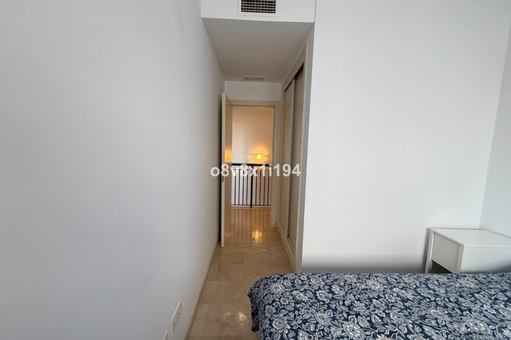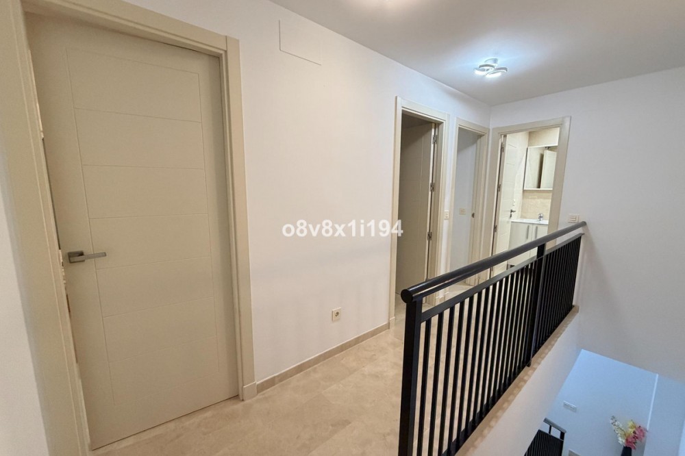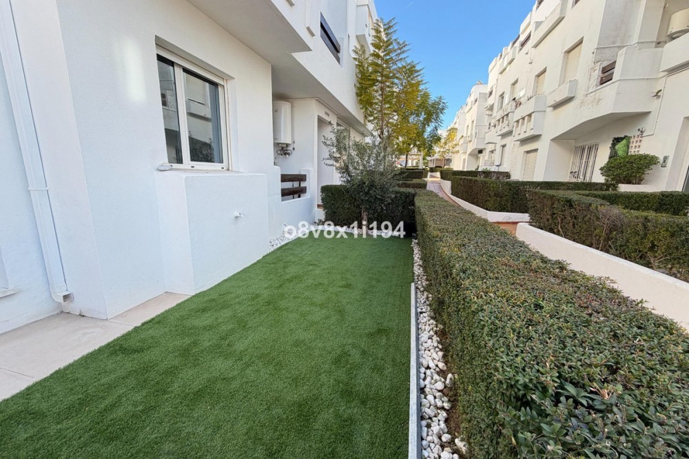 - In the Villa Borghese urbanisation, part of the Valle Romano Golf Resort, this magnificent duplex apartment is offered in perfect condition. The property is located in a quiet, green setting and offers an ideal combination of comfort, space and an excellent location. The apartment features three spacious bedrooms with built-in wardrobes, one of which enjoys sea views. On the upper floor there are two renovated bathrooms; on the ground floor there is an additional guest toilet. The property is finished with elegant polished marble floors and benefits from an abundance of natural light. The very spacious living and dining area connects to a separate, fully equipped kitchen with an additional terrace, where the hot water boiler has been discreetly installed. A practical storage room in the entrance hall completes the functional comfort. Adjacent to the living room there is a south-facing private garden, where you can fully enjoy barbecues, pleasant summer evenings and the wonderful Mediterranean outdoor lifestyle. The complete air-conditioning installation (split system for both the ground floor and the upper floor) was renewed in November 2025; all invoices and documentation are available. In addition, the apartment has recently been completely repainted and both the marble floors and the bathrooms have been renovated. An underground parking space, ideally located next to the entrance hall of the garage, is included in the price. The residence features a communal swimming pool, is surrounded by beautifully landscaped walking paths and offers an underground garage. Thanks to its quiet location outside the centre of Estepona, yet only a five-minute drive from supermarkets, restaurants and shops, this property is a perfect base for both permanent living and a holiday home. A unique opportunity for those seeking space, quality and an exceptional location by the golf course.
