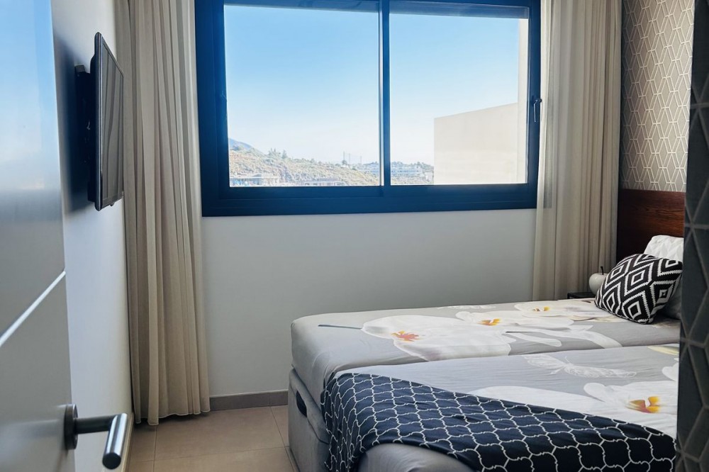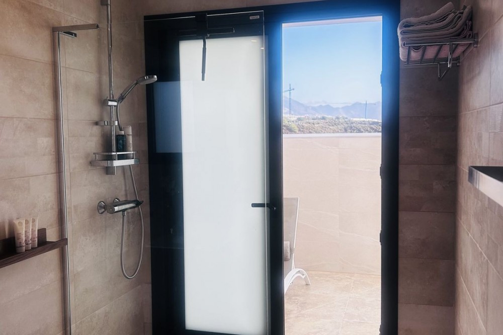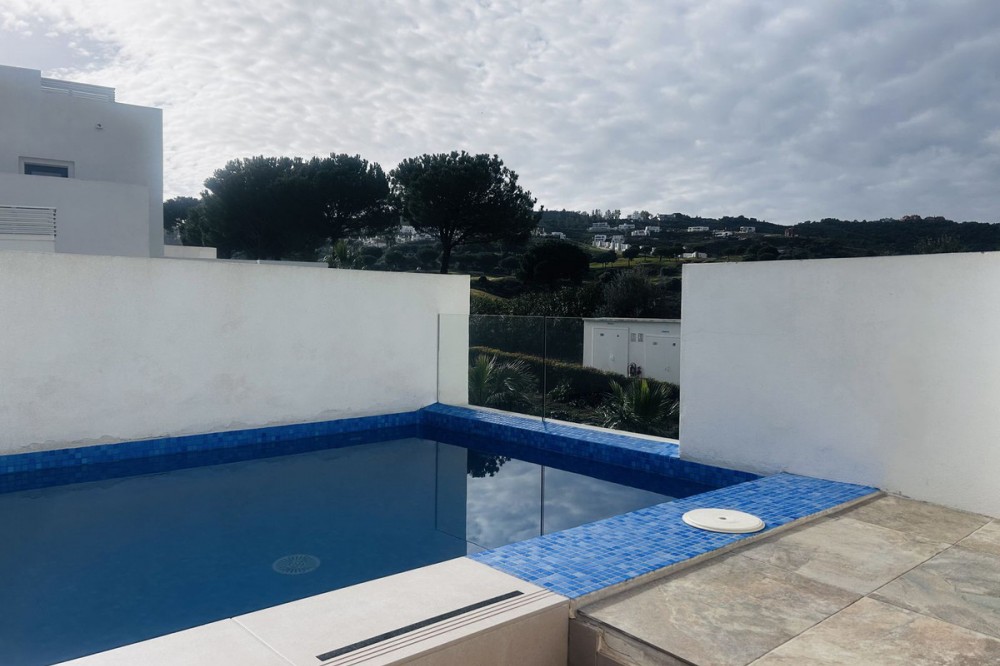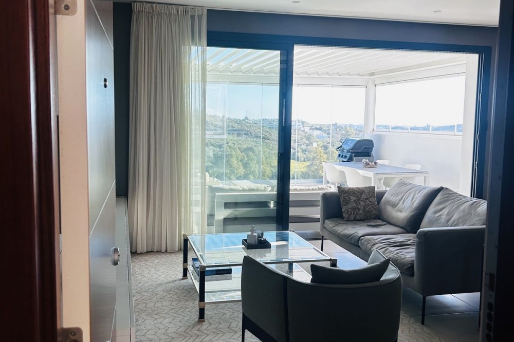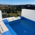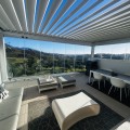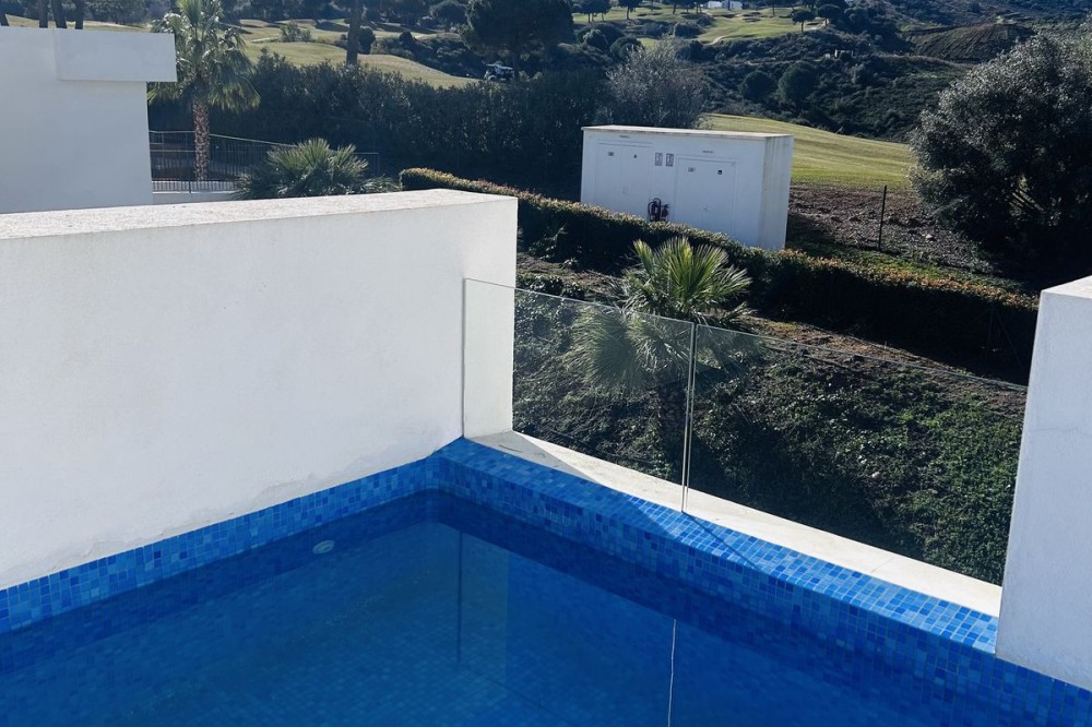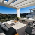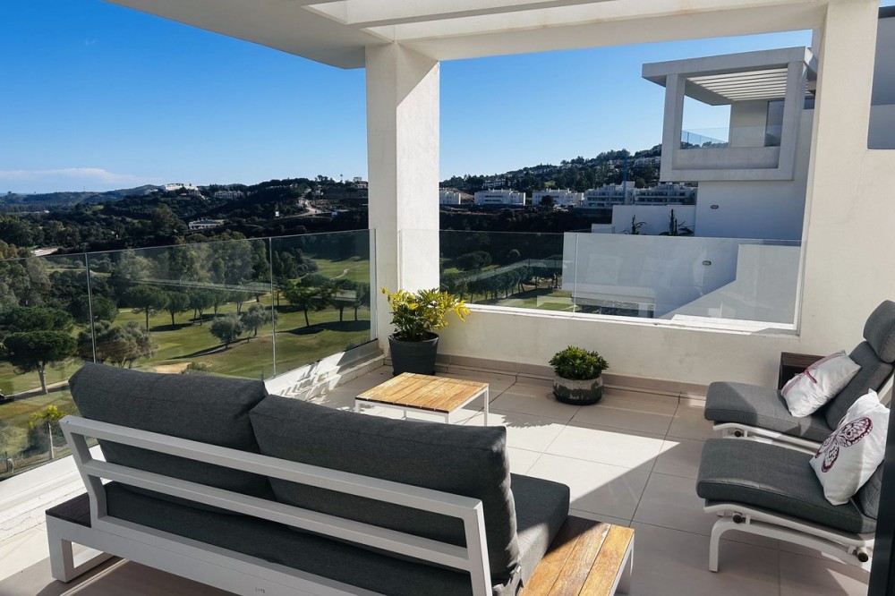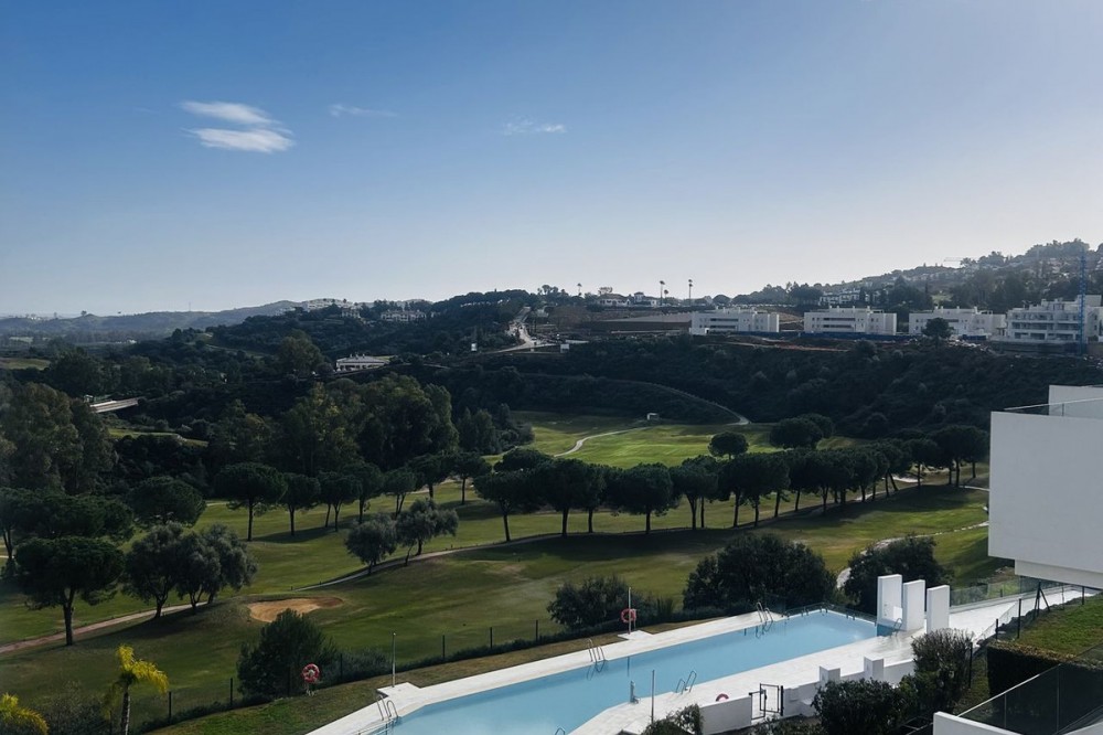 - Fairways La Cala Golf is a development of 54 modern apartments and penthouses. It is ideally situated at less than 35 min from Malaga airport, 25 minutes from Marbella and the picturesque village La Cala de Mijas is less than a 10 minutes drive away. Here you will find a wide variety of restaurants, bars and shops along a 6 km beach promenade. Set in a privileged natural environment, this penthouse combines modern design, bright and specious interior, and breathtaking views. From the moment you step inside, natural sunlight floods every corner, highlighting the high-quality finishes and creating a warm, welcoming atmosphere. The penthouse is situated directly on the front line of the famous “Campo America” golf course and offers breathtaking panoramic views of the mountains, golf courses and the Mediterranean Sea. It is distributed over 2 floors. On the main floor, the elegant living-dining area opens into a spacious terrace where sunrise become a masterpiece. The open-plan, fully equipped kitchen with Bosch electric appliances is designed for family meals and is complemented by practical utility cabinets. Two additional bedrooms offer comfort and privacy with a stunning view on the golf course and share the guest bathroom. On the upper floor there is a master bedroom with its private en-suite bathroom and an additional private outdoor shower. From there step up to the spacious solarium and enjoy the sun all day long. The upper terrace is dedicated to enjoyment: an impressive private solarium with a private plunge pool where you can relax after a day of golf. All rooms are equipped with built-in-wardrobes.The property includes two underground private and spacious parking spaces and a large storage room. The gated community offers landscaped gardens stretching along the golf course, one communal pool, gym, sauna, Jacuzzi, 4 additional exterior parking for guests and 24-hour security with surveillance cameras. A unique opportunity to live in luxury, privacy, and complete harmony with nature. Main features: • 130m2 constructed, 95 m2 usable • 3 bedrooms • 2 bathrooms • Pergola with bio-climatic roof • Upper and lower terraces 68 m2 • 2 underground parking spaces • Fitted wardrobes • Storage room • Elevator • Communal Gym, sauna, Jacuzzi • Communal swimming pool with sunbathing area • Orientation south, east, west • 360-degree view on the golf course and mountains • First-line golf course • Individual heating: electric • Air condition separate for each floor • Electrical shutters • Bosch kitchen electronic appliances • 3rd floor exterior Additional exclusive features: • System “Smart Home” in the entire apartment • Exterior plunge pool - 9 m2 • Private water purification installation to use water directly from the tap • Pergola with glass curtains and bio-climatic roof operated with remote control • Floor heating in the master bathroom • IR heating in the master bathroom • Private outdoor shower