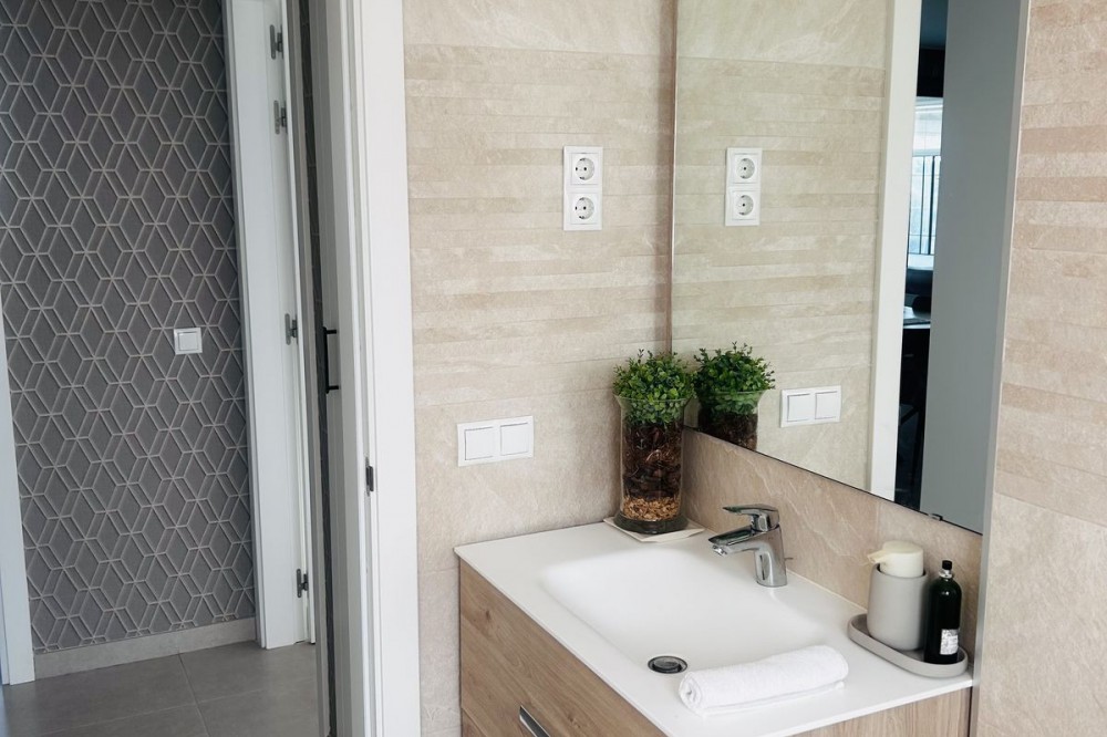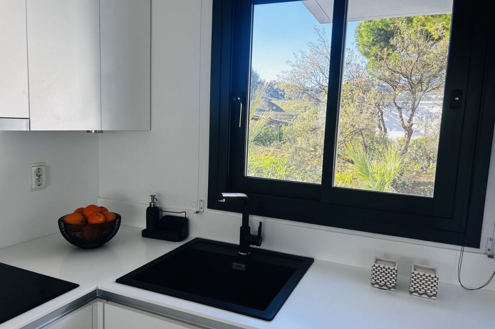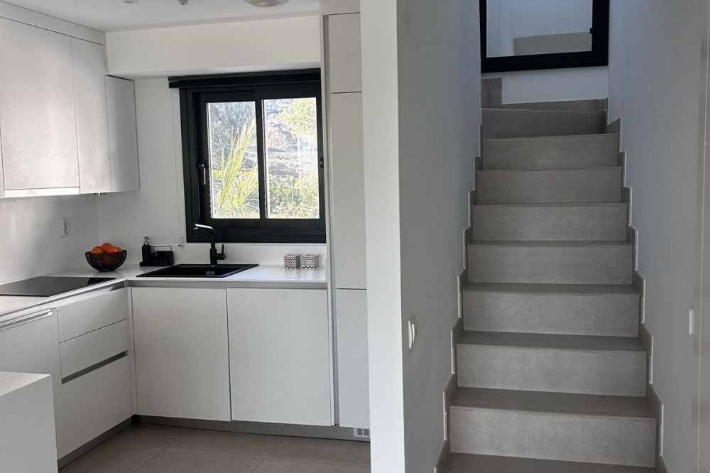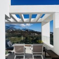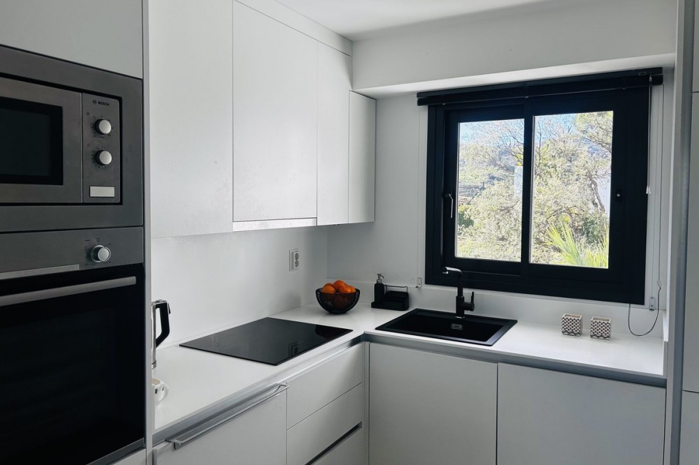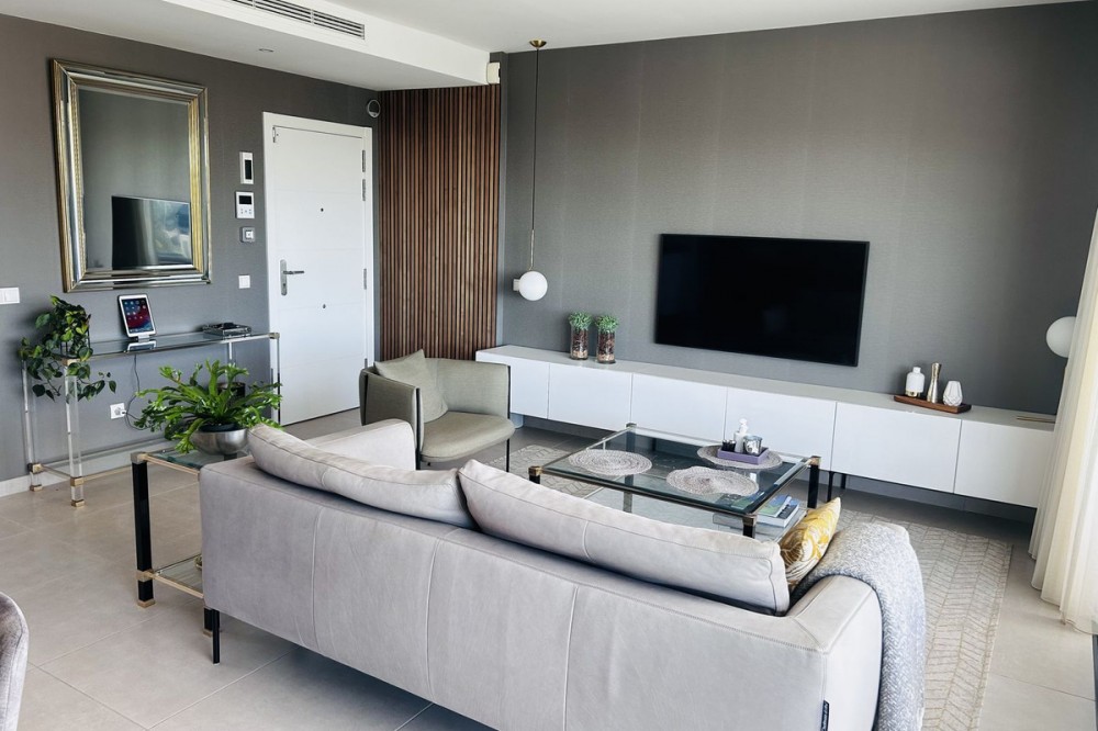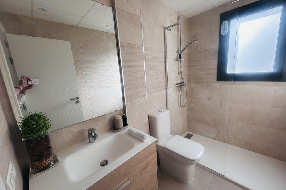 - Fairways La Cala Golf is a development of 54 modern apartments and penthouses. It is ideally situated at less than 35 min from Malaga airport, 25 minutes from Marbella and the picturesque village La Cala de Mijas is less than a 10 minutes drive away. Here you will find a wide variety of restaurants, bars and shops along a 6 km beach promenade. Set in a privileged natural environment, this penthouse combines modern design, bright and specious interior, and breathtaking views. From the moment you step inside, natural sunlight floods every corner, highlighting the high-quality finishes and creating a warm, welcoming atmosphere. The penthouse is situated directly on the front line of the famous “Campo America” golf course and offers breathtaking panoramic views of the mountains, golf courses and the Mediterranean Sea. It is distributed over 2 floors. On the main floor, the elegant living-dining area opens into a spacious terrace where sunrise become a masterpiece. The open-plan, fully equipped kitchen with Bosch electric appliances is designed for family meals and is complemented by practical utility cabinets. Two additional bedrooms offer comfort and privacy with a stunning view on the golf course and share the guest bathroom. On the upper floor there is a master bedroom with its private en-suite bathroom and an additional private outdoor shower. From there step up to the spacious solarium and enjoy the sun all day long. The upper terrace is dedicated to enjoyment: an impressive private solarium with a private plunge pool where you can relax after a day of golf. All rooms are equipped with built-in-wardrobes.The property includes two underground private and spacious parking spaces and a large storage room. The gated community offers landscaped gardens stretching along the golf course, one communal pool, gym, sauna, Jacuzzi, 4 additional exterior parking for guests and 24-hour security with surveillance cameras. A unique opportunity to live in luxury, privacy, and complete harmony with nature. Main features: • 130m2 constructed, 95 m2 usable • 3 bedrooms • 2 bathrooms • Pergola with bio-climatic roof • Upper and lower terraces 68 m2 • 2 underground parking spaces • Fitted wardrobes • Storage room • Elevator • Communal Gym, sauna, Jacuzzi • Communal swimming pool with sunbathing area • Orientation south, east, west • 360-degree view on the golf course and mountains • First-line golf course • Individual heating: electric • Air condition separate for each floor • Electrical shutters • Bosch kitchen electronic appliances • 3rd floor exterior Additional exclusive features: • System “Smart Home” in the entire apartment • Exterior plunge pool - 9 m2 • Private water purification installation to use water directly from the tap • Pergola with glass curtains and bio-climatic roof operated with remote control • Floor heating in the master bathroom • IR heating in the master bathroom • Private outdoor shower