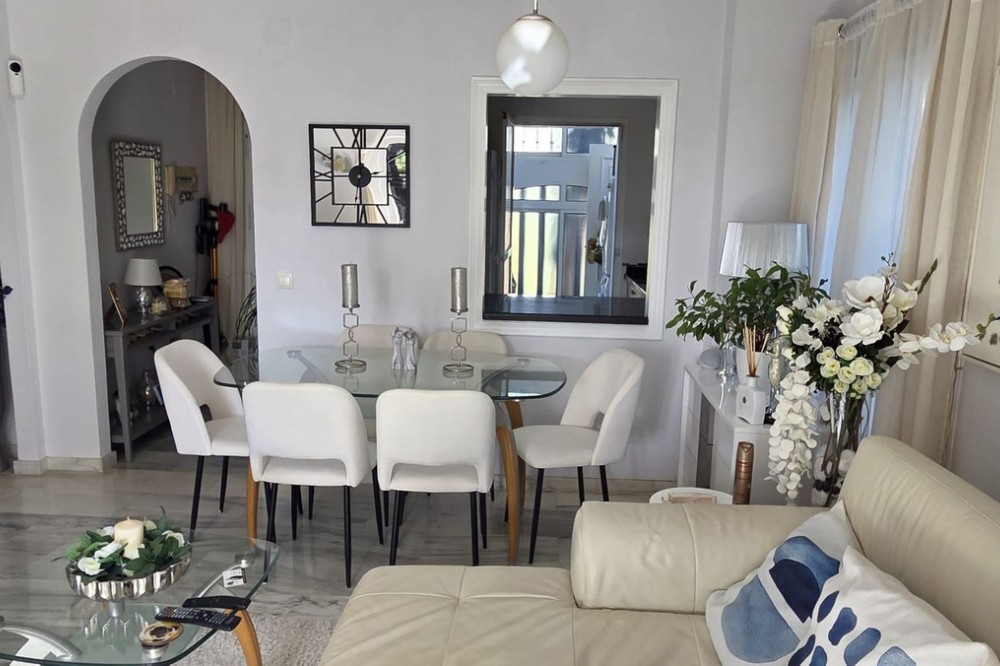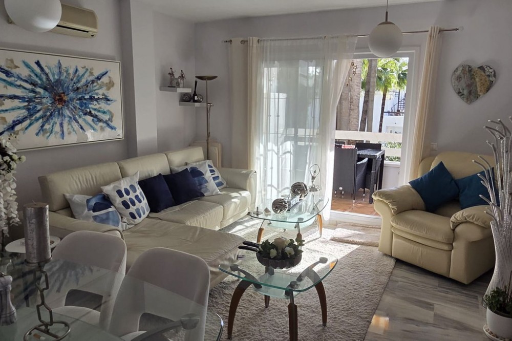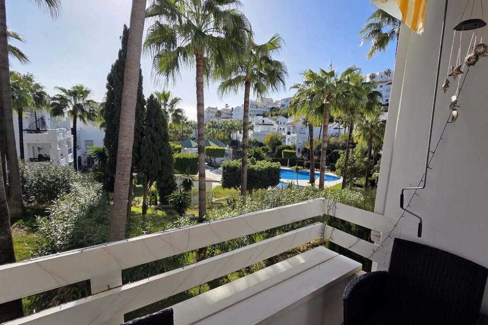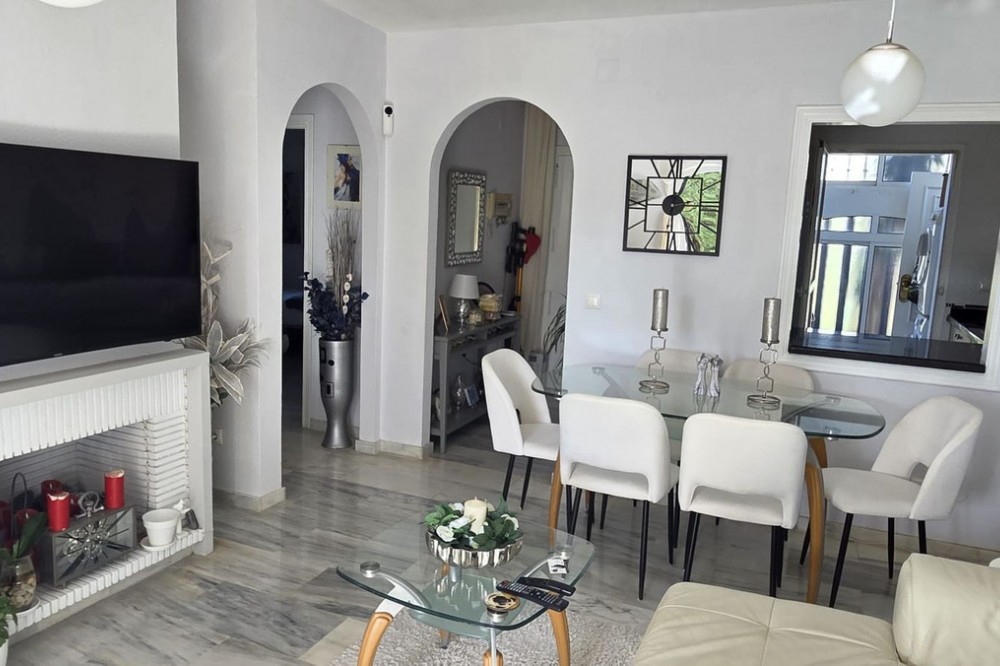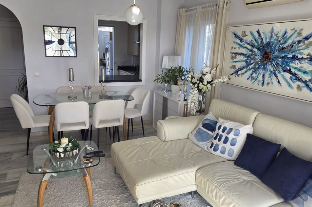 - This elegant mid-floor apartment is located in the Riviera del Sol area, within a well-maintained, gated community offering a peaceful and secure environment, while also providing excellent proximity to golf courses, towns, and amenities. The property has a constructed area of 91 m². It features two bedrooms with built-in wardrobes, the master bedroom being particularly comfortable thanks to its en-suite bathroom. The living-dining room is bright and inviting, with direct access to a private, south-facing covered terrace, ensuring excellent natural light throughout the day. From the terrace, you can enjoy panoramic views that combine pleasant vistas of the garden, the communal pool, and the surrounding town, creating an ideal space for relaxation and outdoor enjoyment. The kitchen is fully equipped, and the property is being sold fully furnished, allowing you to move in immediately or use it as an investment without the need for renovations. The apartment is in excellent condition, with details such as marble floors, double glazing, and air conditioning (living room), ensuring year-round comfort. The complex offers three communal swimming pools surrounded by gardens, as well as the added convenience of an on-site restaurant. Overall, this property is ideal as a primary residence, a second home, or an investment, thanks to its prime location, orientation, impeccable condition, and communal facilities. Middle Floor Apartment, Riviera del Sol, Costa del Sol. 2 Bedrooms, 2 Bathrooms, Built 91 m². Setting : Close To Golf, Close To Town, Close To Schools, Urbanisation. Orientation : South. Condition : Excellent. Pool : Communal. Climate Control : Air Conditioning. Views : Panoramic, Garden, Pool, Urban. Features : Covered Terrace, Fitted Wardrobes, Private Terrace, Ensuite Bathroom, Marble Flooring, Double Glazing, Restaurant On Site. Furniture : Fully Furnished. Kitchen : Fully Fitted. Garden : Communal. Security : Gated Complex. Parking : Street. Utilities : Electricity, Drinkable Water, Telephone. Category : Holiday Homes, Resale.