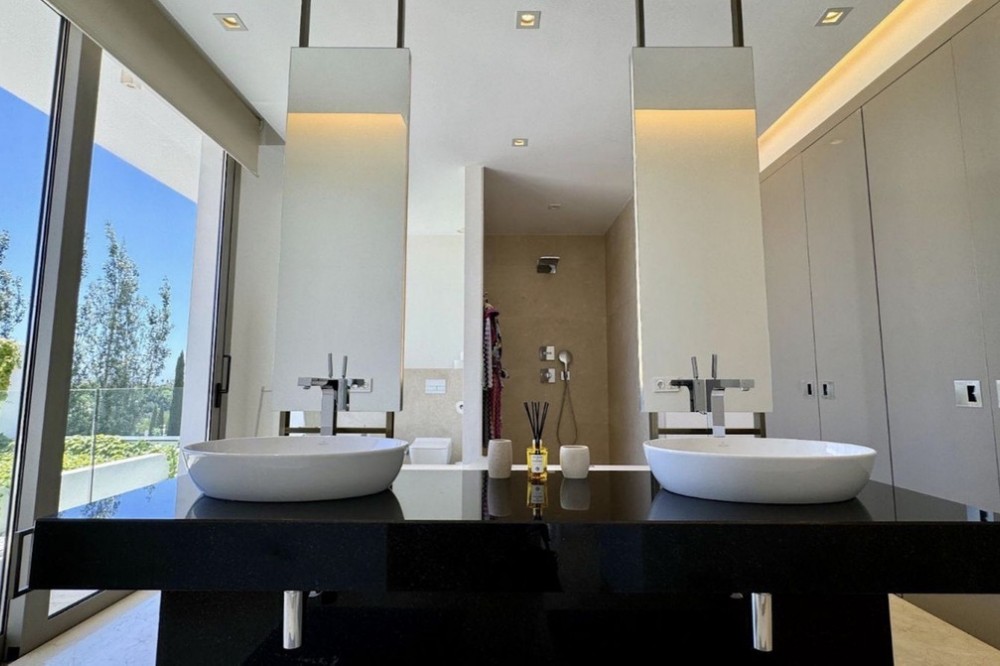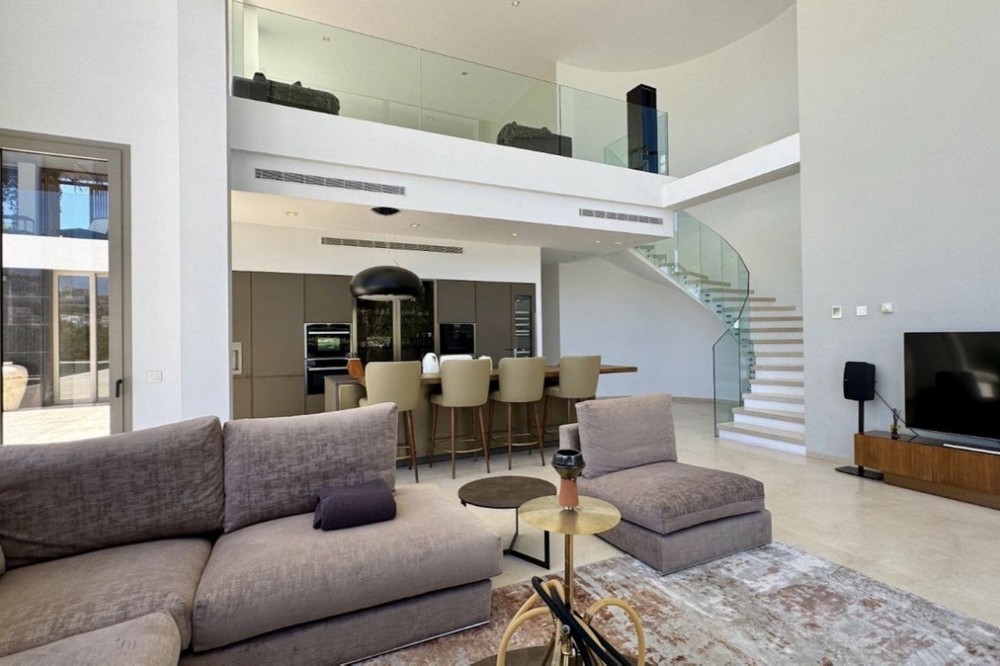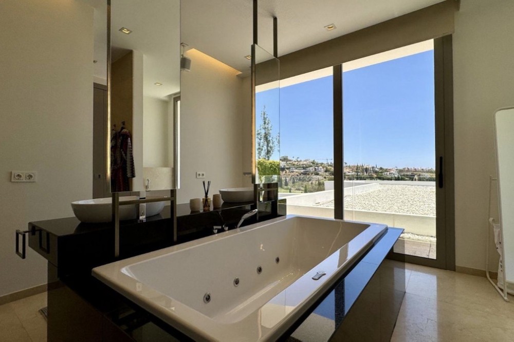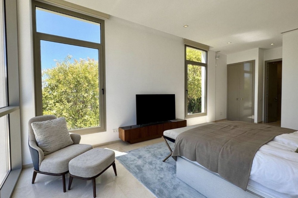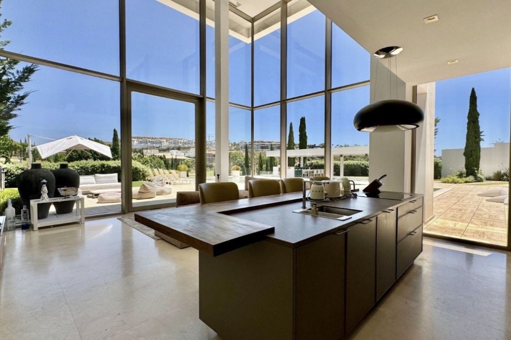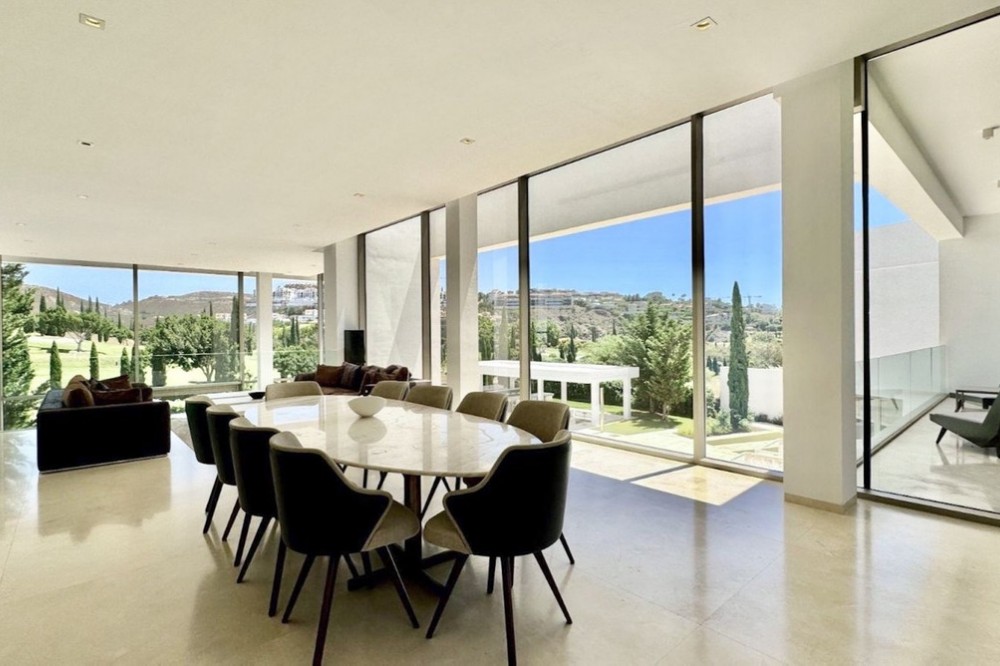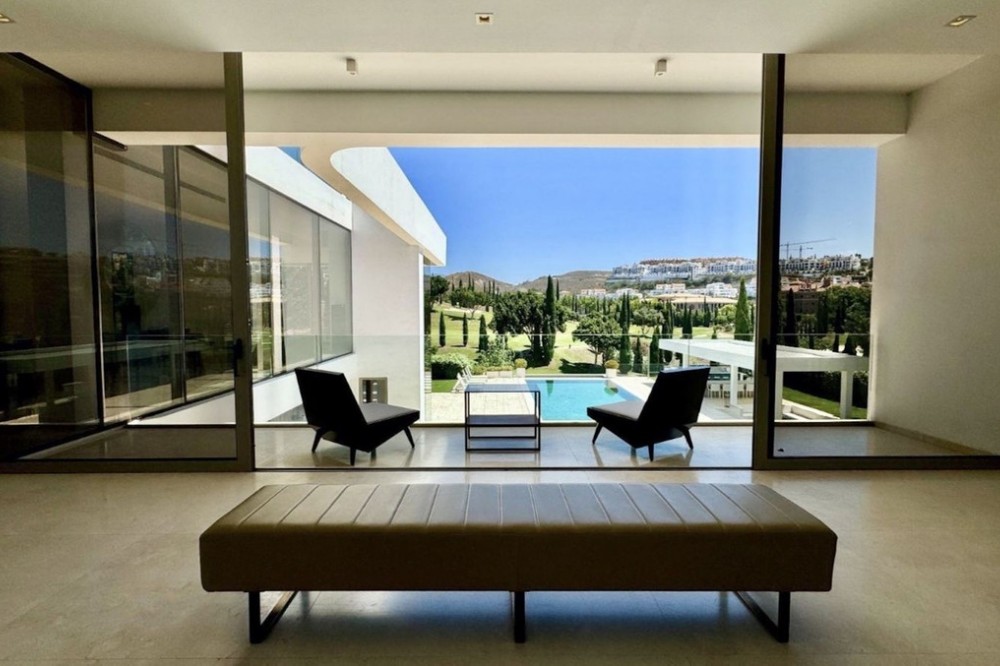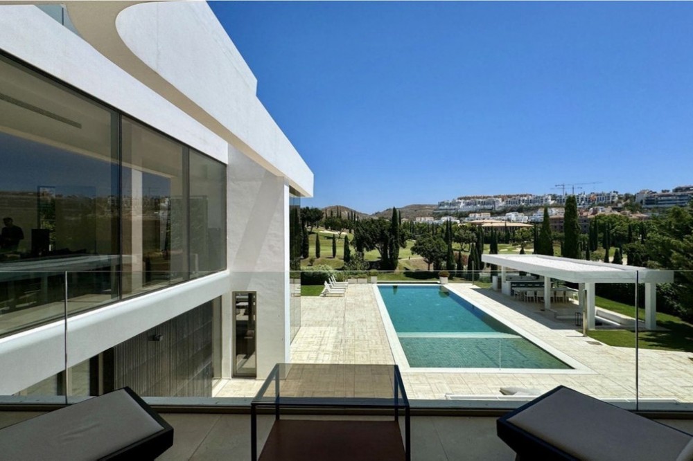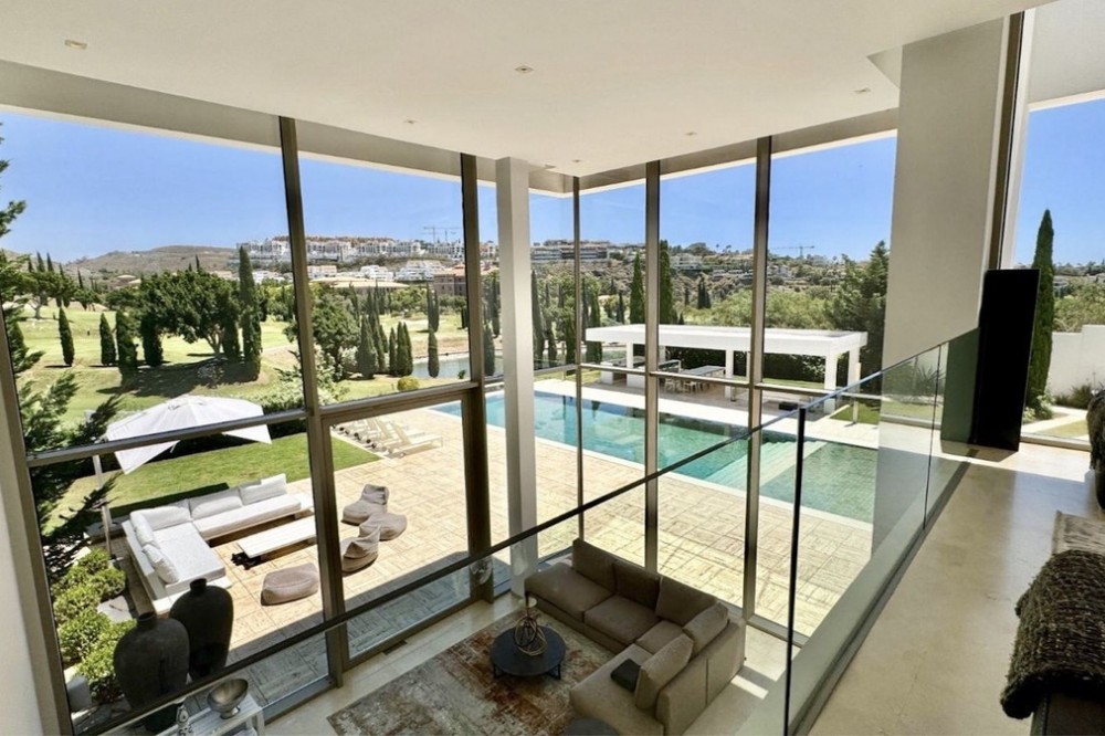 - Discover an exceptional frontline golf villa ideally positioned in the prestigious Los Flamingos area of Cancelada. Set on a generous 2,577 m² plot, this magnificent detached residence offers 722 m² of built space and combines luxury, privacy, and breathtaking panoramic views over the golf course and out to the Mediterranean Sea. This spacious home features 6 beautifully appointed bedrooms and 8 modern bathrooms, thoughtfully designed across elegant living levels to accommodate both family life and entertaining with ease. Expansive terraces bathed in sunshine provide stunning vistas and seamless indoor–outdoor flow, perfect for al fresco dining, lounging, and enjoying the magnificent surroundings. The property includes a private swimming pool, lush landscaped garden, and ample parking for multiple cars, as well as a convenient storage room for added practicality. A rare opportunity to acquire a prestigious frontline golf estate in one of the Costa del Sol’s most exclusive residential enclaves.