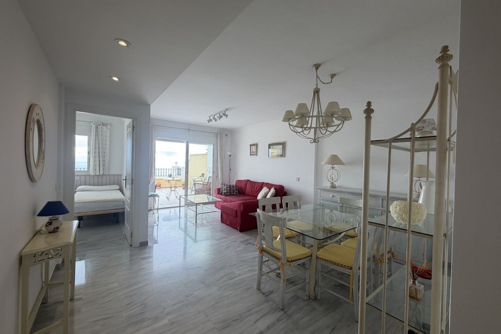 - Apartment for Sale in Nerja, located within the private and highly sought-after complex Señorío del Capistrano, this attractive south-facing apartment enjoys a peaceful setting on the outskirts of Nerja with stunning panoramic views over the pool, garden and towards the Mediterranean sea. The property benefits from access to a communal swimming pool, as well as private underground parking and a storage room in the garage. Sold fully furnished, the apartment comprises two spacious double bedrooms and two bathrooms, including a full shower room and an en-suite bathroom. The open-plan American kitchen flows seamlessly into a bright living-dining area. A standout feature is the large, south-facing private terrace with sea views, ideal for enjoying the sunshine and views year-round. Fantastic rental potential! Do not miss this opportunity and book a viewing today!
