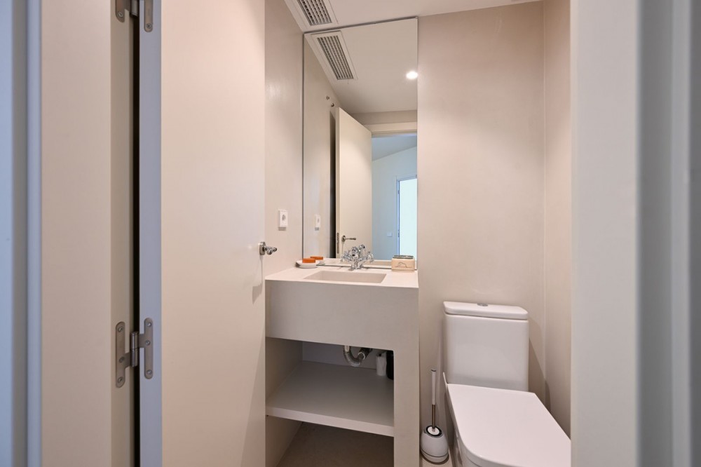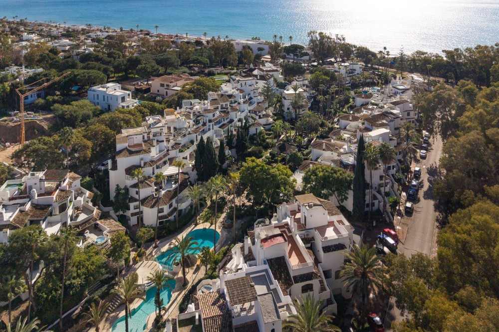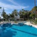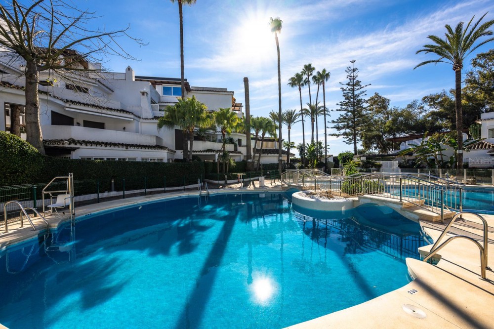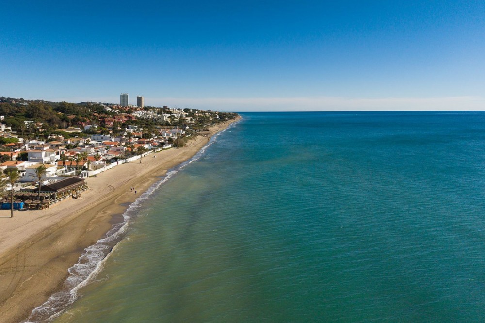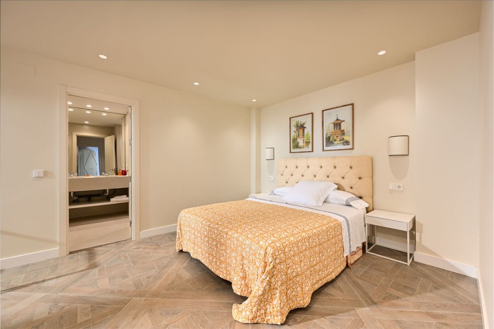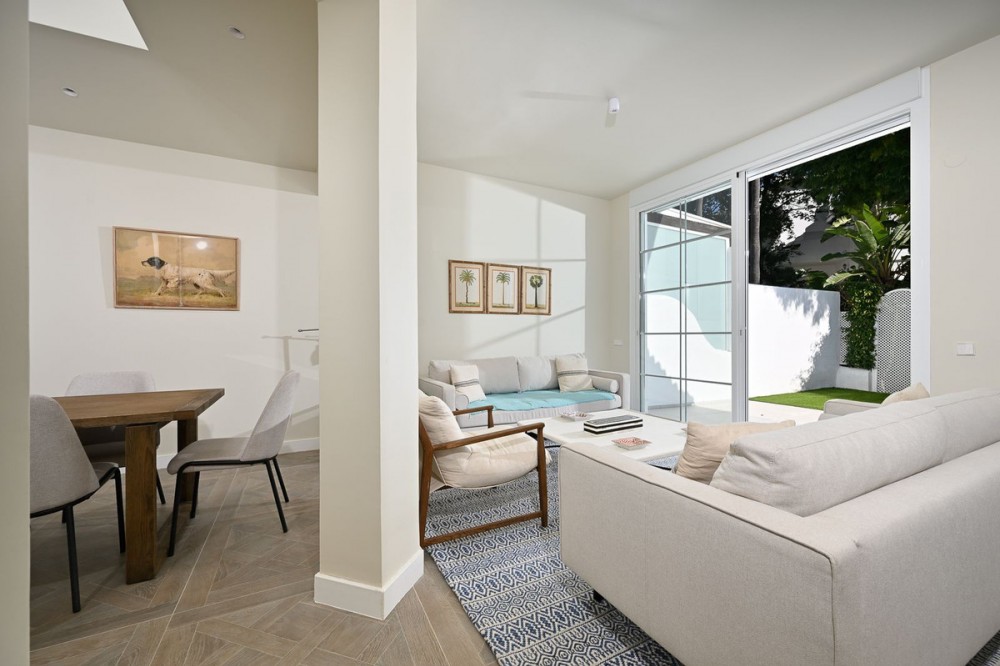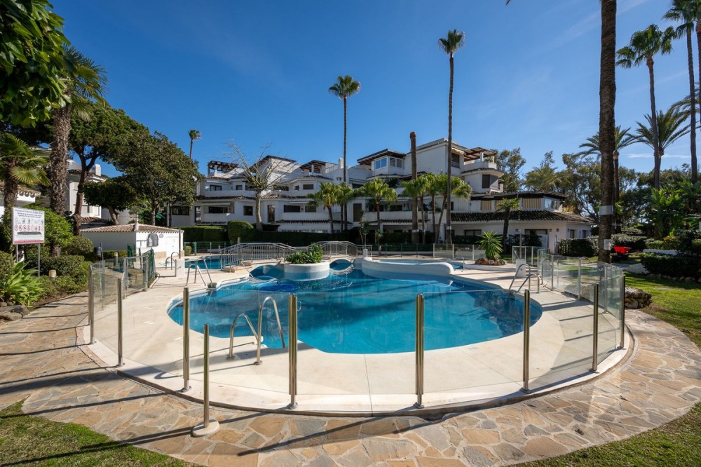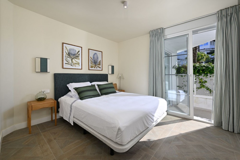 - LOCATION ! LOCATION ! Beautifully renovated UNIQUE apartment with separate studio!! First line Beach Urbanisation in Elviria! This apartment boasts 4 bedrooms and 4 ensuite bathrooms, all on one level and all with big windows with direct terrace or private garden access. Mature tropical gardens lead you to the communal pool, where you can enjoy and relax! Just a stroll to the beach, where you can find the finest restaurants and beach clubs, as Casanis Plage, The Beach House, White Pearl Beach and many, many more. This is an opportunity one can not miss! Apartment, Elviria, Costa del Sol. 4 Bedrooms, 4 Bathrooms, Built 173 m², Terrace 29 m². Setting : Beachfront, Beachside, Close To Sea, Front Line Beach Complex. Orientation : South West, West. Condition : Excellent, Recently Renovated. Pool : Communal. Climate Control : Air Conditioning, Hot A/C, Cold A/C. Views : Garden. Features : Covered Terrace, Fitted Wardrobes, Near Transport, Private Terrace, WiFi, Guest Apartment, Wood Flooring, Double Glazing. Furniture : Optional. Kitchen : Fully Fitted. Garden : Communal, Private. Security : Electric Blinds. Parking : Street. Category : Beachfront, Holiday Homes, Luxury, Contemporary.