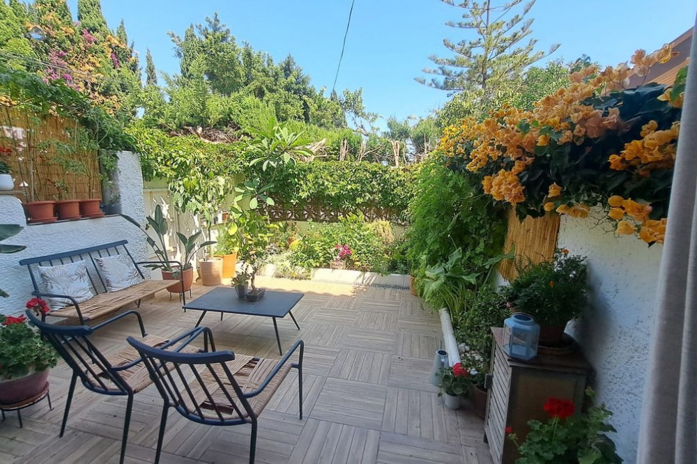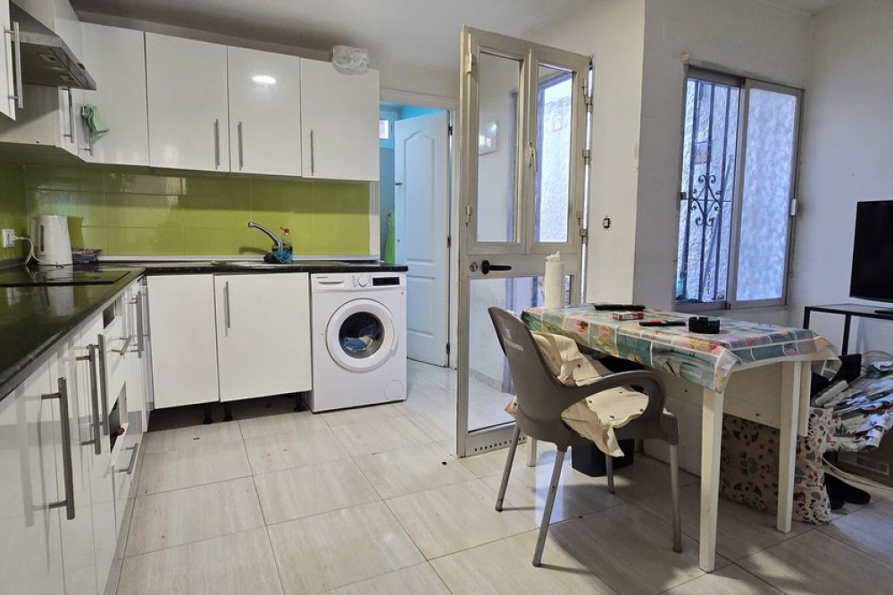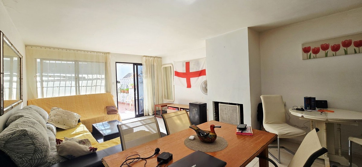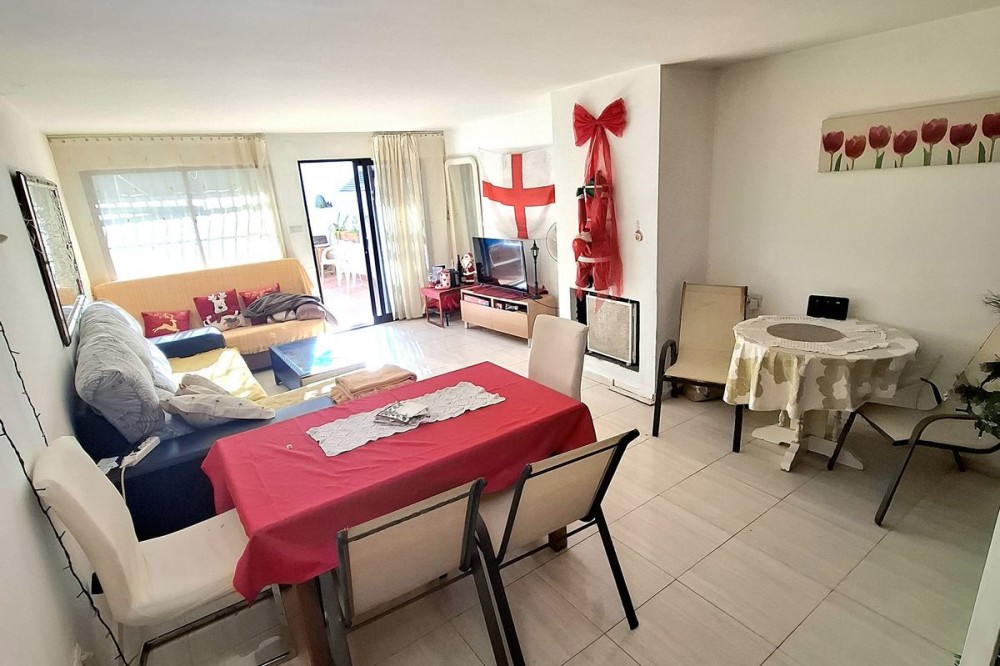 - High-potential property in a prime location in Benalmádena – Duplex ground floor with terrace and rear garden Duplex townhouse in an excellent location within the Solymar residential area. The property features a terrace and a rear garden and offers multiple possibilities for renovation and extension – ideal for buyers with vision. Description This duplex groundfloor is located in a highly sought-after area of Benalmádena and stands out for its strong development potential. The property is arranged over two levels and offers a total built area of approximately 97m² according to the Land Registry. The living space is complemented by a terrace and a rear garden, providing various opportunities for extension and redesign. Possible improvement options include: - Extending the living area by incorporating the terrace - Enlarging individual rooms - Creating a winter garden or additional living space in the rear garden - A full renovation tailored to personal preferences Images of a renovated neighboring property within the same residential complex are included as a visual reference only. These images do not reflect the current condition of the property offered. The price is open to negotiation. Please contact us to submit an offer.