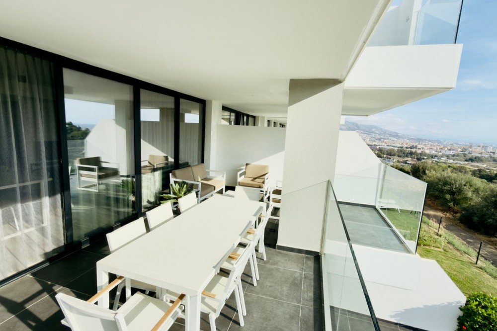 - Elegant apartment located on the second floor, offering stunning views of the sea and green hills — an ideal holiday home for a large family. It features 4 bedrooms and 2 bathrooms, with the option to convert it into 3 spacious bedrooms for those who prefer larger guest areas. The property is fully furnished and equipped, including everything from tableware, cutlery, bed linen, and towels to a coffee machine and TV. It is fitted with ducted air conditioning (hot and cold) for year-round comfort. The complex offers extensive communal areas, including a heated outdoor pool, gym, SPA area, sauna, and a charming rooftop restaurant, perfect for relaxation. Just 5 minutes away lies the new Gran Parque de Mijas, the largest park in Andalusia — an exceptional place for sports, leisure, and cultural activities. The property comes with a garage space and a storage room. https://www.youtube.com/shorts/ZmoRNBbh25k