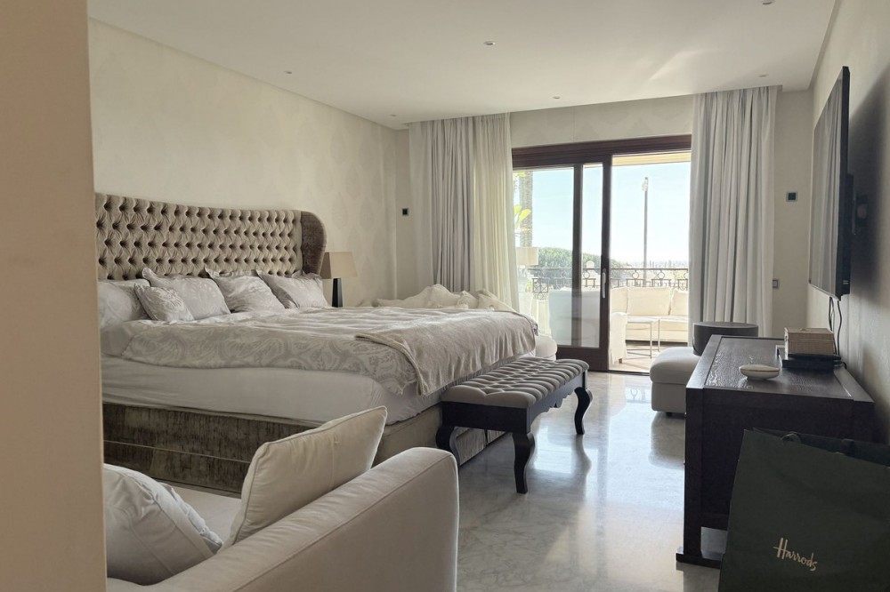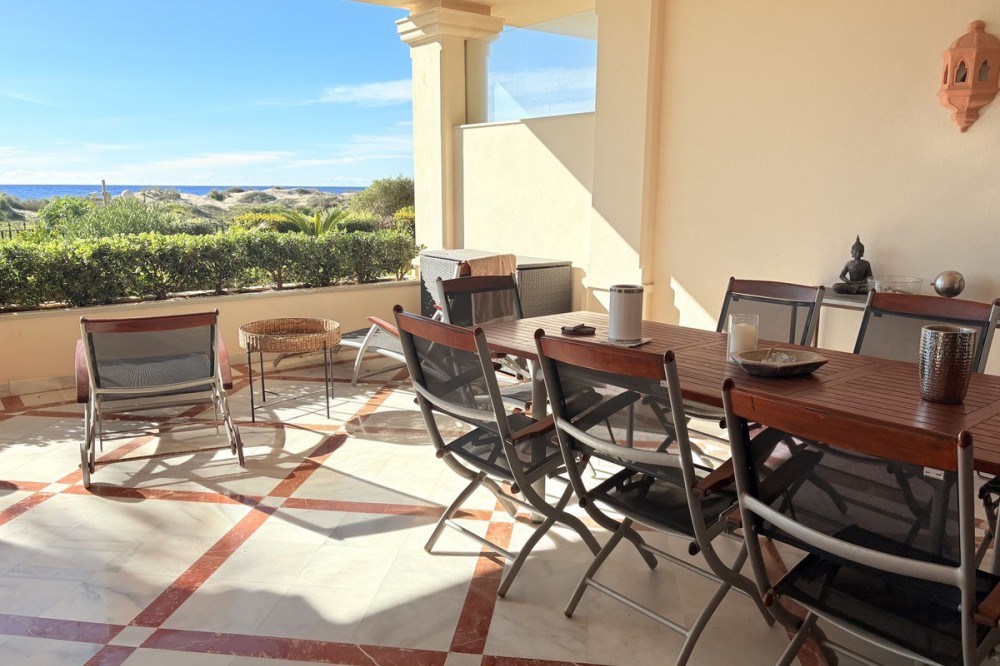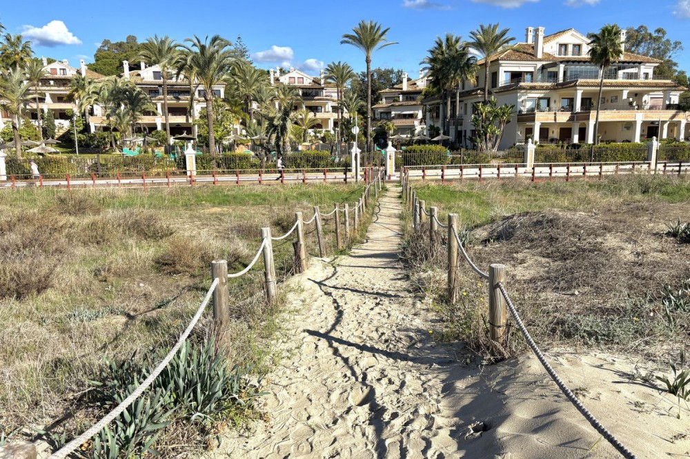 - This is one of those rare moments when something truly exceptional appears on the market — and in Los Monteros Playa, opportunities like this barely ever come up. You’re looking at a luxurious 3-bedroom ground-floor apartment, frontline beach, surrounded by protected dunes, the finest beaches in Marbella, and that unmistakable Costa del Sol lifestyle. From the moment you enter, you feel the space. A large living and dining room with a fireplace, plenty of natural light, and direct access to a sunny south-facing terrace. The terrace offers two zones — a relaxing lounge area and a dining space — perfect for morning coffee, evening wine, and enjoying the Mediterranean breeze. The views stretch across sub-tropical gardens and peaceful water features. The fully fitted kitchen features a separate utility room and breakfast nook for morning coffee. The guest bathroom is conveniently located near the spacious hall entrance. All three bedrooms are en-suite. The master suite is simply outstanding: spacious, with numerous built-in wardrobes, direct terrace access, and a spectacular bathroom featuring double sinks, a large walk-in shower, and a Jacuzzi bath. Additional features include underfloor heating, A/C, an alarm system, marble floors, two closed underground parking spaces, and a storage room. The urbanisation offers 24-hour security, beautifully landscaped pools, and immediate access to one of Marbella’s best beaches — quiet, wide, natural, and close to fantastic chiringuitos and top golf courses. This is more than an apartment. It’s a home for those who appreciate exclusivity, comfort, and a location that simply doesn’t repeat itself. A truly exceptional property for a discerning buyer. Nearby amenities include: • Iconic beach clubs and upscale seaside restaurants • Prestigious golf courses such as Santa Clara Golf and Río Real • Luxury shopping centres, international schools, and premium healthcare • Excellent connectivity to Marbella town, Puerto Banús, and Málaga Airport