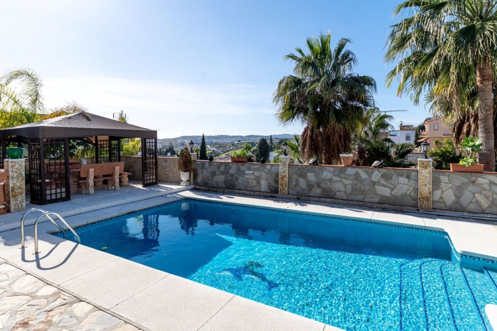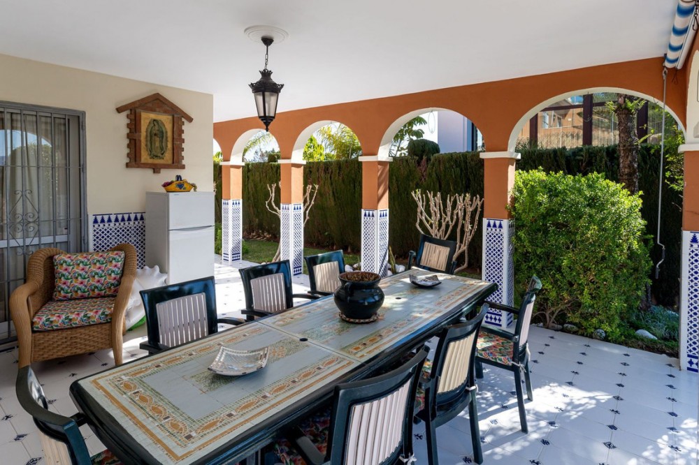 - Elegant Family Villa with Garden, Pool & Guest Studio Quiet Residential Setting · 5 Minutes from Fuengirola Located in a peaceful and established residential enclave, just five minutes from the coastline and the vibrant life of Fuengirola, this elegant family villa offers a refined Mediterranean lifestyle where privacy, space and comfort come together effortlessly. Set on a beautifully landscaped plot, the outdoor areas are designed for year-round enjoyment. A lush garden frames the private swimming pool, while the covered terrace, barbecue area and outdoor shower create an inviting setting for long lunches, relaxed evenings and memorable gatherings with family and friends. The main villa is distributed over two well-balanced levels, combining functionality with a warm, homely atmosphere. On the ground floor, a spacious living room with fireplace welcomes you with a sense of comfort and calm. This level also features two bedrooms, one bathroom, a generous fully equipped kitchen with dining area, and direct access to the covered terrace and garden — seamlessly blending indoor and outdoor living. A separate utility and laundry room adds everyday practicality. The upper floor is dedicated to rest and privacy, offering two spacious bedrooms, both with en-suite bathrooms. The master suite is completed by a walk-in dressing room, providing ample storage and a discreet touch of luxury. Enhancing the versatility of the property, the plot also includes a separate self-contained studio apartment — ideal for hosting guests, accommodating extended family or generating additional rental income with complete independence. Thanks to its tranquil surroundings, proximity to amenities and flexible layout, this villa is perfectly suited as a permanent family residence, a stylish holiday home or a sound investment with strong rental appeal on the Costa del Sol.